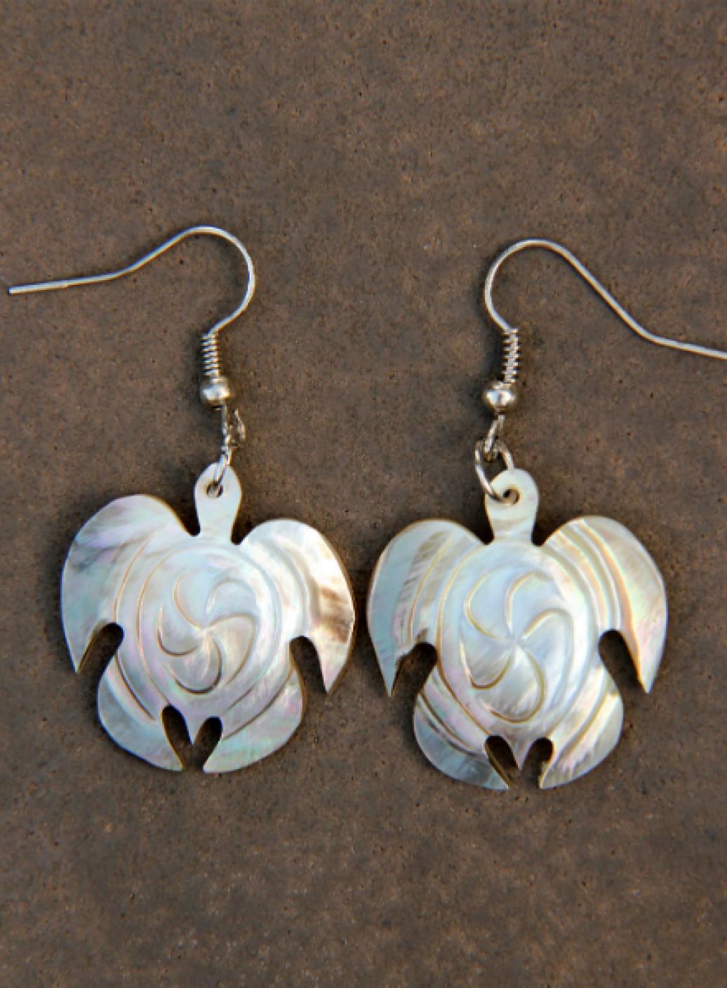 Náušnice z přírodní perleti různě kovově zbarvených a světlých odstínů. Každý pár je originál. Design mořské želvy. Ideální letní šperk pro každou ženu.