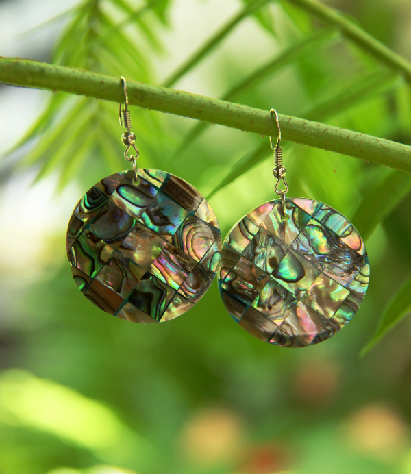 Mozaikově vykládané náušnice perletí paua mušle. Zářivý šperk pro každou ženu.