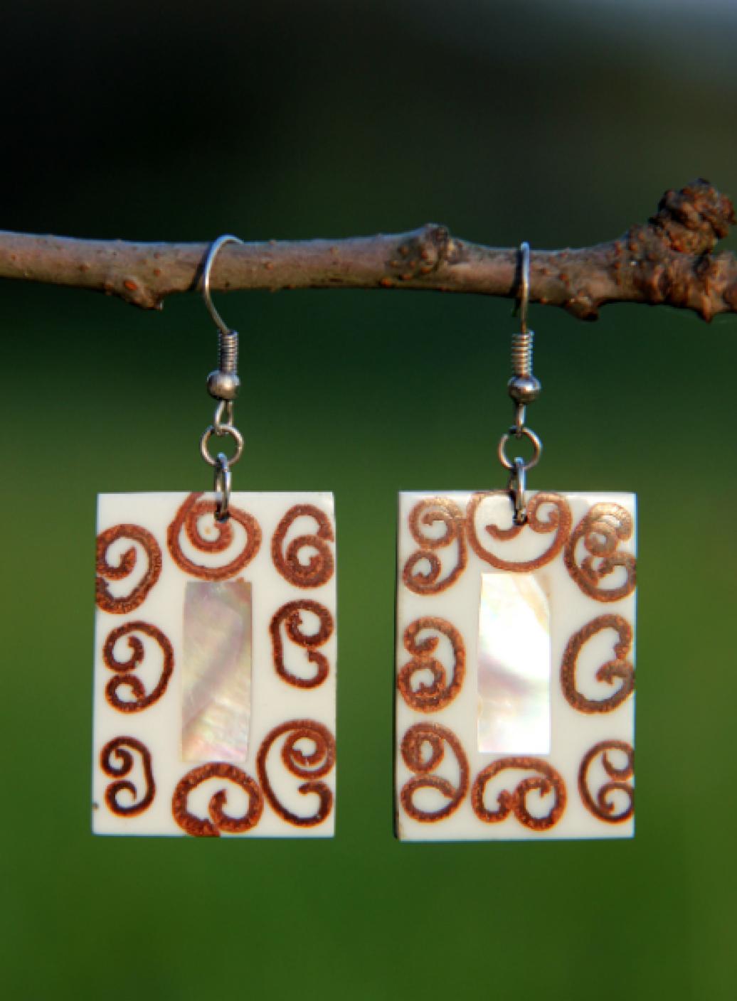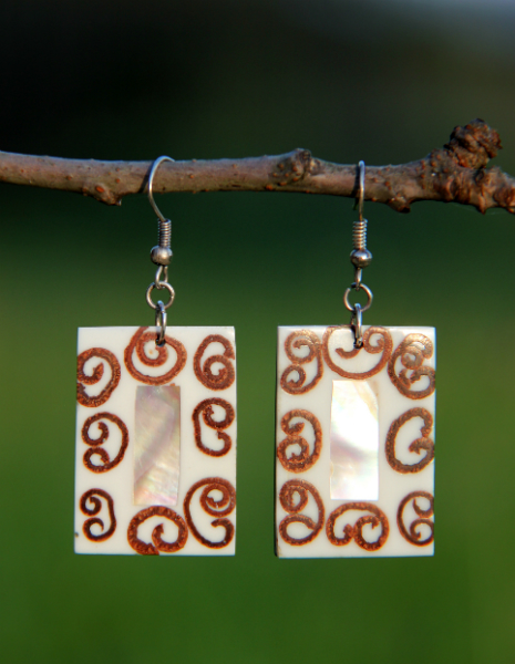 Perleťovo- skořicové náušnice, obdelníky