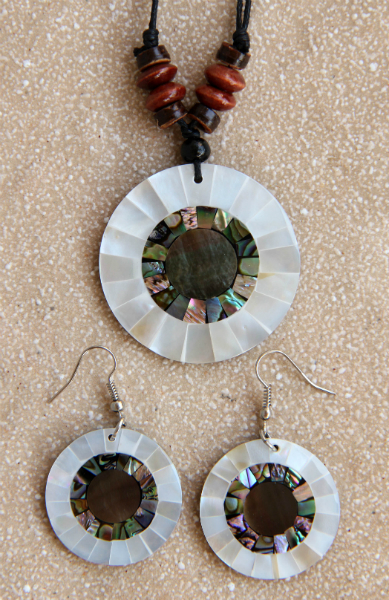 Náušnice a náhrdelník z mušloviny