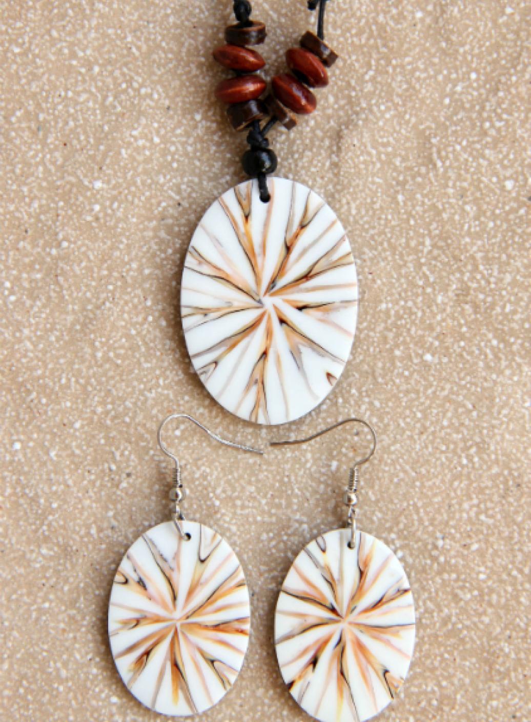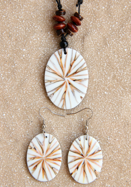 Náhrdelník a náušnice z mušloviny s jednoduchým designem je ideální letní šperk pro každou ženu.