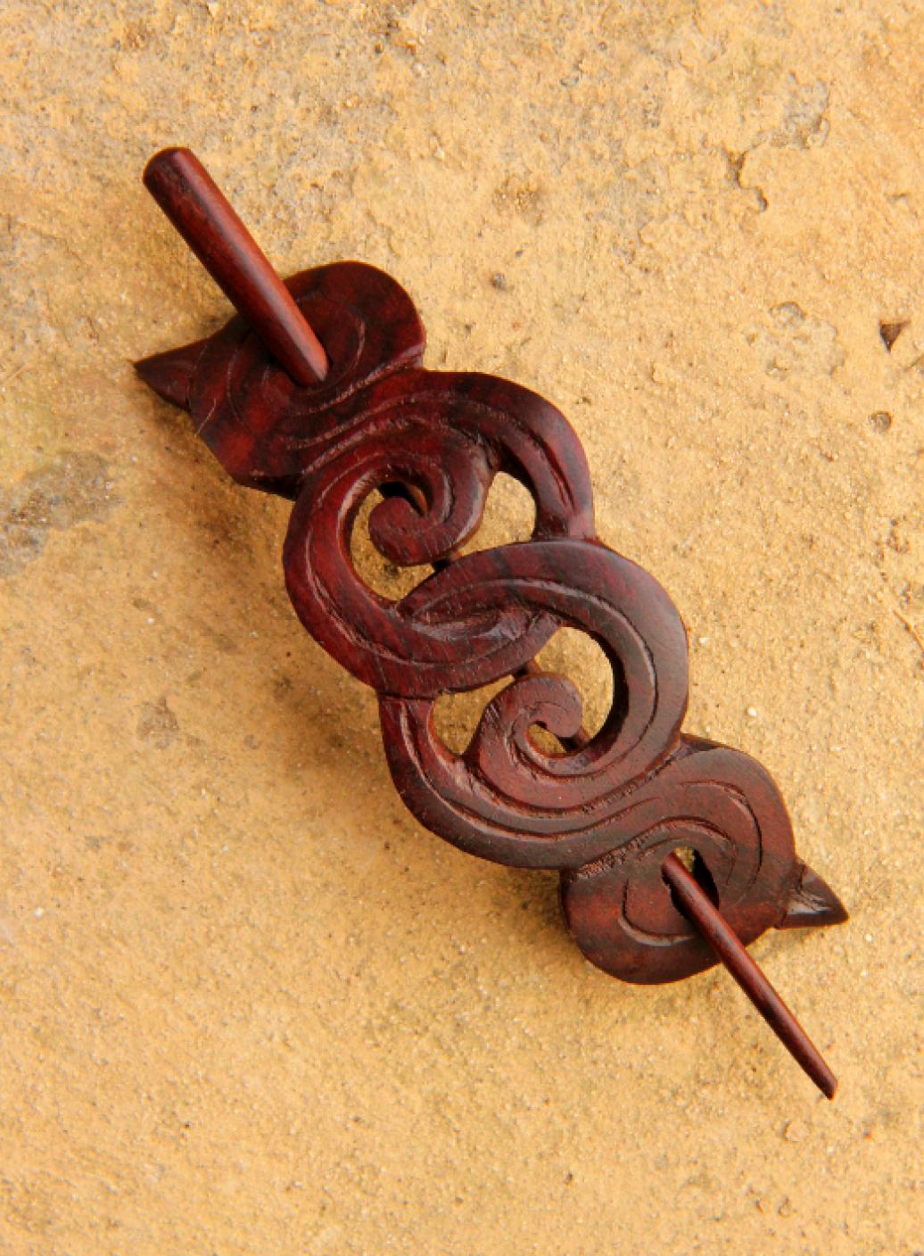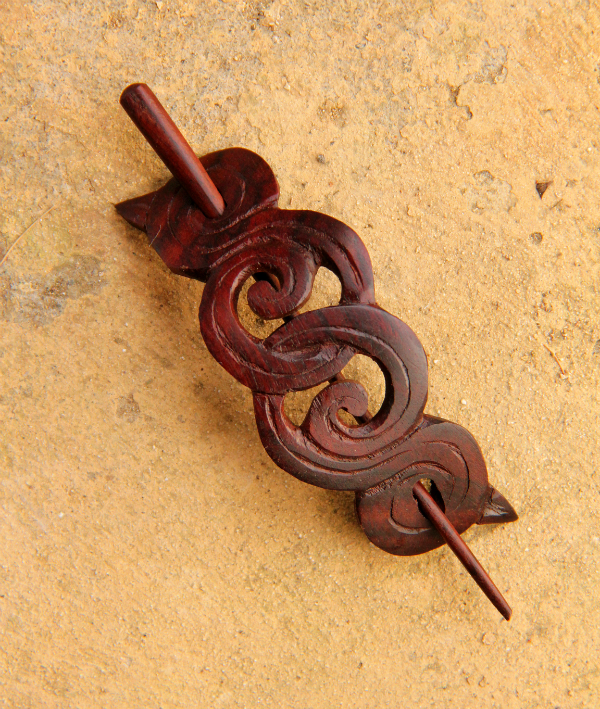 Originální dřevěná spona s jednoduchým designem. Zapínání na jehlici.