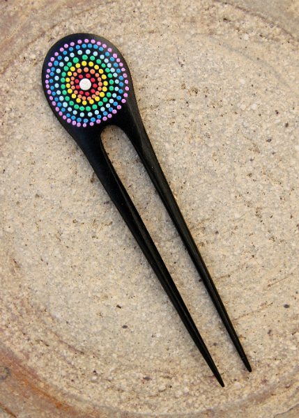 Originální jehlice z lehkého tropického dřeva, ručně malovaná.