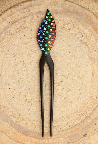 Originální jehlice z lehkého tropického dřeva, ručně malovaná.