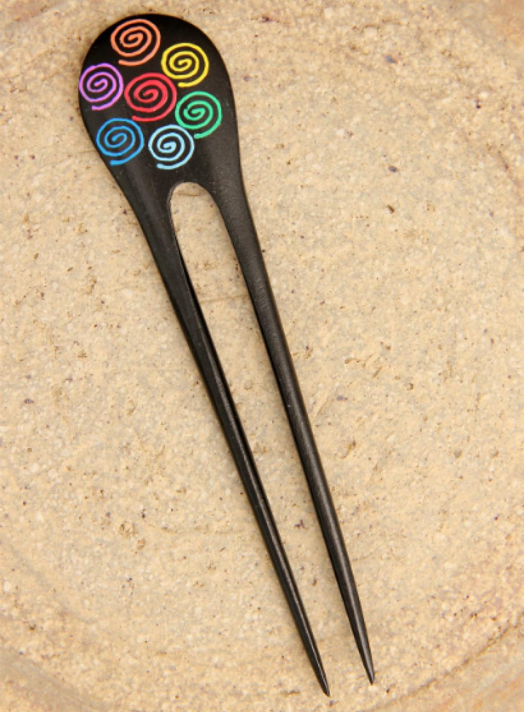 Originální jehlice z lehkého tropického dřeva, ručně malovaná.