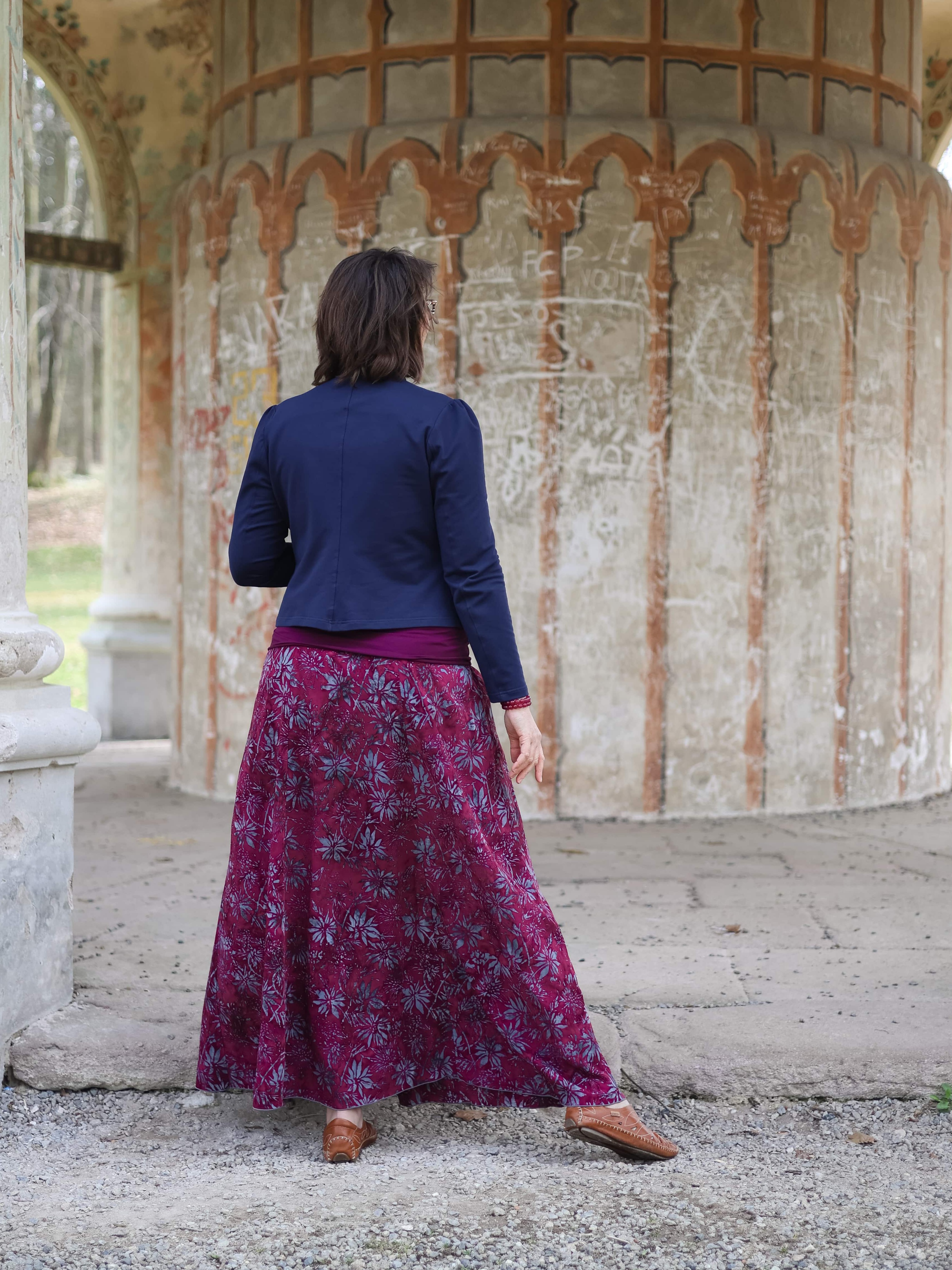Vysoký elastický pas je nesmírně pohodlný na nošení. Sukně je vhodná i pro těhotné, pružný náplet v pase se krásně přizpůsobí bříšku a obejme ho po celém jeho obvodu. Ikonická Pacha sukně s délkou až na zem se krásně vlní při chůzi a vytváří ženskou siluetu.