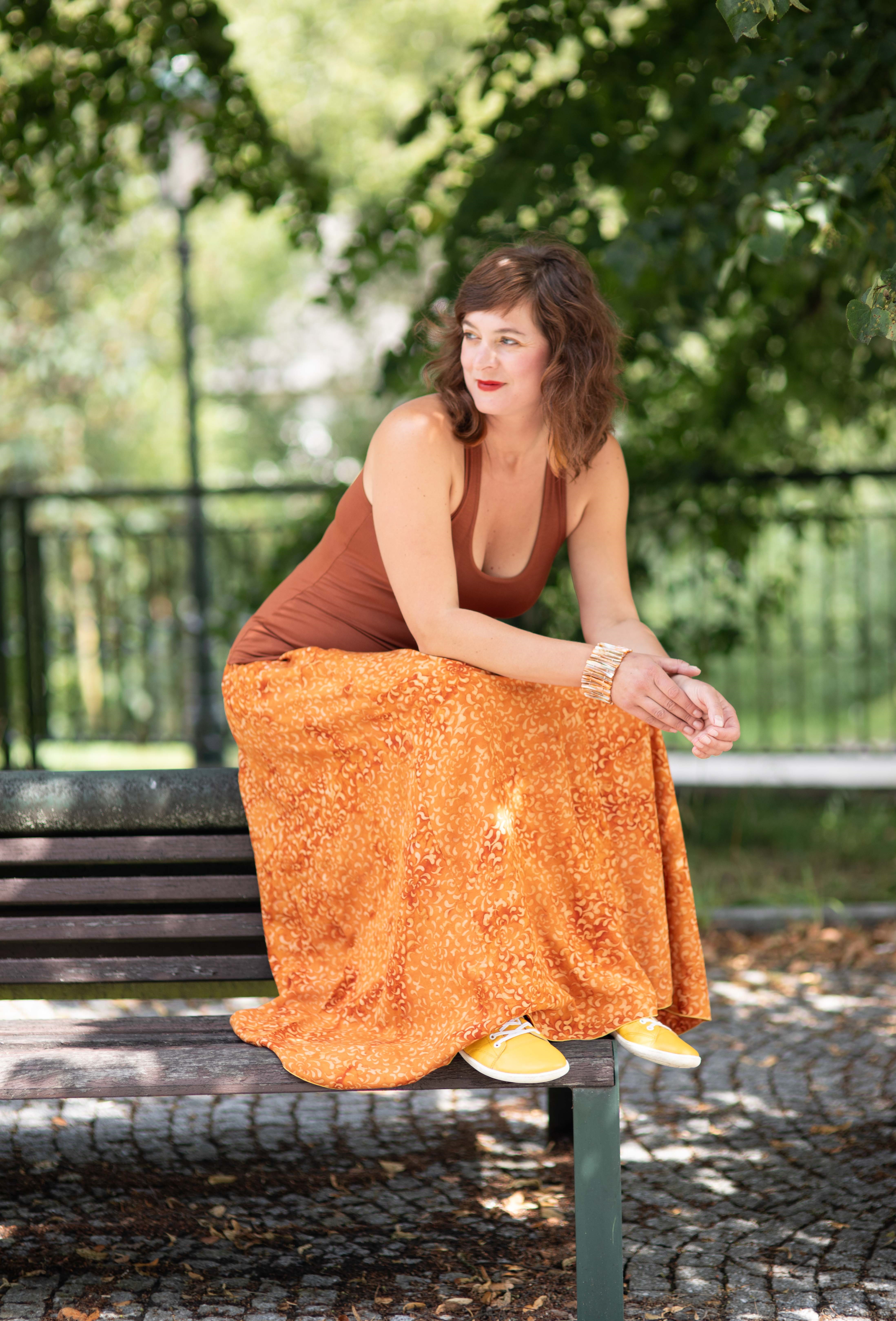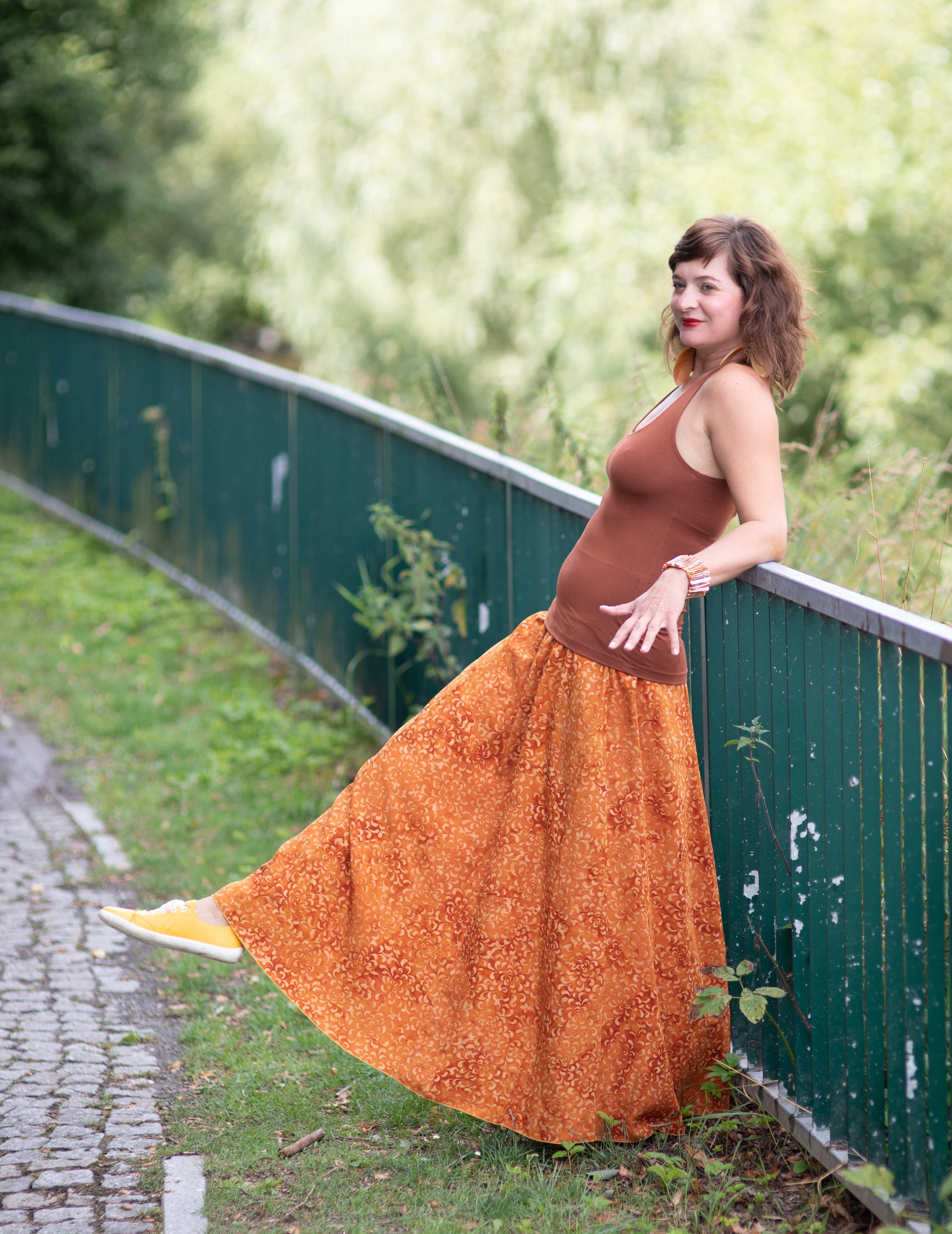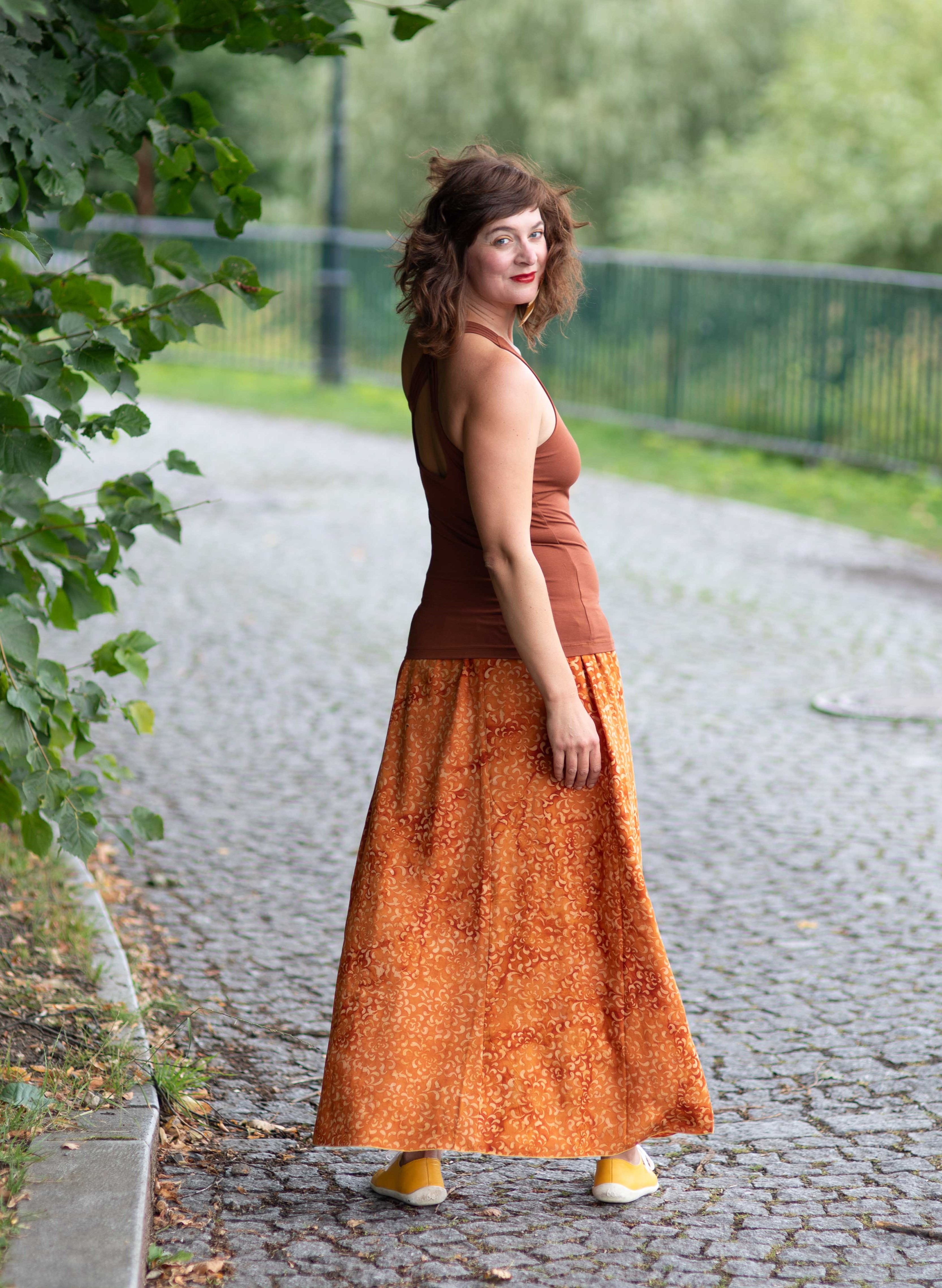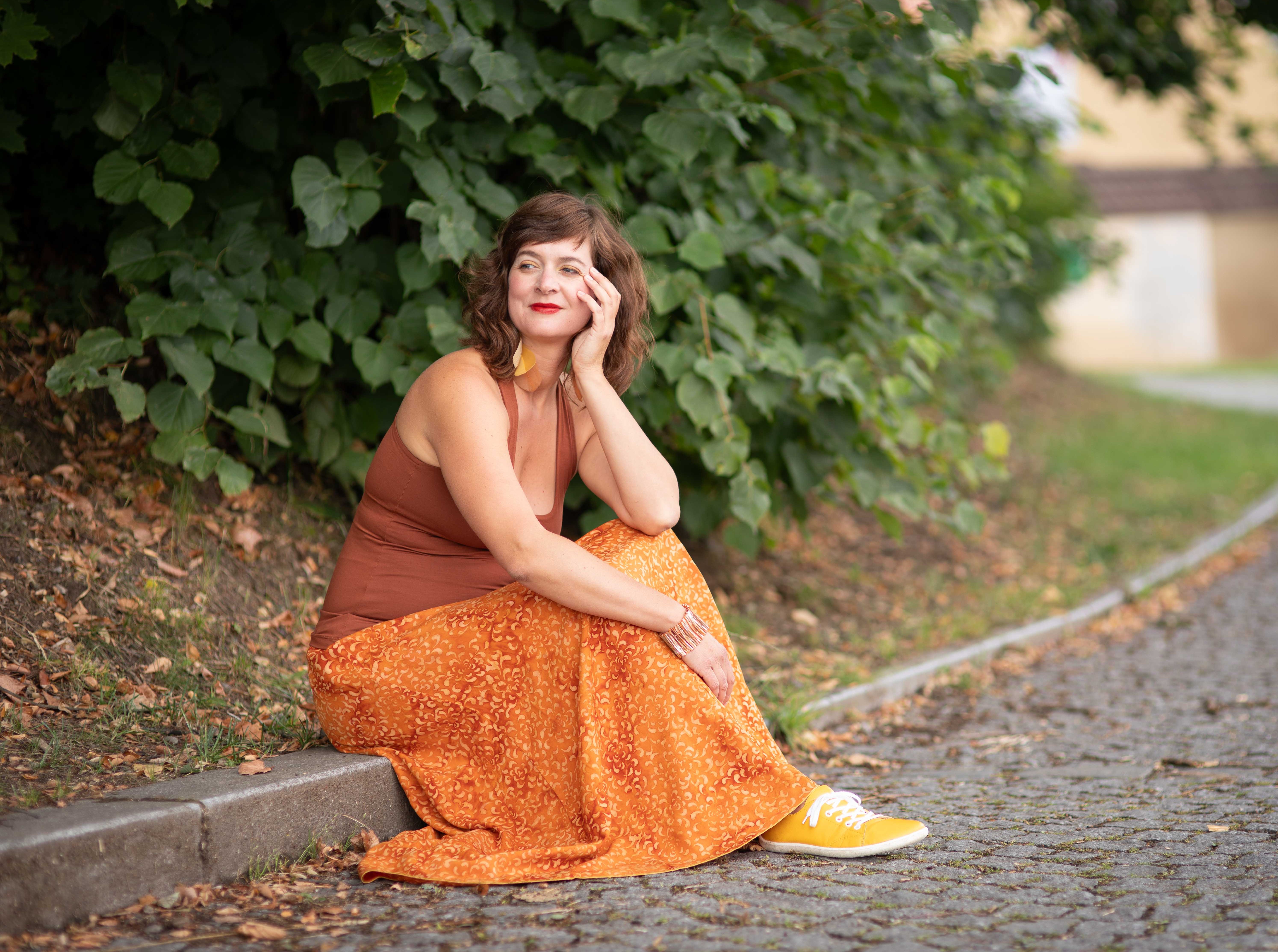 Barva sukně: jantarově okrové odstíny