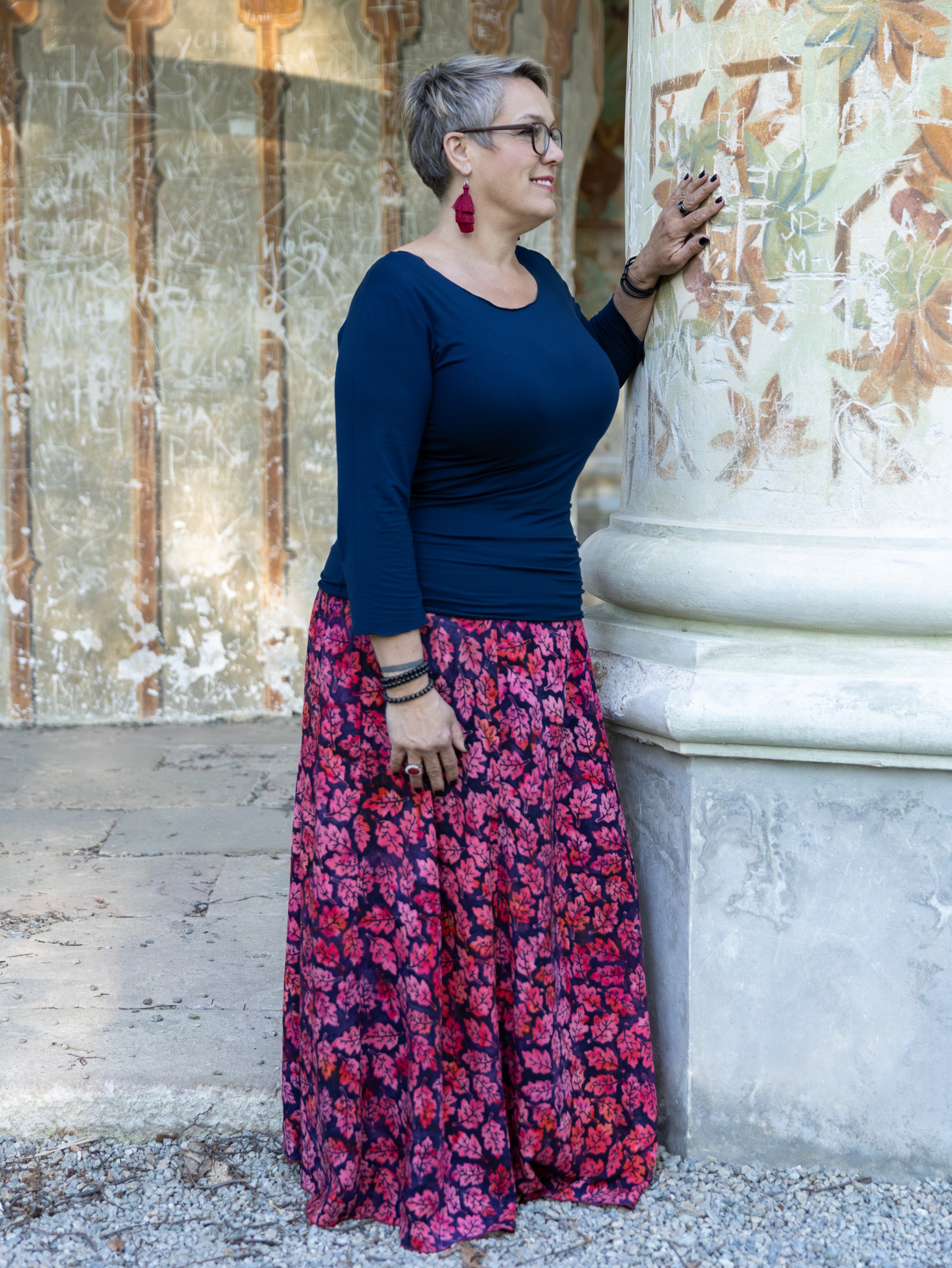 Vysoký elastický pas je nesmírně pohodlný na nošení. Sukně je vhodná i pro těhotné, pružný náplet v pase se krásně přizpůsobí bříšku a obejme ho po celém jeho obvodu. Ikonická Pacha sukně s délkou až na zem se krásně vlní při chůzi a vytváří ženskou siluetu.