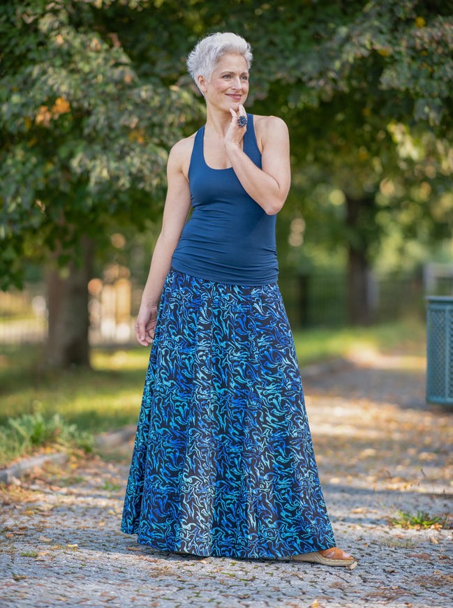 Maxi sukně Blue lagoon je skvělým kouskem do jakéhokoli šatníku. Elegantní vzhled vykouzlíte s podpatky a výrazným šperkem, nebo zvolte ležérní styl se sandály či balerínami a jednoduchým topem. V obou případech se budete cítit a vypadat úžasně.