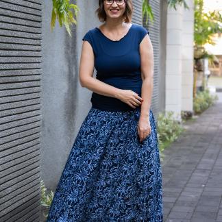 Připravte se na to, že touto úchvatnou, dlouhou sukní přitáhnete pozornost! Sukně je ušitá z lehké viskózové látky a pyšní se nádherným batikovým vzorem.