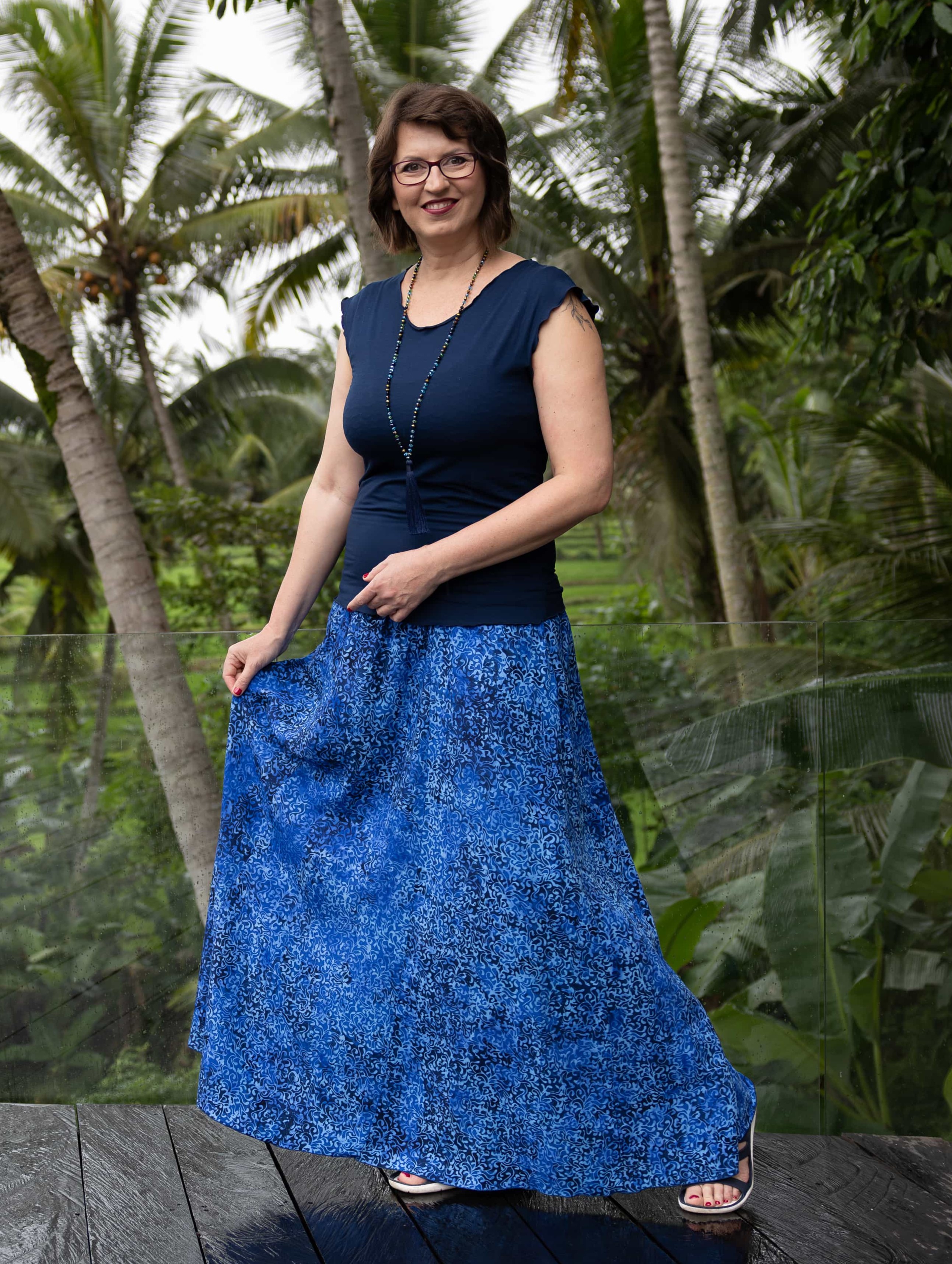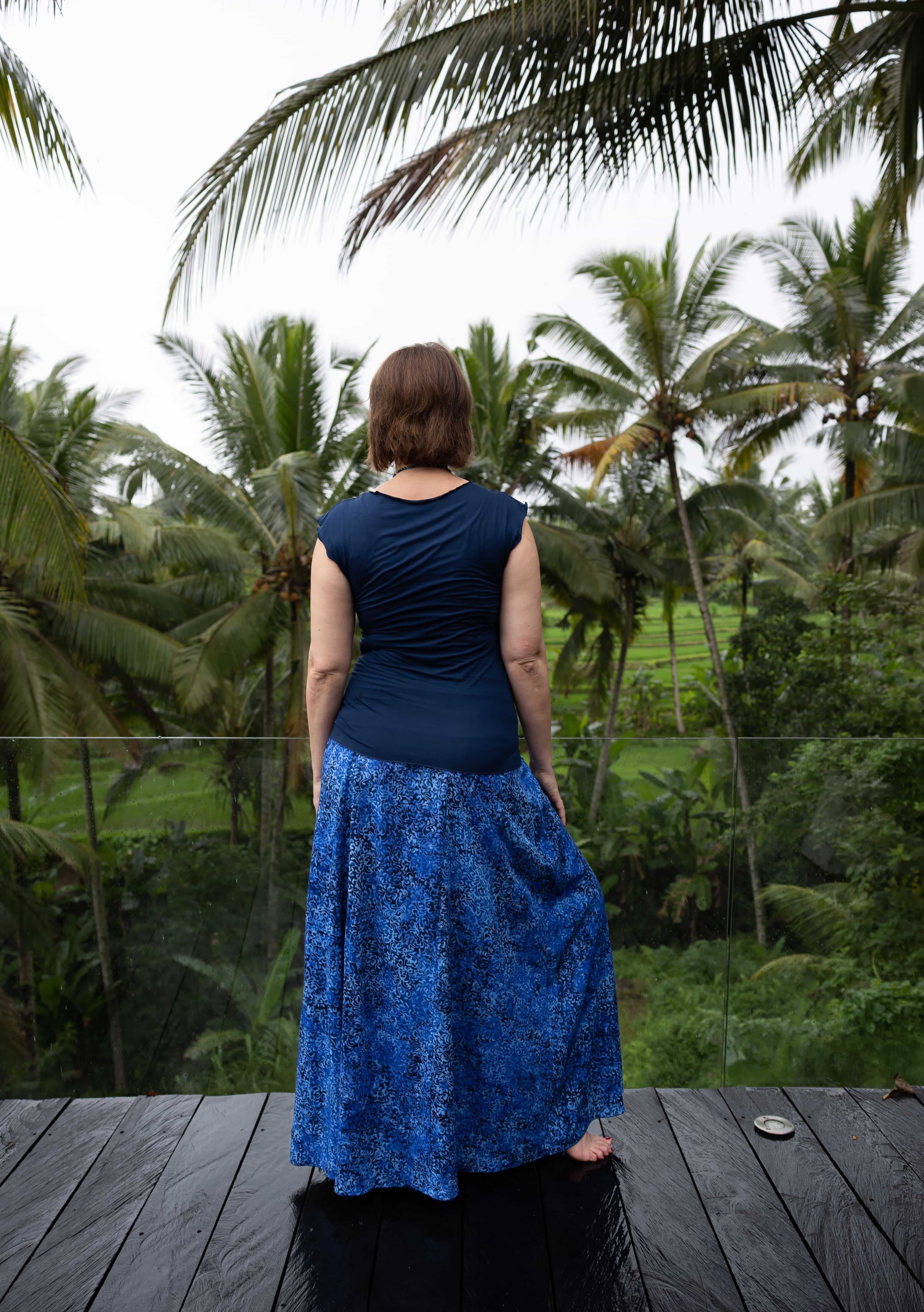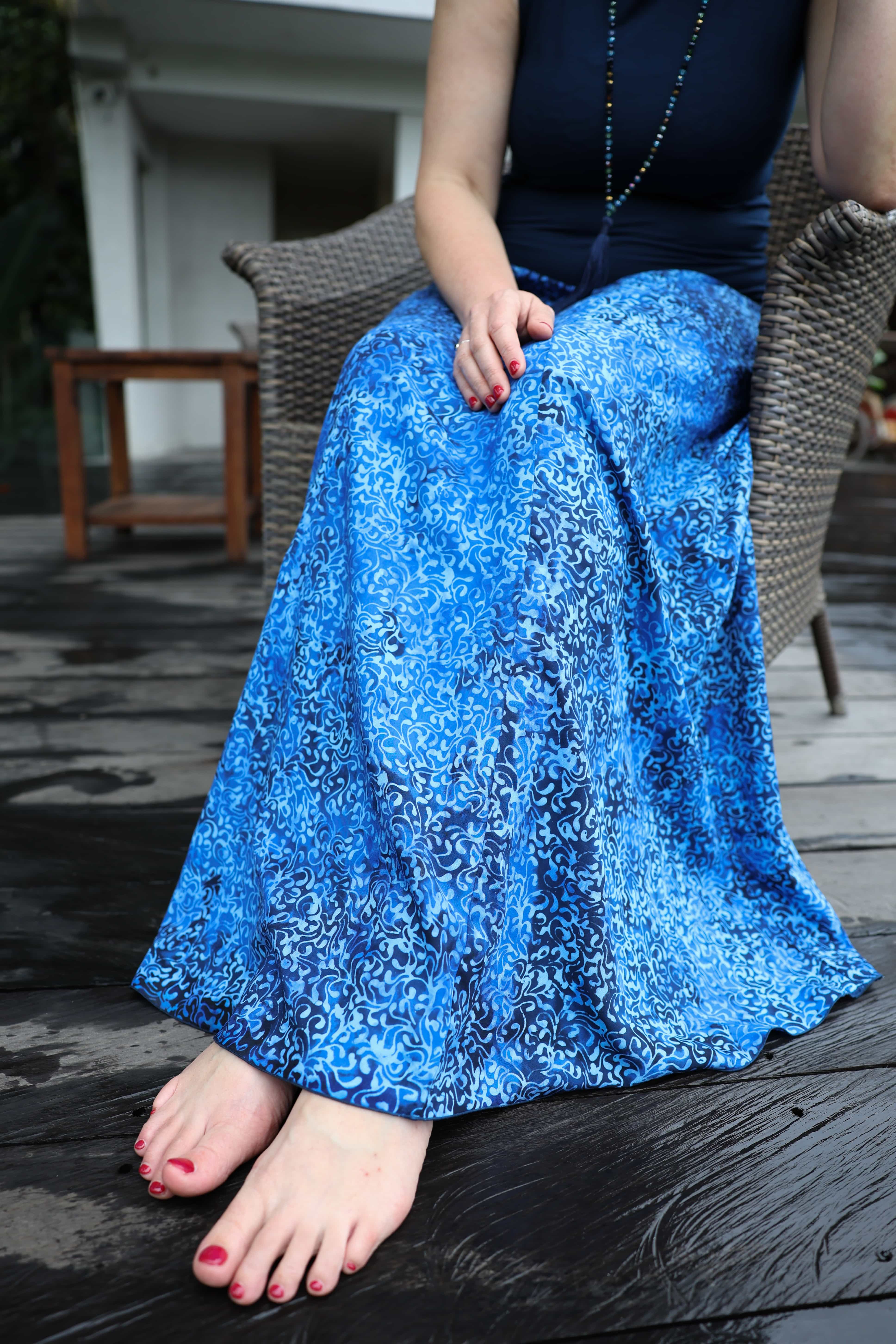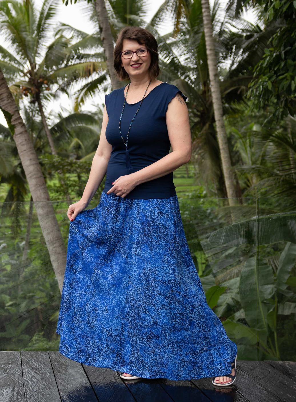 Vysoký elastický pas je nesmírně pohodlný na nošení. Sukně je vhodná i pro těhotné, pružný náplet v pase se krásně přizpůsobí bříšku a obejme ho po celém jeho obvodu. Ikonická Pacha sukně s délkou až na zem se krásně vlní při chůzi, vytvářejíc ženskou siluetu, která je pohodlná a stylová zároveň.