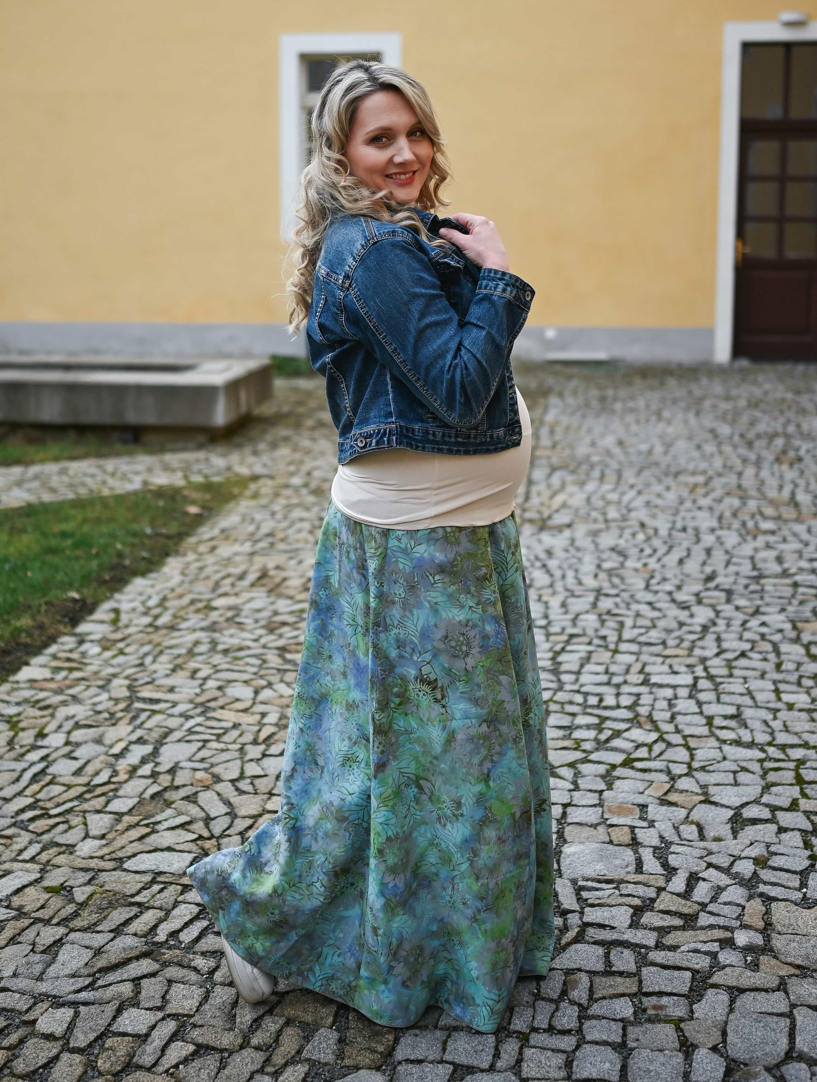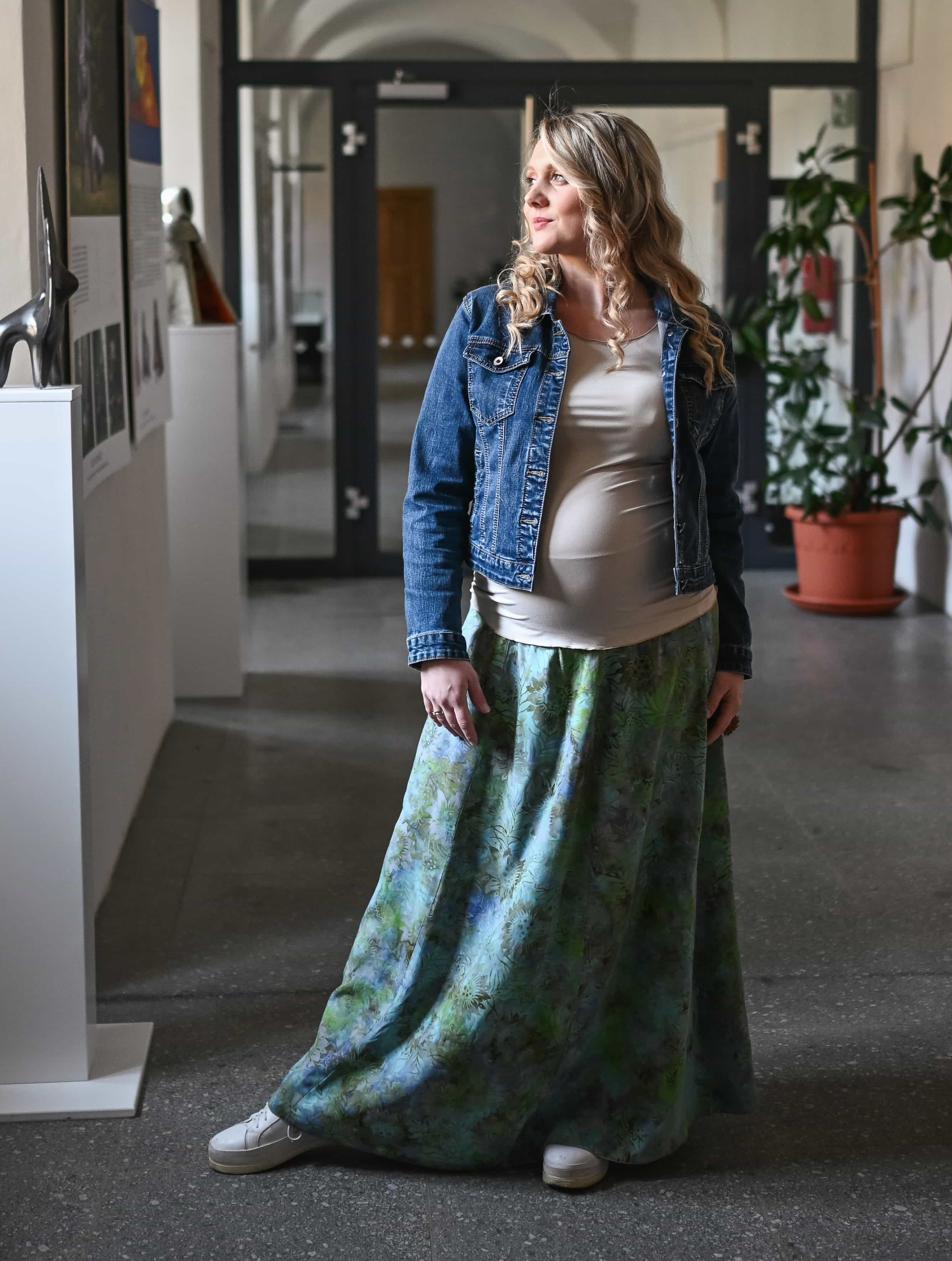 Vysoký elastický pas je nesmírně pohodlný na nošení. Sukně je vhodná i pro těhotné, pružný náplet v pase se krásně přizpůsobí bříšku a obejme ho po celém jeho obvodu. Ikonická Pacha sukně s délkou až na zem se krásně vlní při chůzi a vytváří ženskou siluetu.
