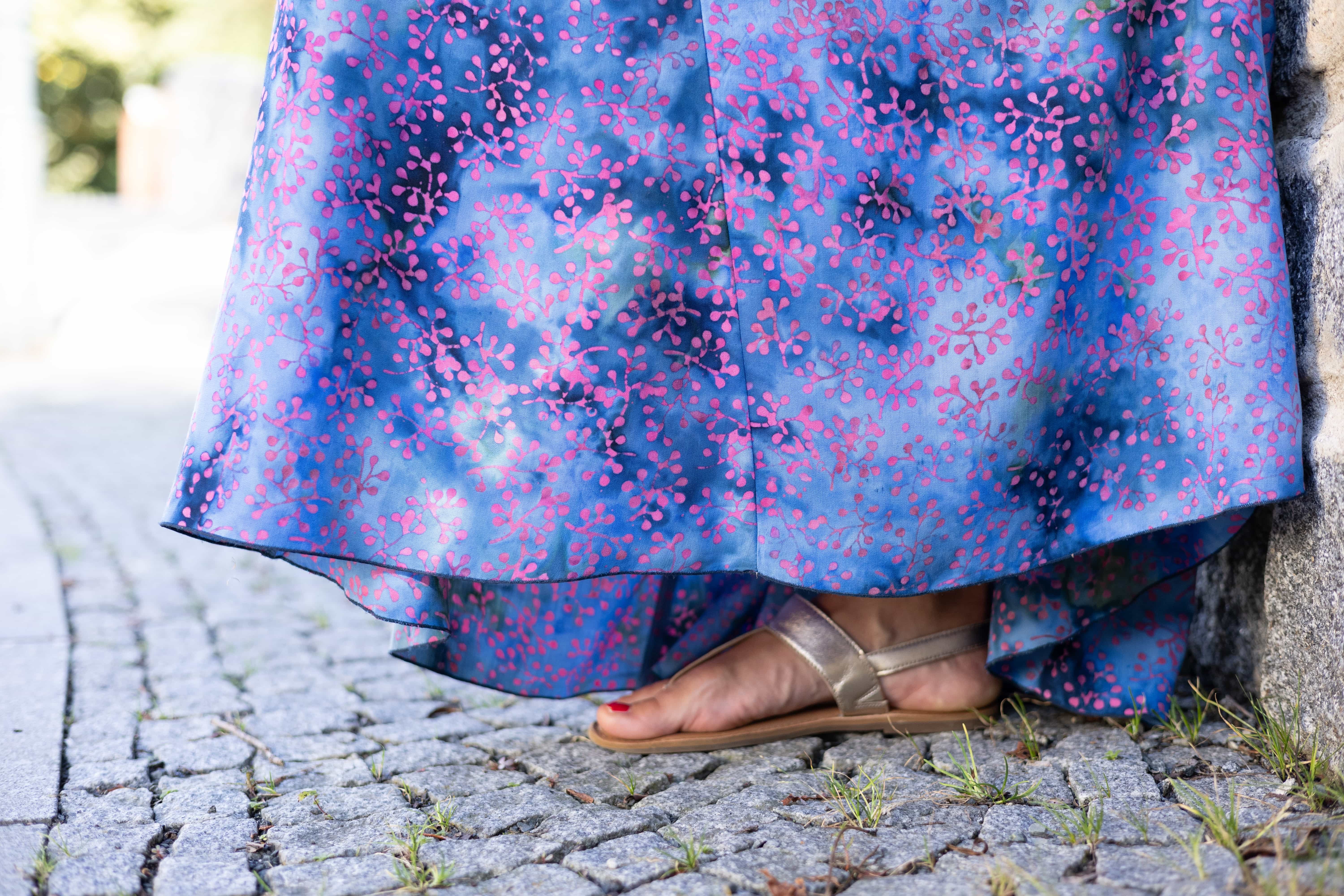 Připravte se na to, že touto úchvatnou, dlouhou sukní přitáhnete pozornost! Sukně je ušitá z lehké viskózové látky a pyšní se nádherným batikovým vzorem.