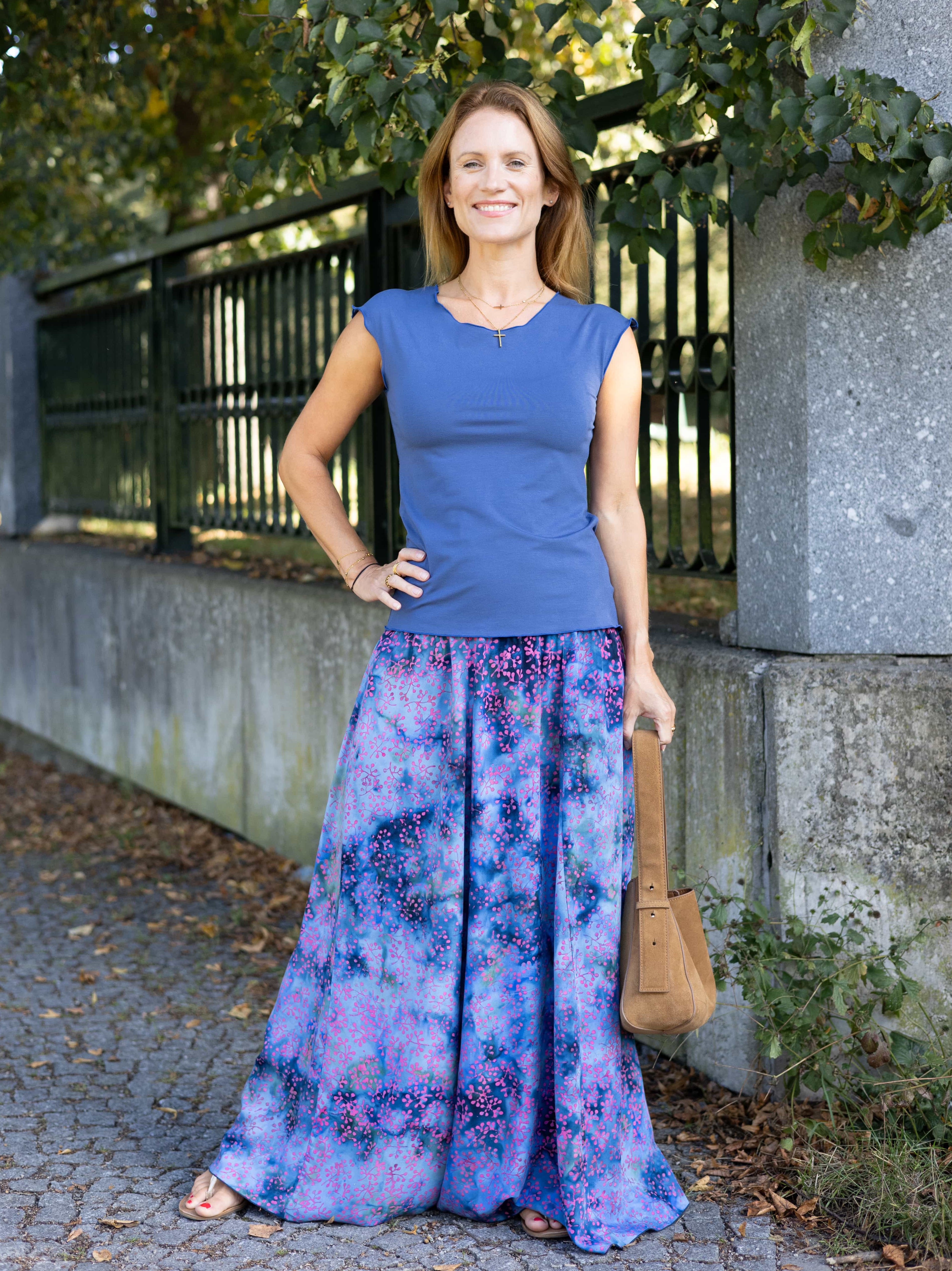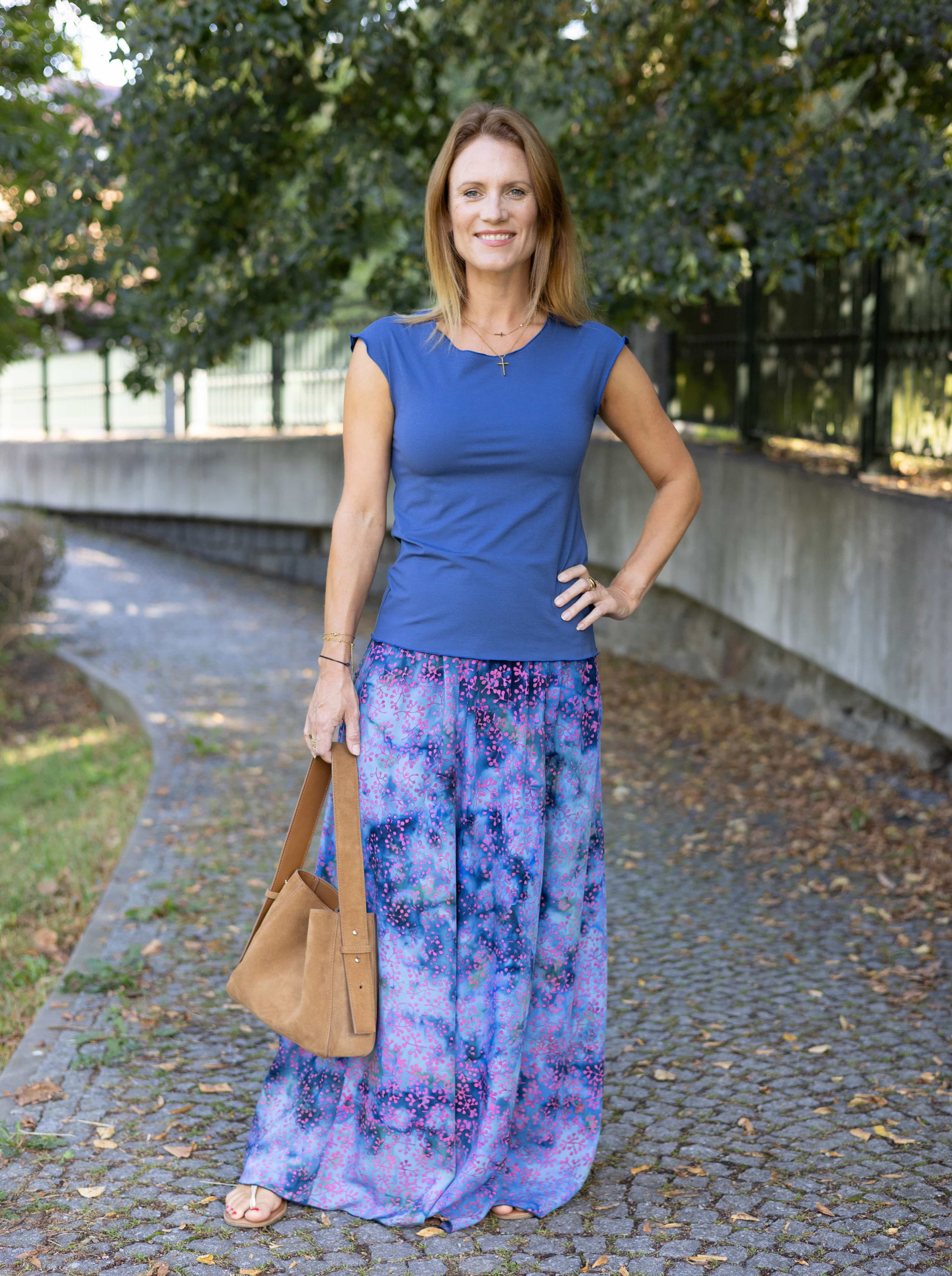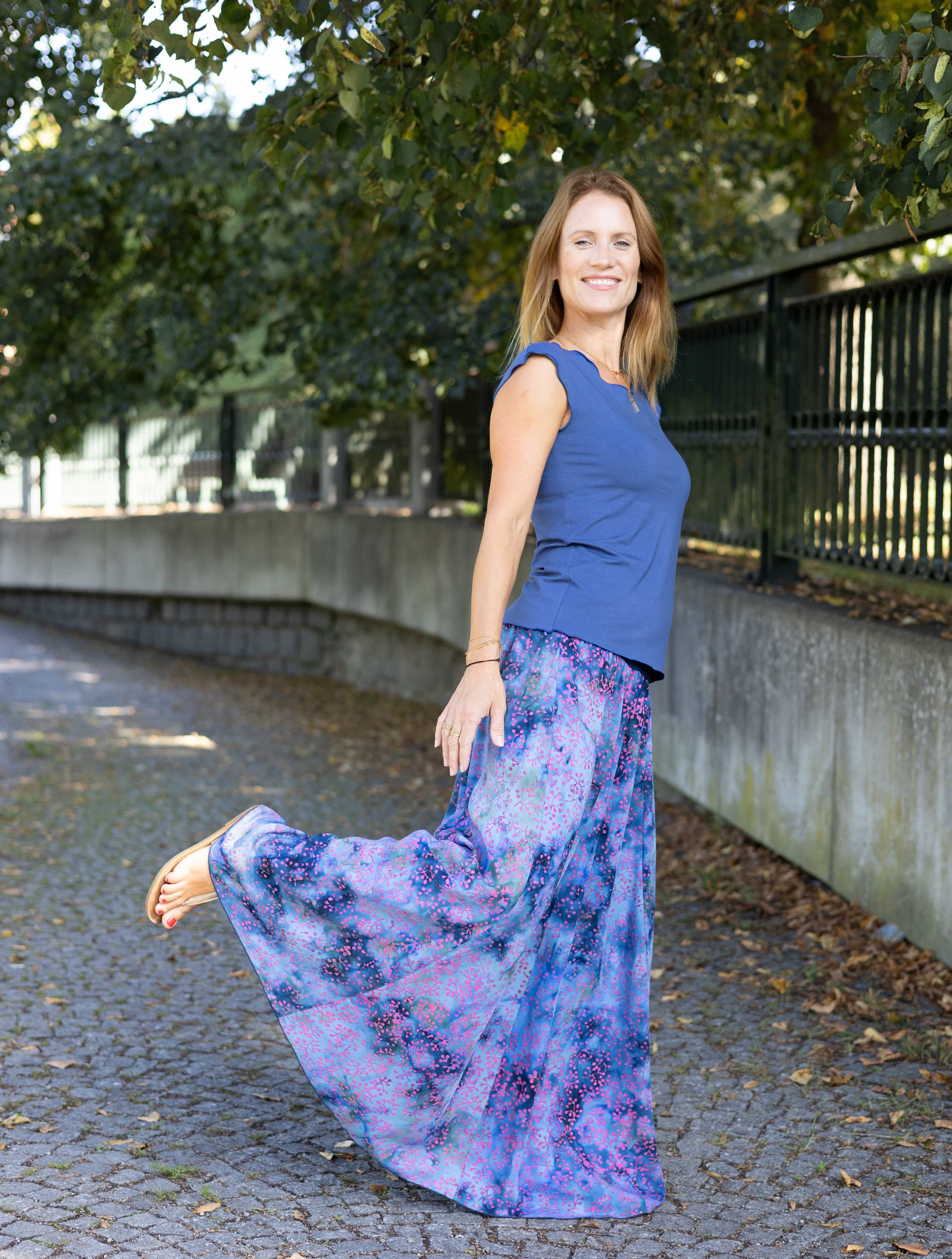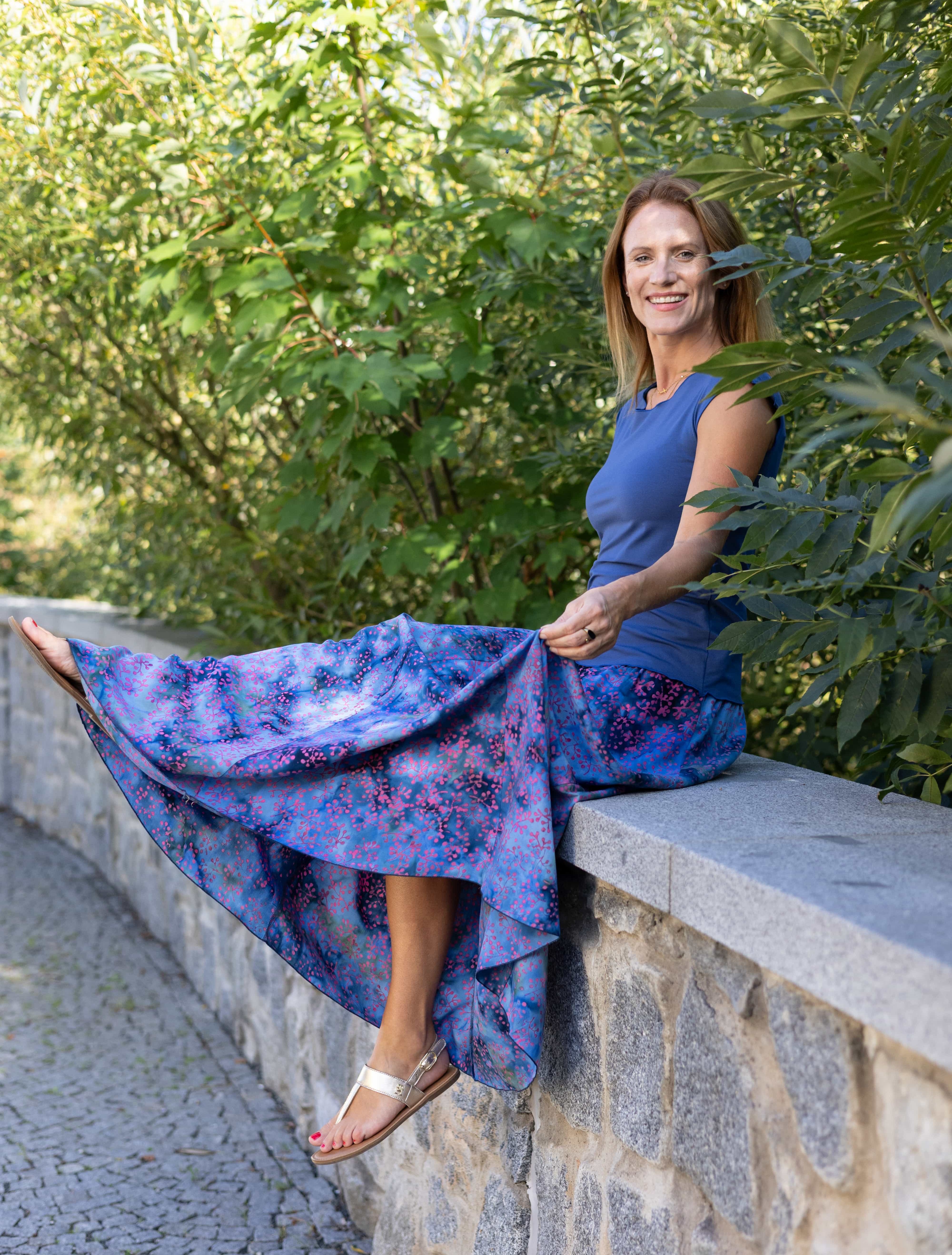Vysoký elastický pas je nesmírně pohodlný na nošení. Sukně je vhodná i pro těhotné, pružný náplet v pase se krásně přizpůsobí bříšku a obejme ho po celém jeho obvodu. Ikonická Pacha sukně s délkou až na zem se krásně vlní při chůzi a vytváří ženskou siluetu.
