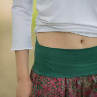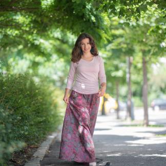 Vysoký elastický pas je nesmírně pohodlný na nošení. Sukně je vhodná i pro těhotné, pružný náplet v pase se krásně přizpůsobí bříšku a obejme ho po celém jeho obvodu. Ikonická Pacha sukně s délkou až na zem se krásně vlní při chůzi a vytváří ženskou siluetu.