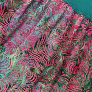 Materiál: 100 % viskóza, vosková batika. Lem: 90 % viskóza + 10% spandex.