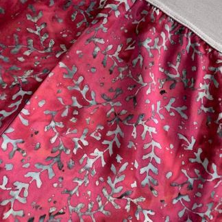 Materiál: 100 % viskóza, vosková batika. Lem: 90 % viskóza + 10% spandex.