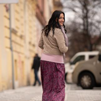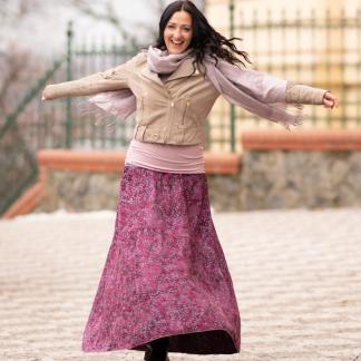 Vysoký elastický pas je nesmírně pohodlný na nošení. Sukně je vhodná i pro těhotné, pružný náplet v pase se krásně přizpůsobí bříšku a obejme ho po celém jeho obvodu. Ikonická Pacha sukně s délkou až na zem se krásně vlní při chůzi a vytváří ženskou siluetu.