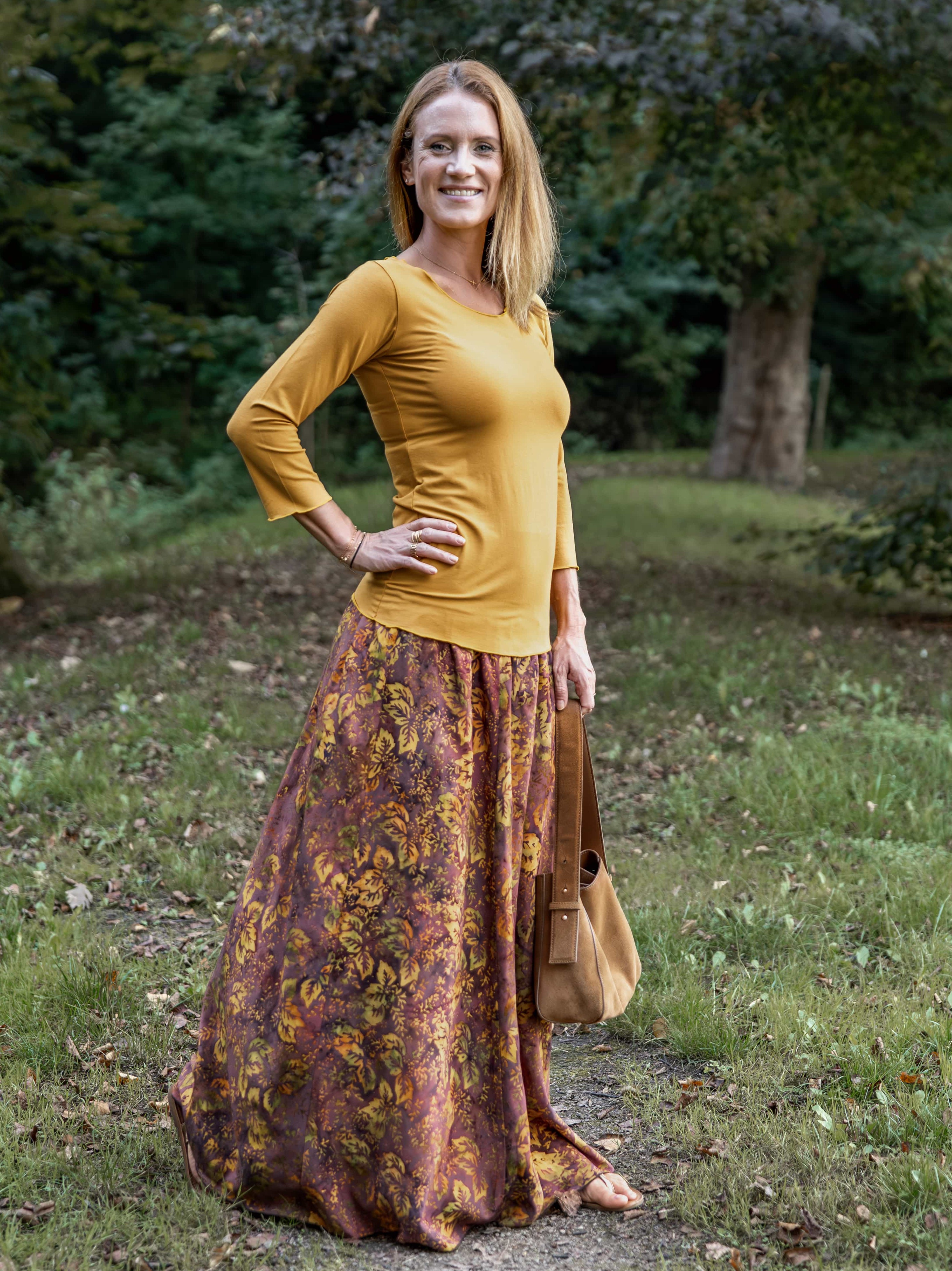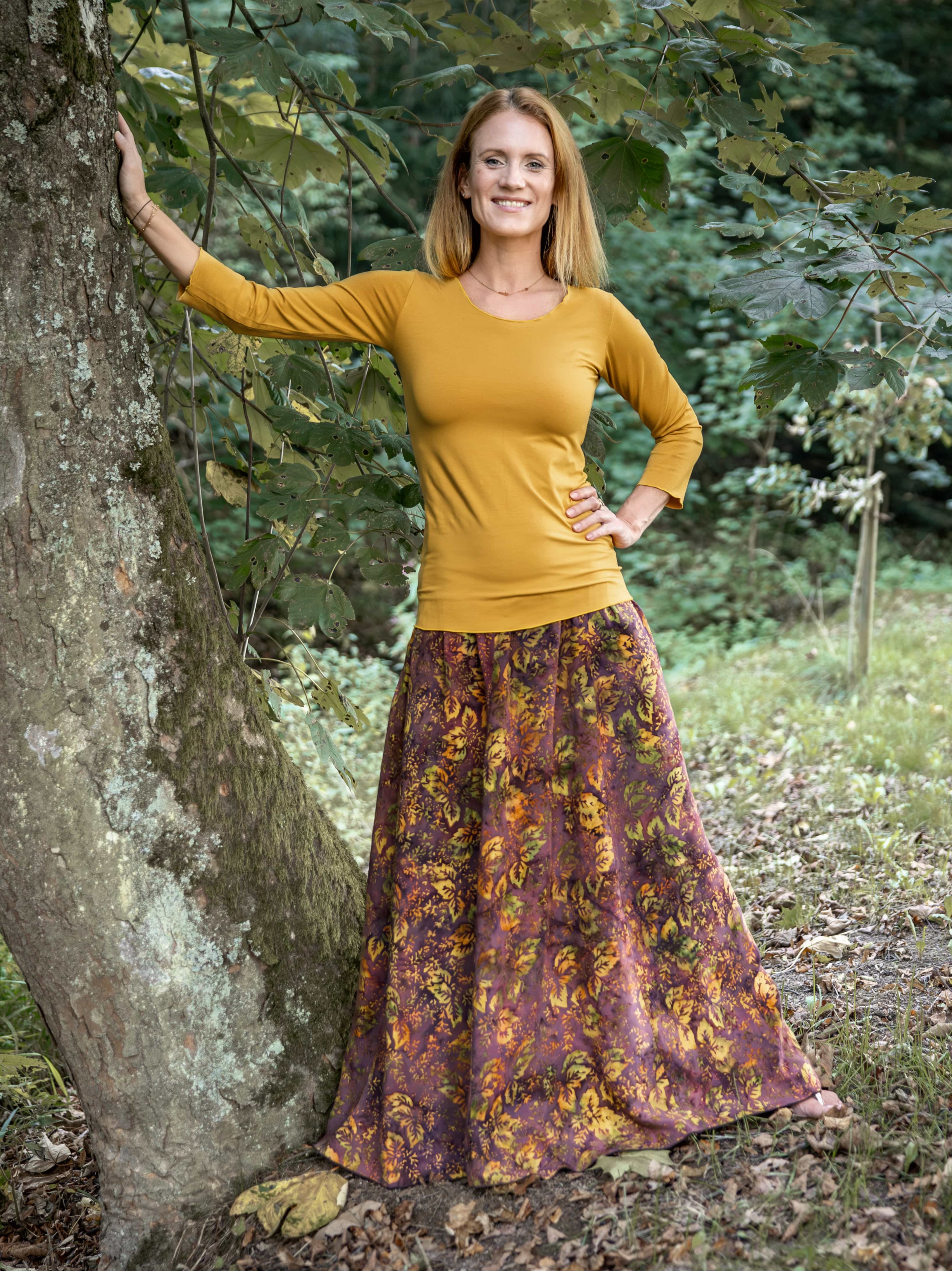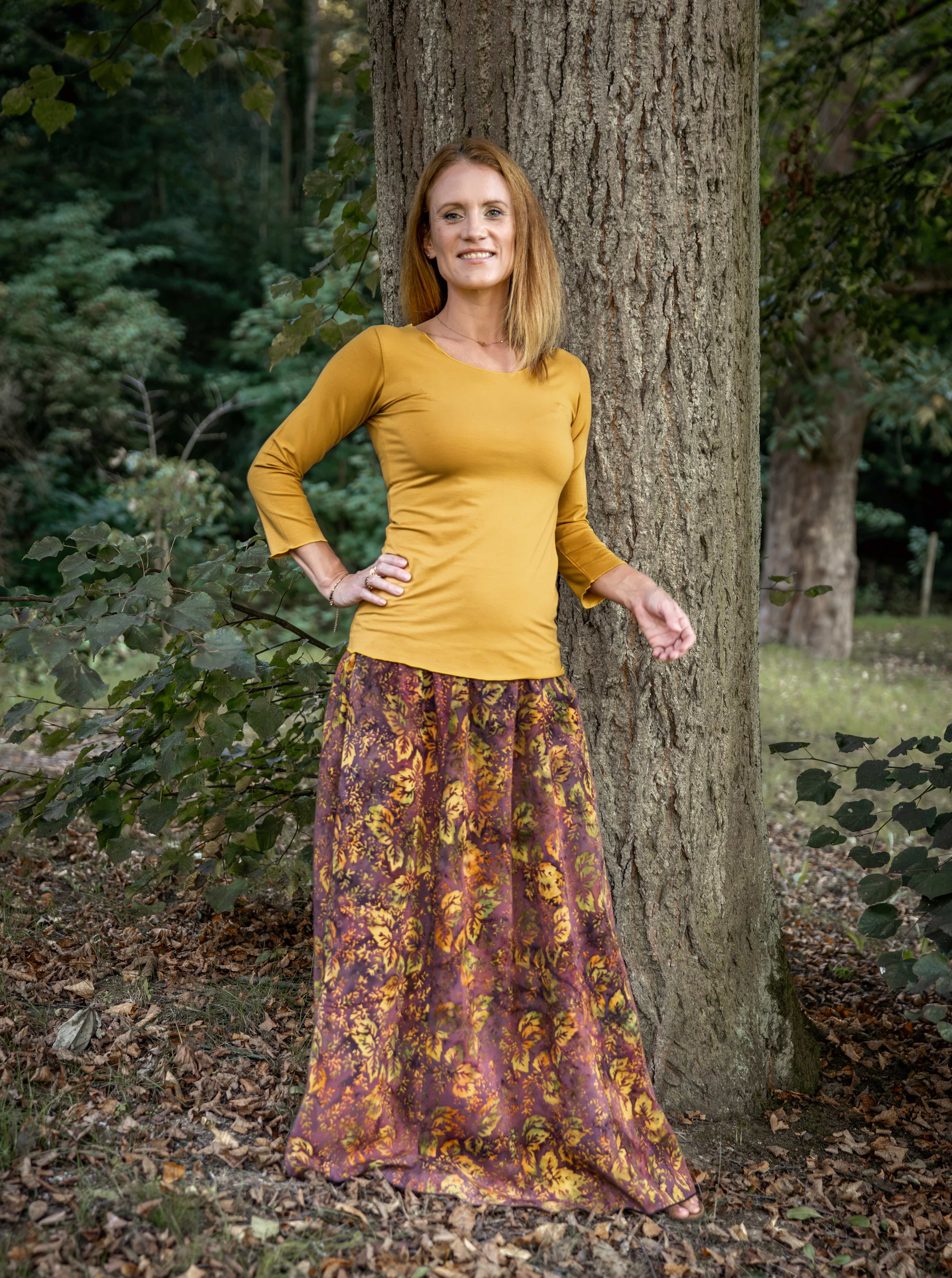 Vysoký elastický pas je nesmírně pohodlný na nošení. Sukně je vhodná i pro těhotné, pružný náplet v pase se krásně přizpůsobí bříšku a obejme ho po celém jeho obvodu. Ikonická Pacha sukně s délkou až na zem se krásně vlní při chůzi a vytváří ženskou siluetu.