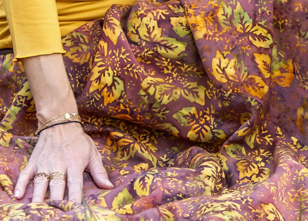 Připravte se na to, že touto úchvatnou, dlouhou sukní přitáhnete pozornost! Sukně je ušitá z lehké viskózové látky a pyšní se nádherným batikovým vzorem.