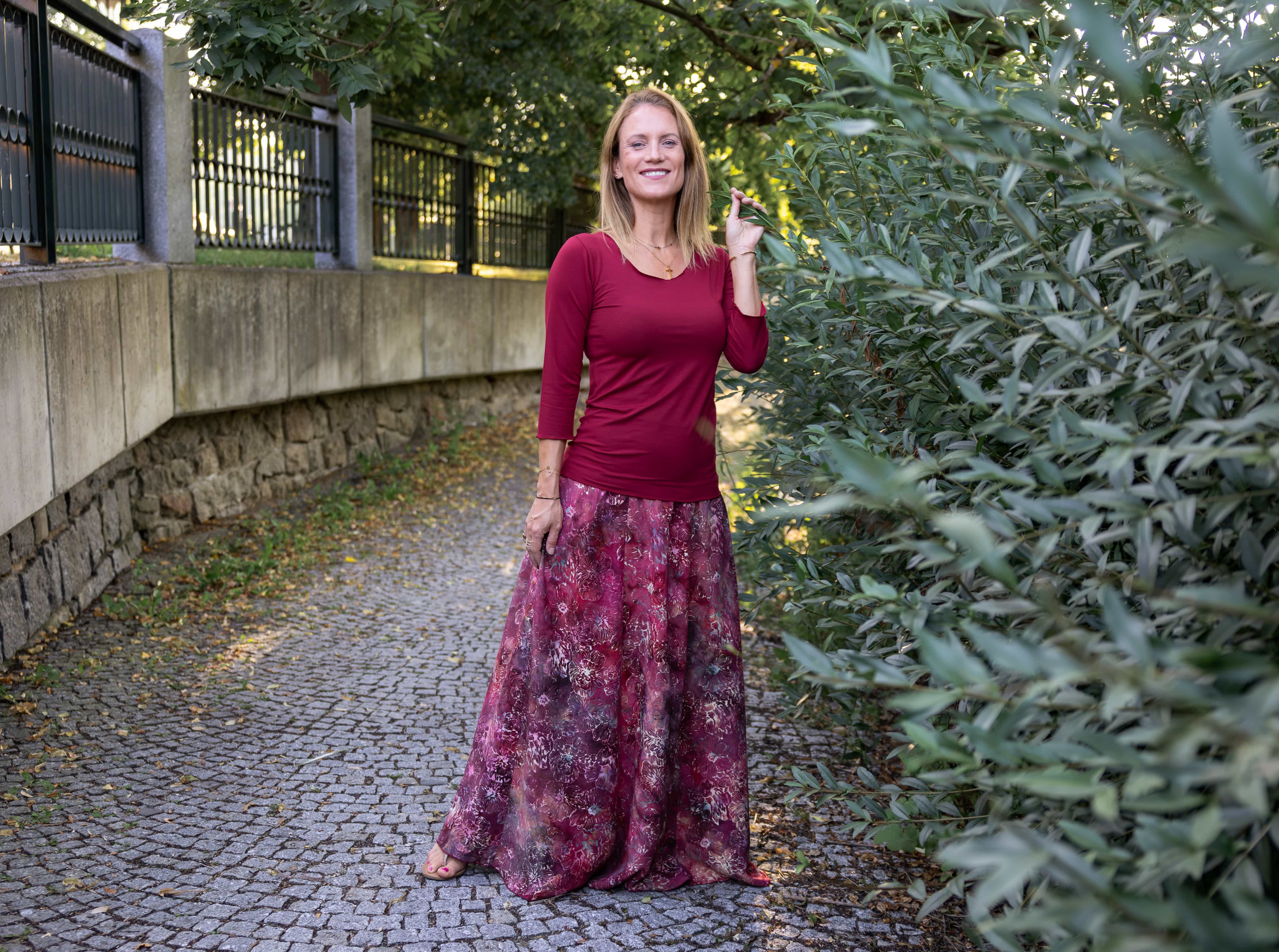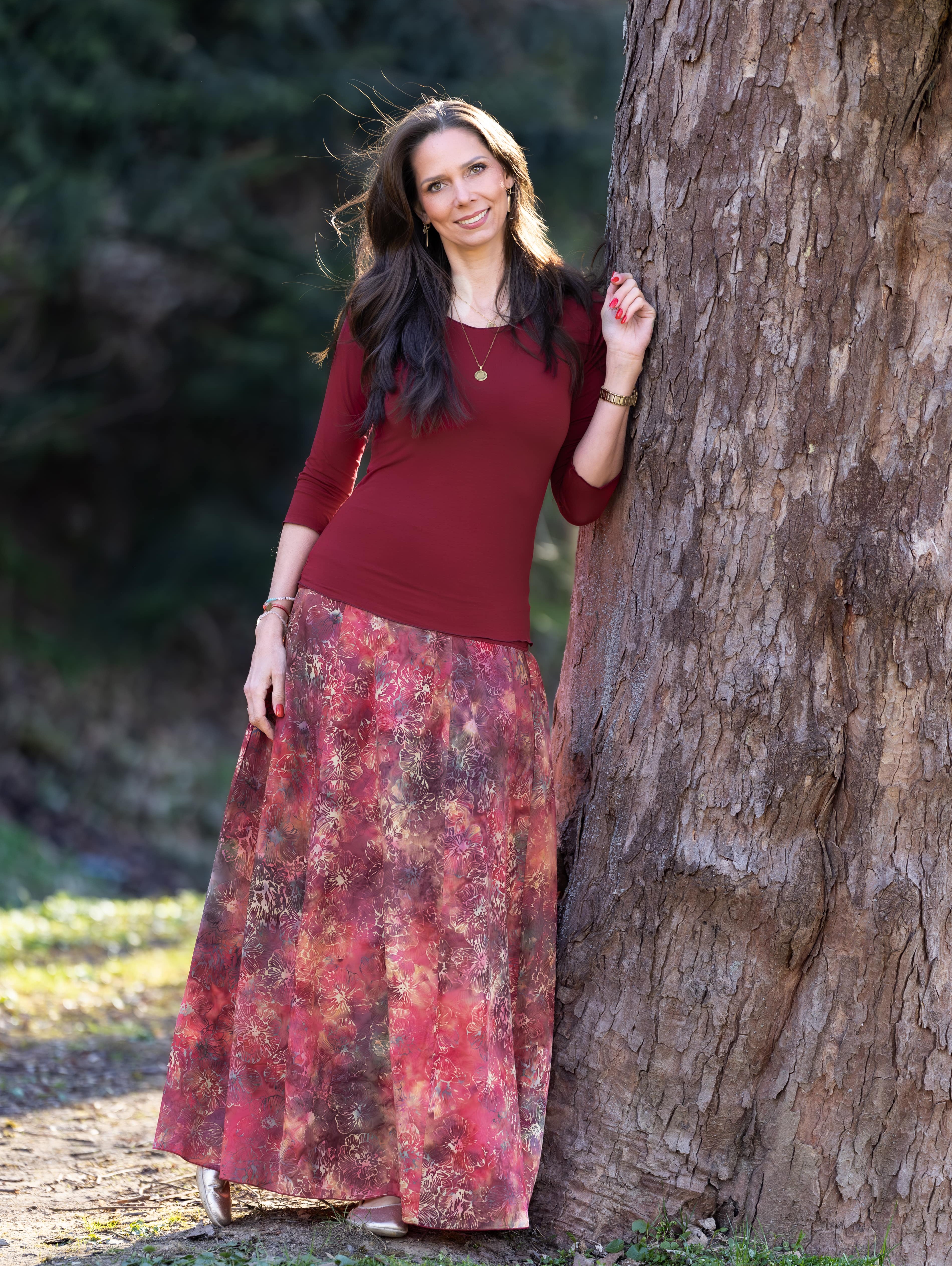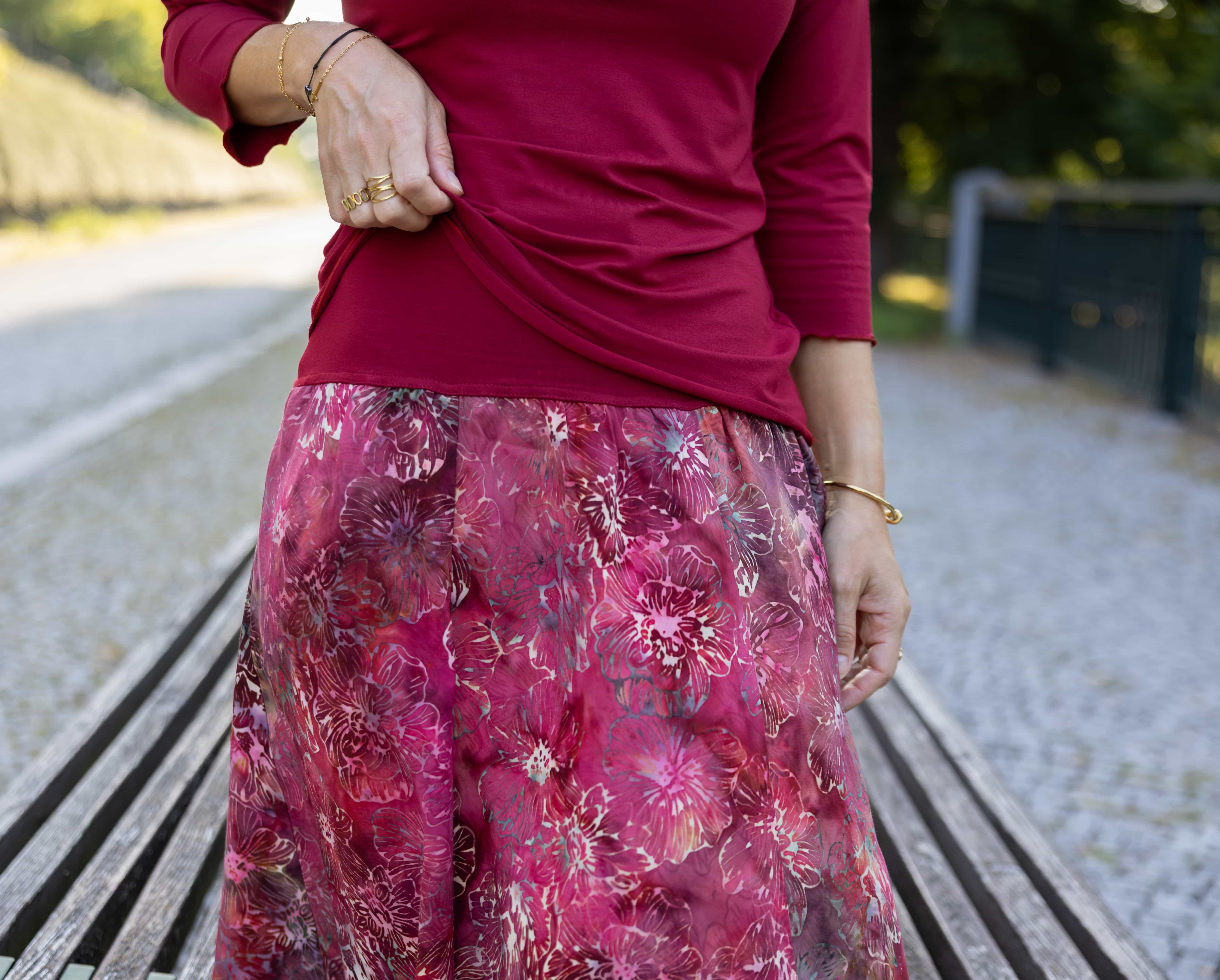 Barva sukně: barvy červeného vína a granátového jablka