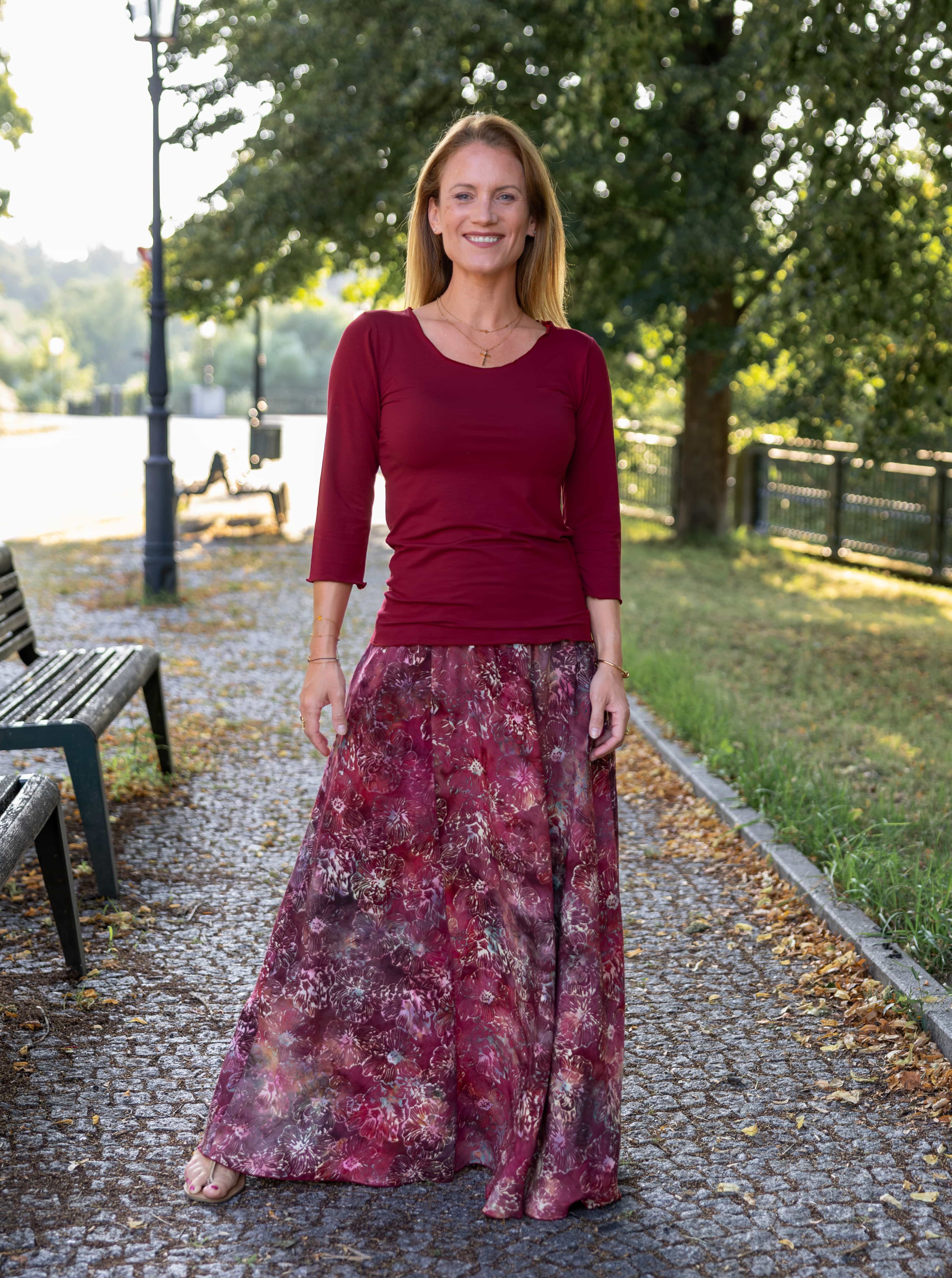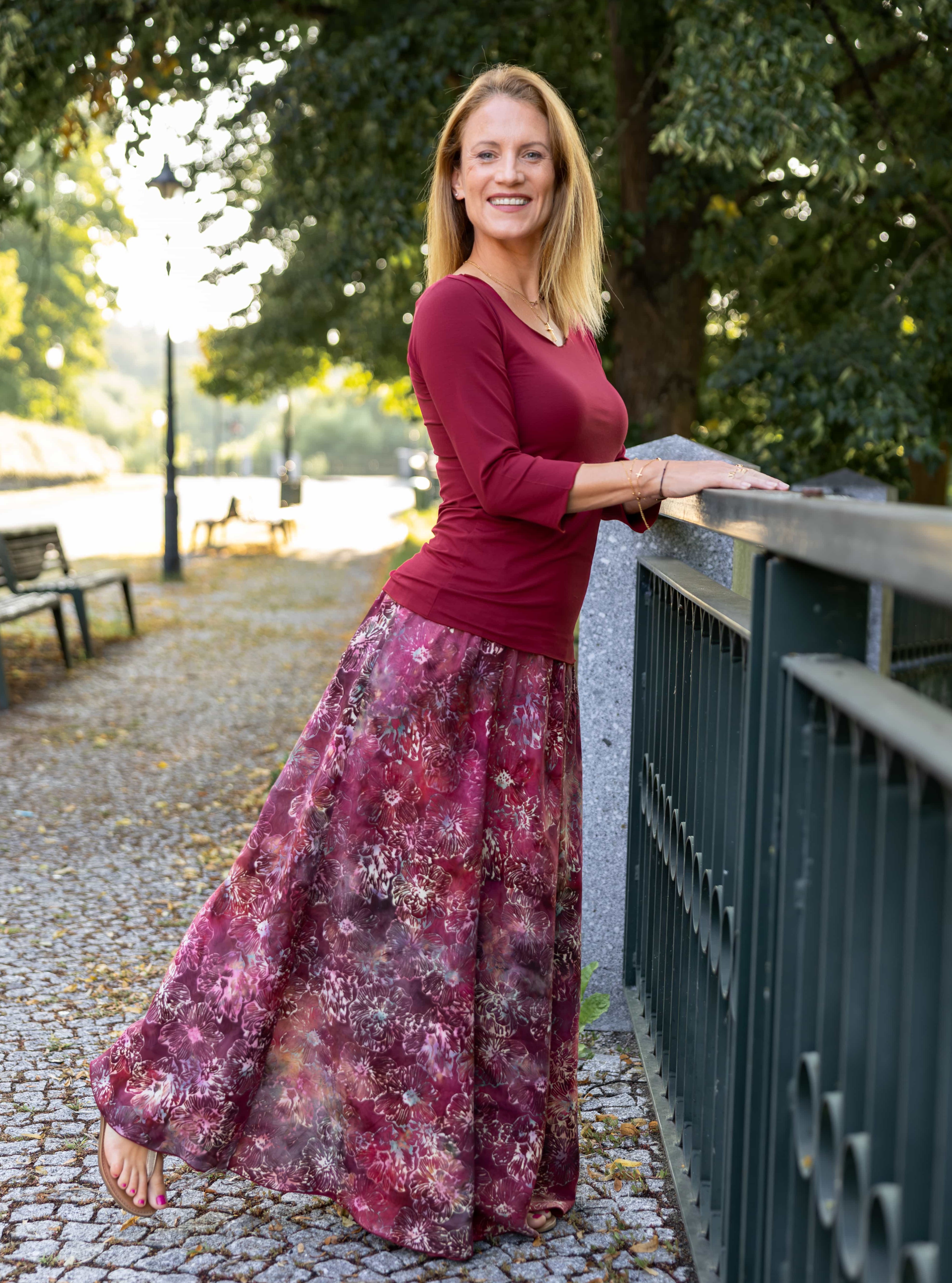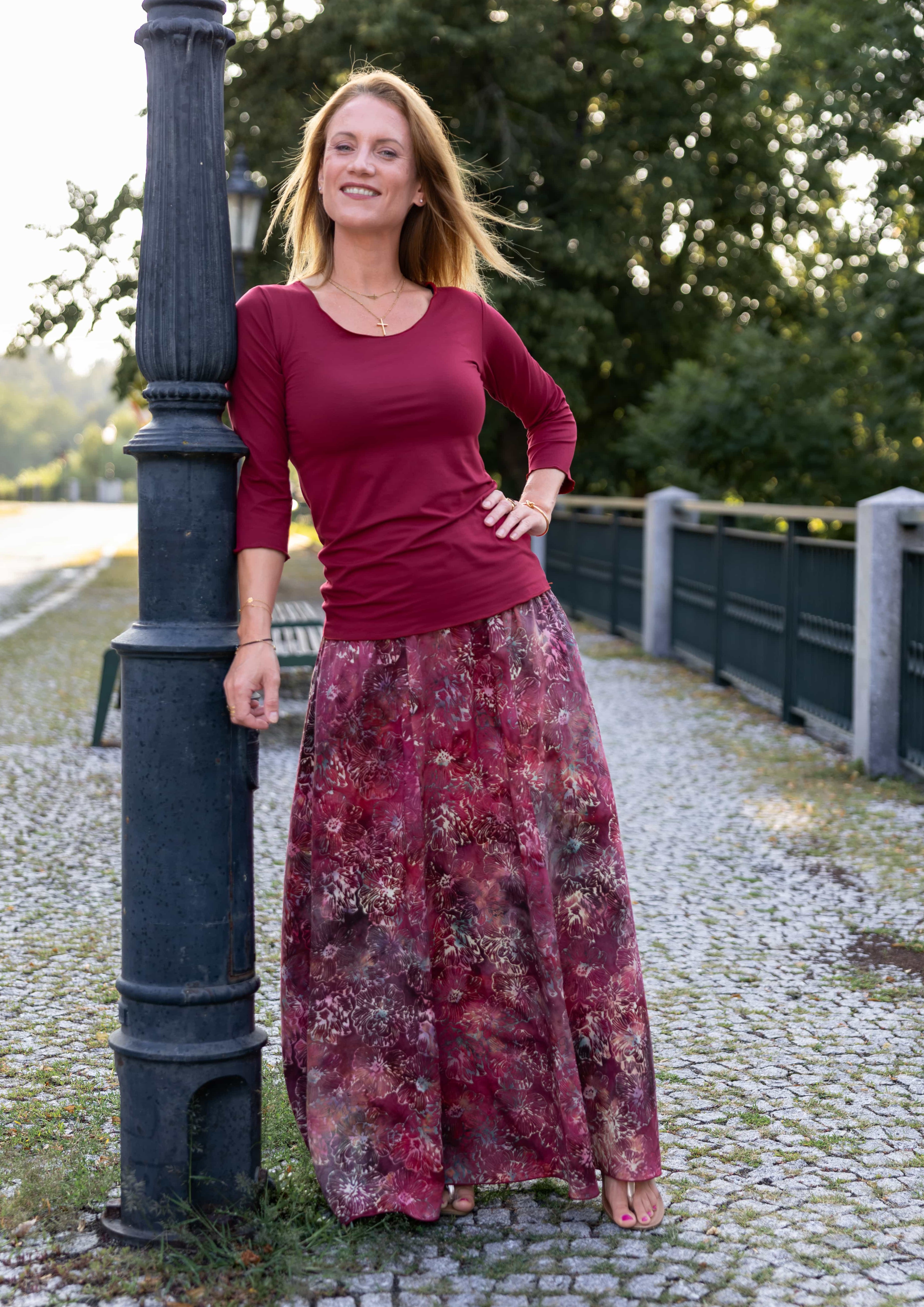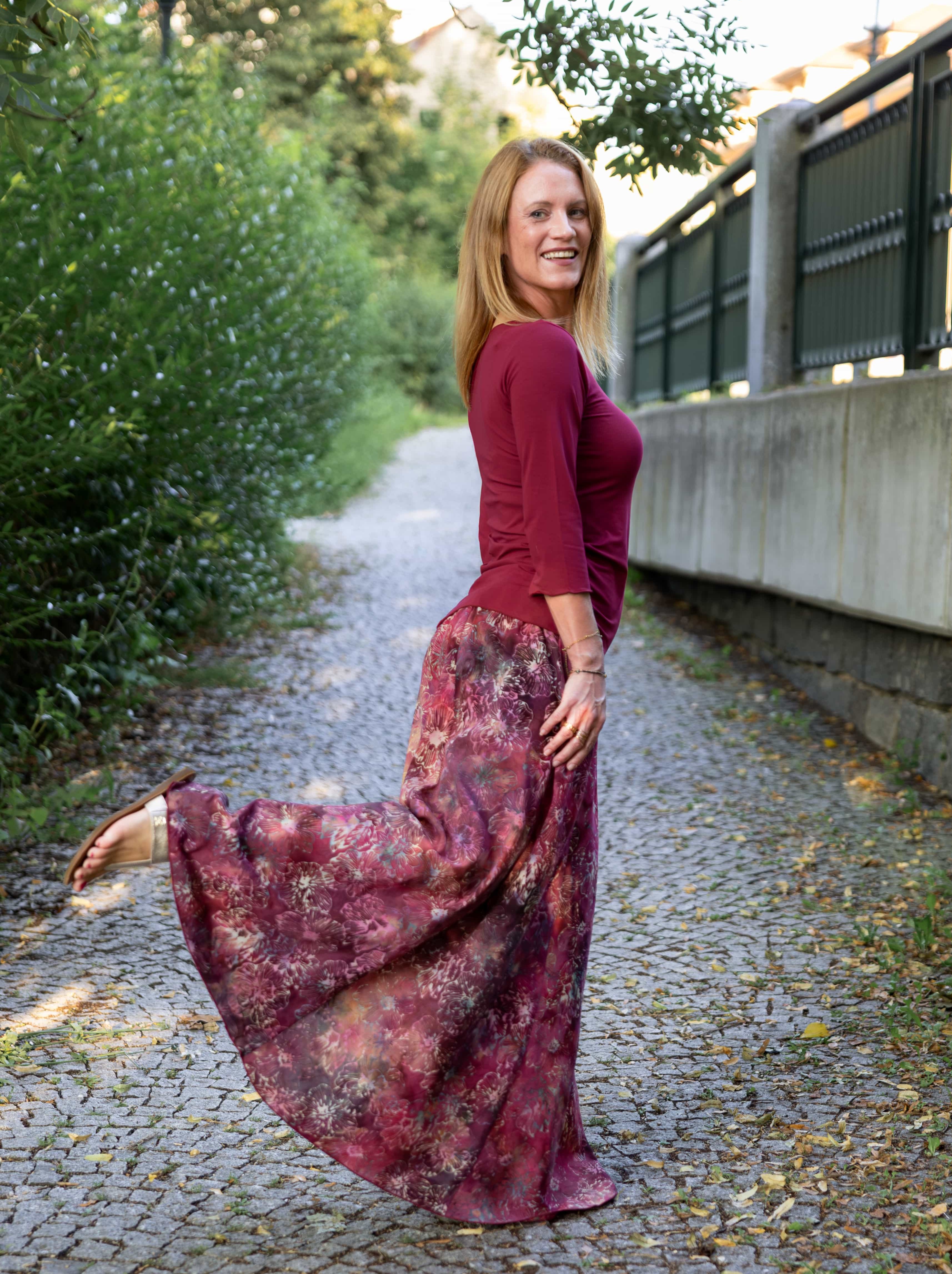 Barva sukně: barvy červeného vína a granátového jablka