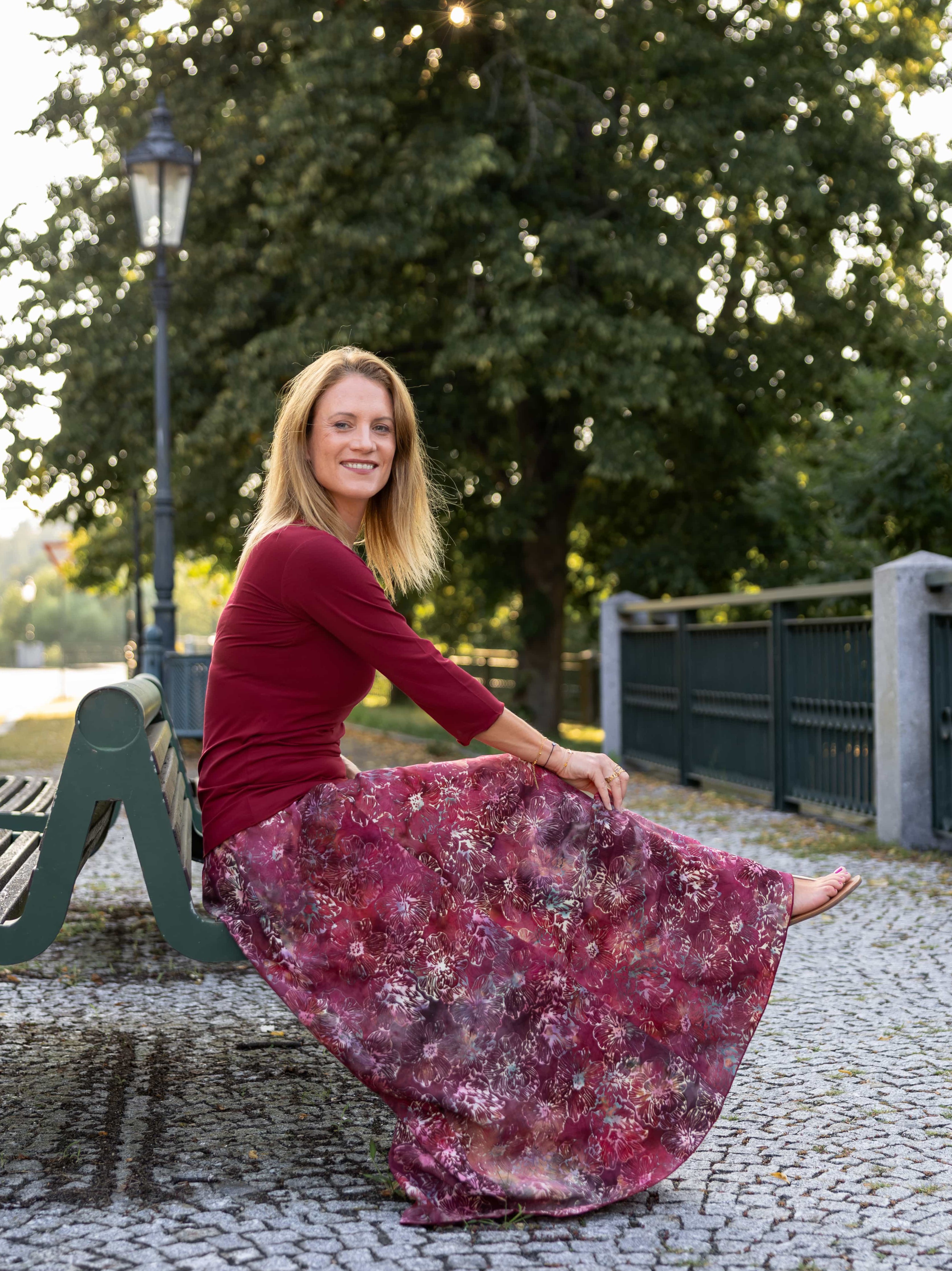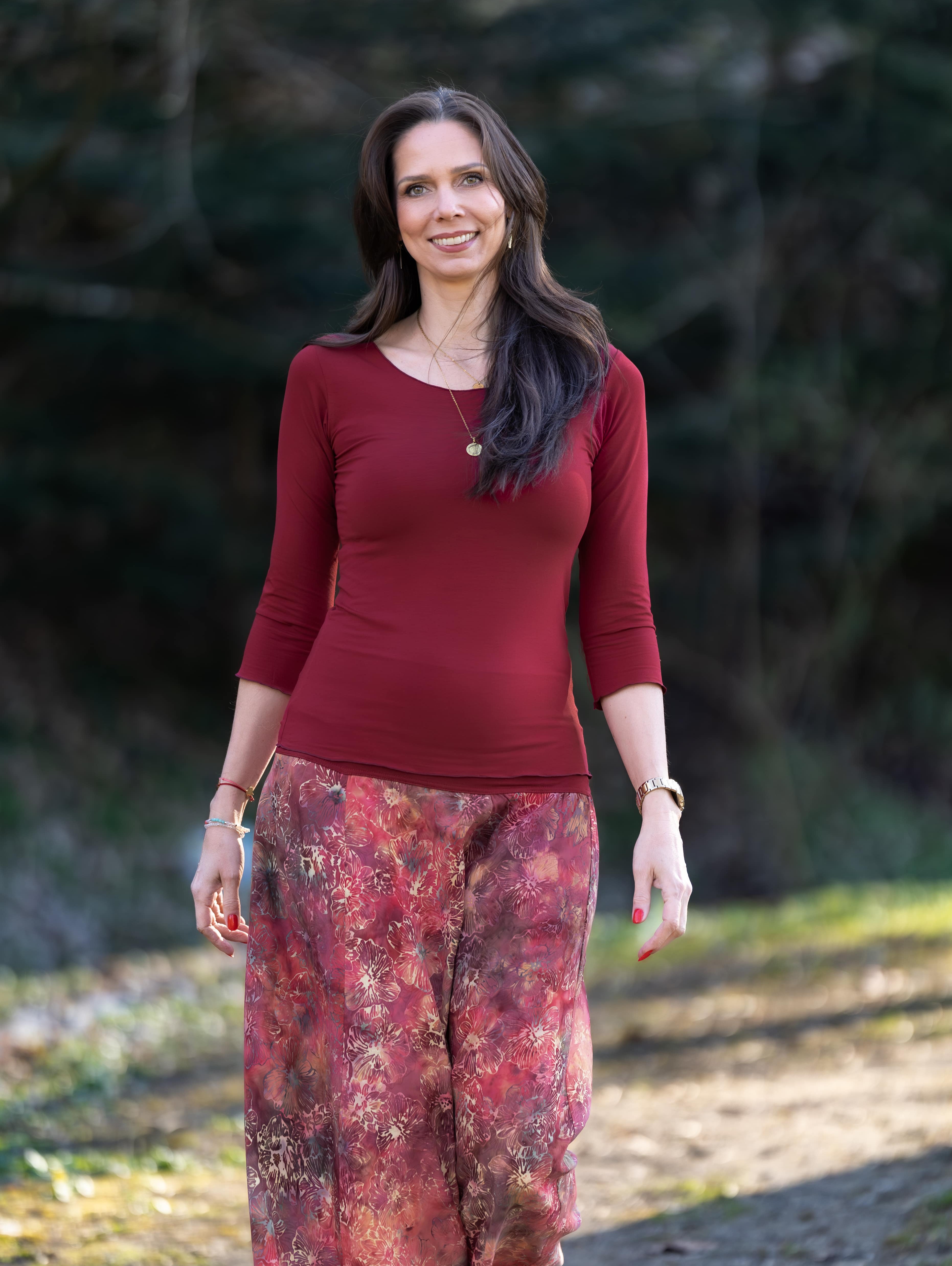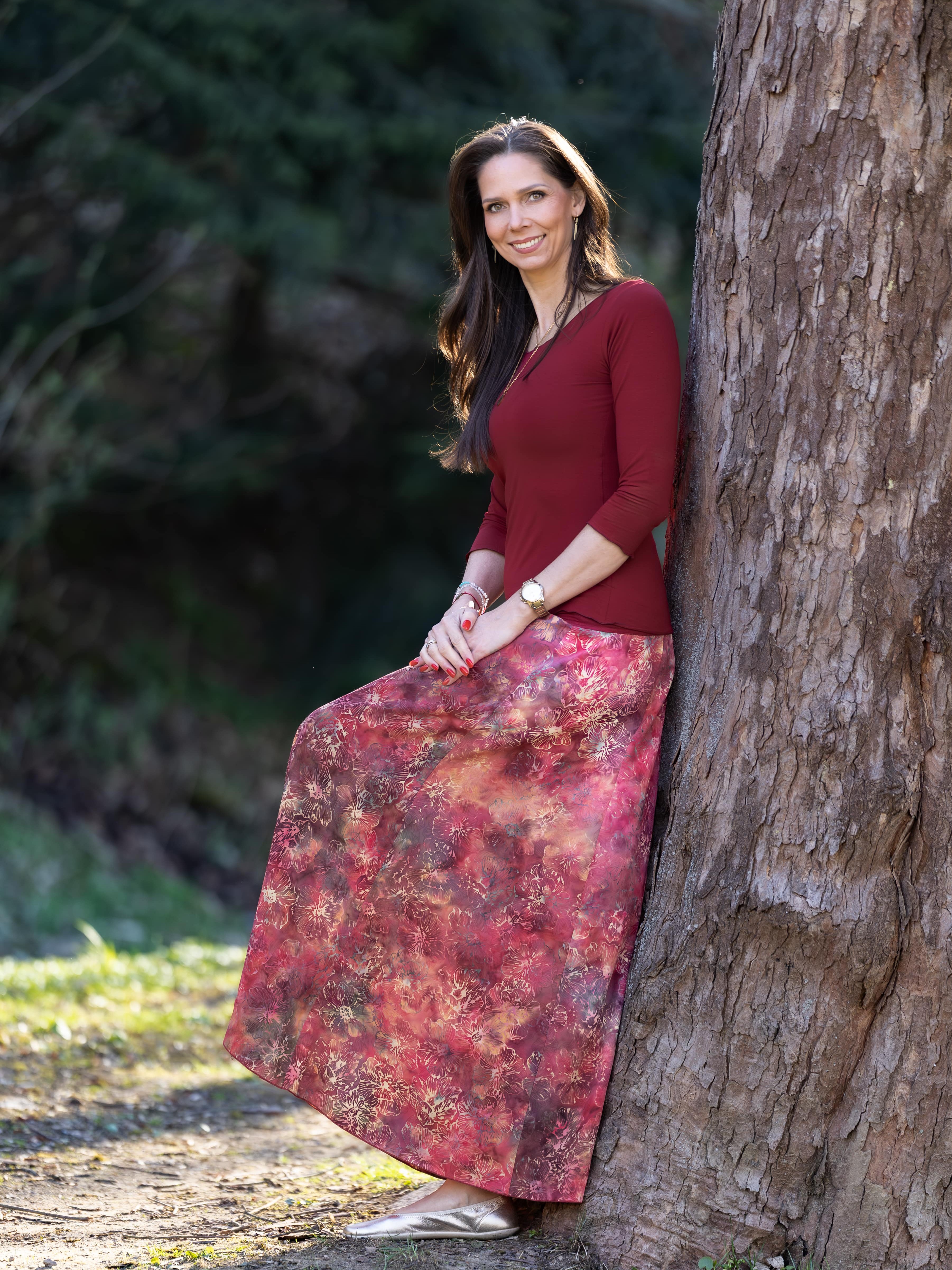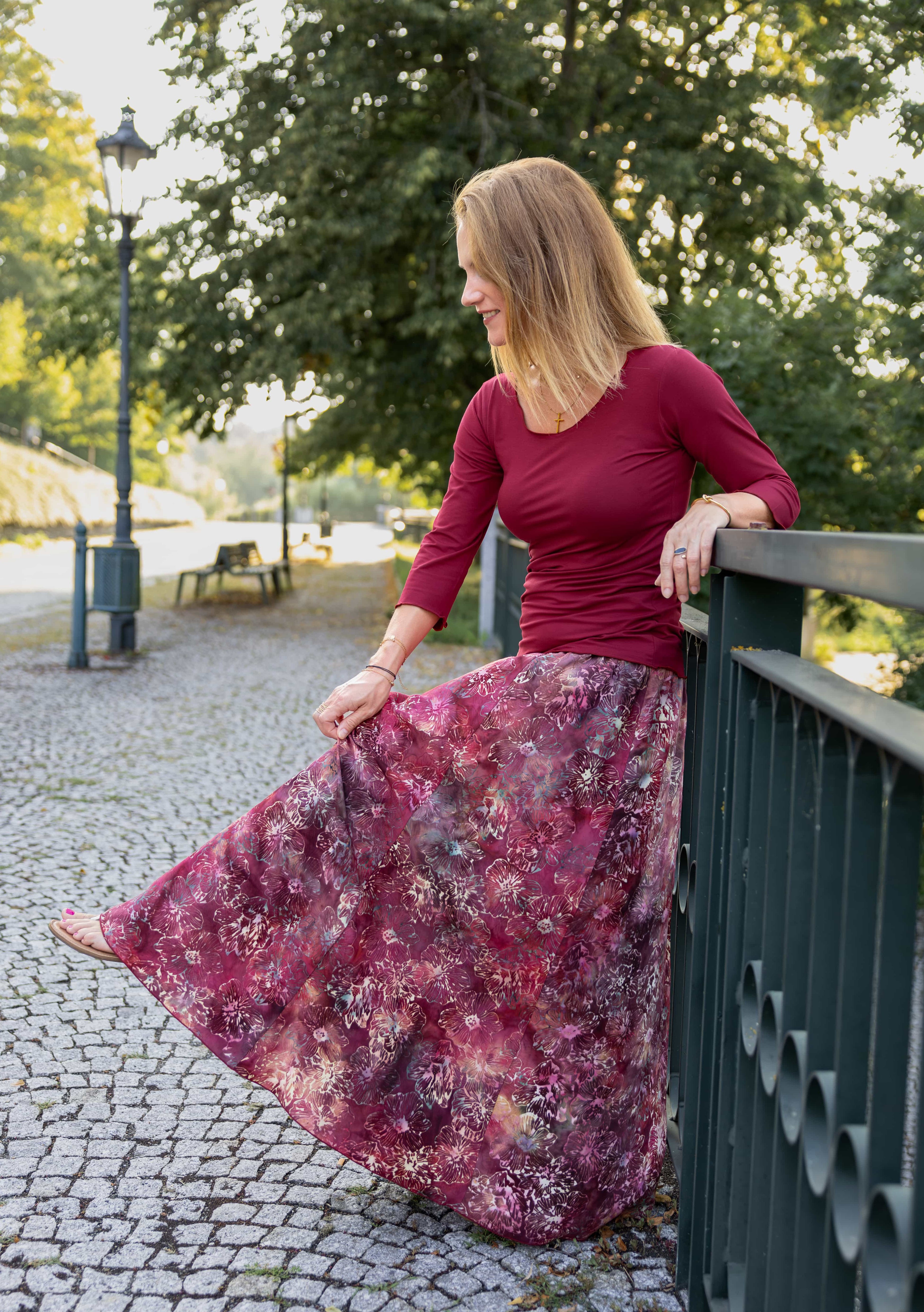 Vysoký elastický pas je nesmírně pohodlný na nošení. Sukně je vhodná i pro těhotné, pružný náplet v pase se krásně přizpůsobí bříšku a obejme ho po celém jeho obvodu. Ikonická Pacha sukně s délkou až na zem se krásně vlní při chůzi a vytváří ženskou siluetu.