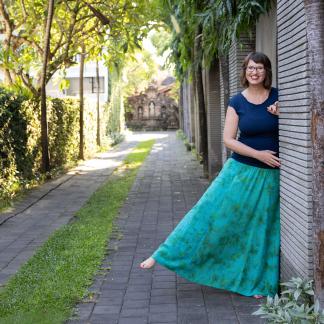 Připravte se na to, že touto úchvatnou, dlouhou sukní přitáhnete pozornost! Sukně je ušitá z lehké viskózové látky a pyšní se nádherným batikovým vzorem.