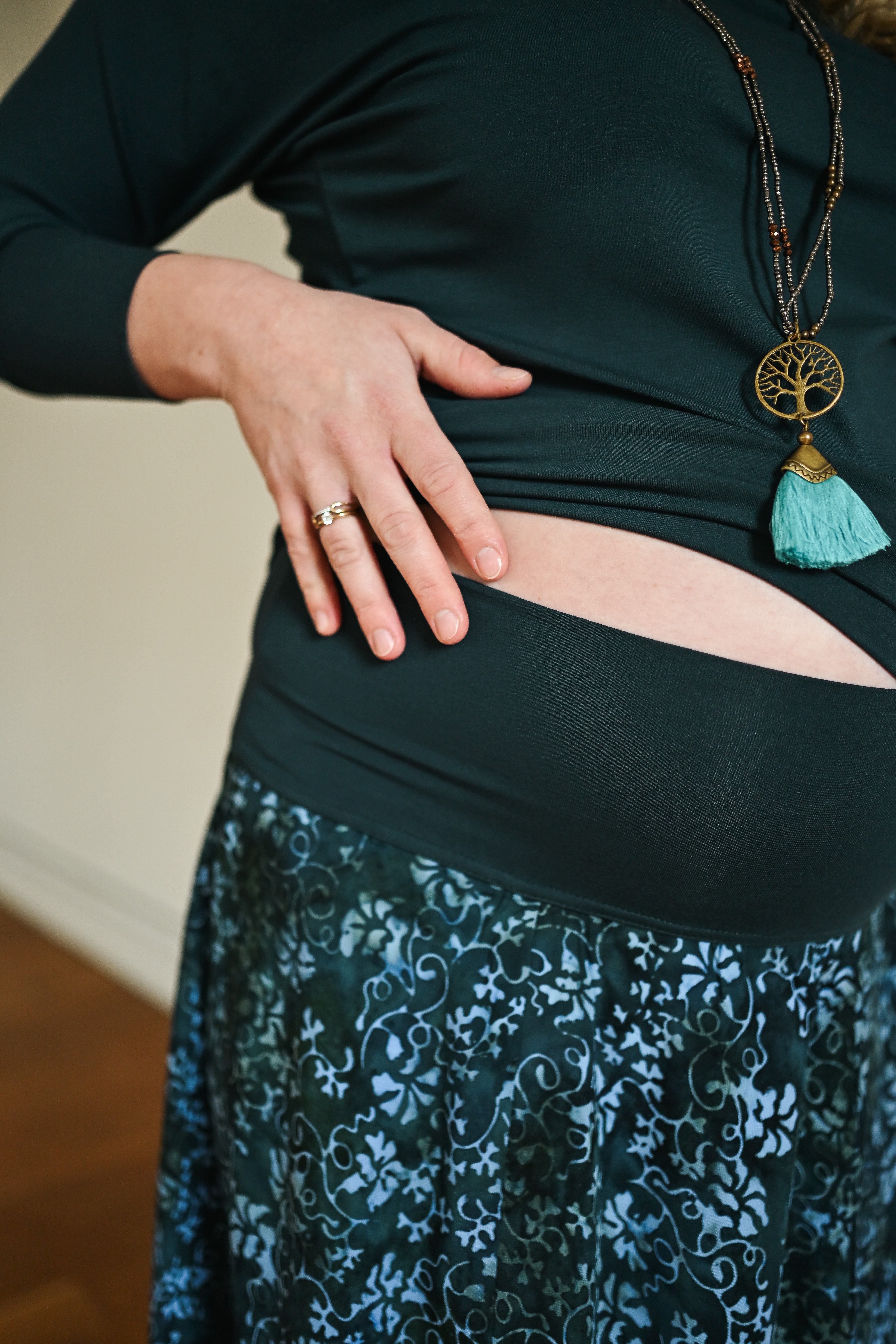 Vysoký elastický pas je nesmírně pohodlný na nošení. Sukně je vhodná i pro těhotné, pružný náplet v pase se krásně přizpůsobí bříšku a obejme ho po celém jeho obvodu. Ikonická Pacha sukně s délkou až na zem se krásně vlní při chůzi a vytváří ženskou siluetu.