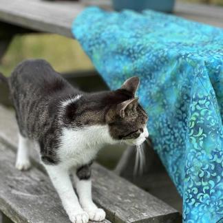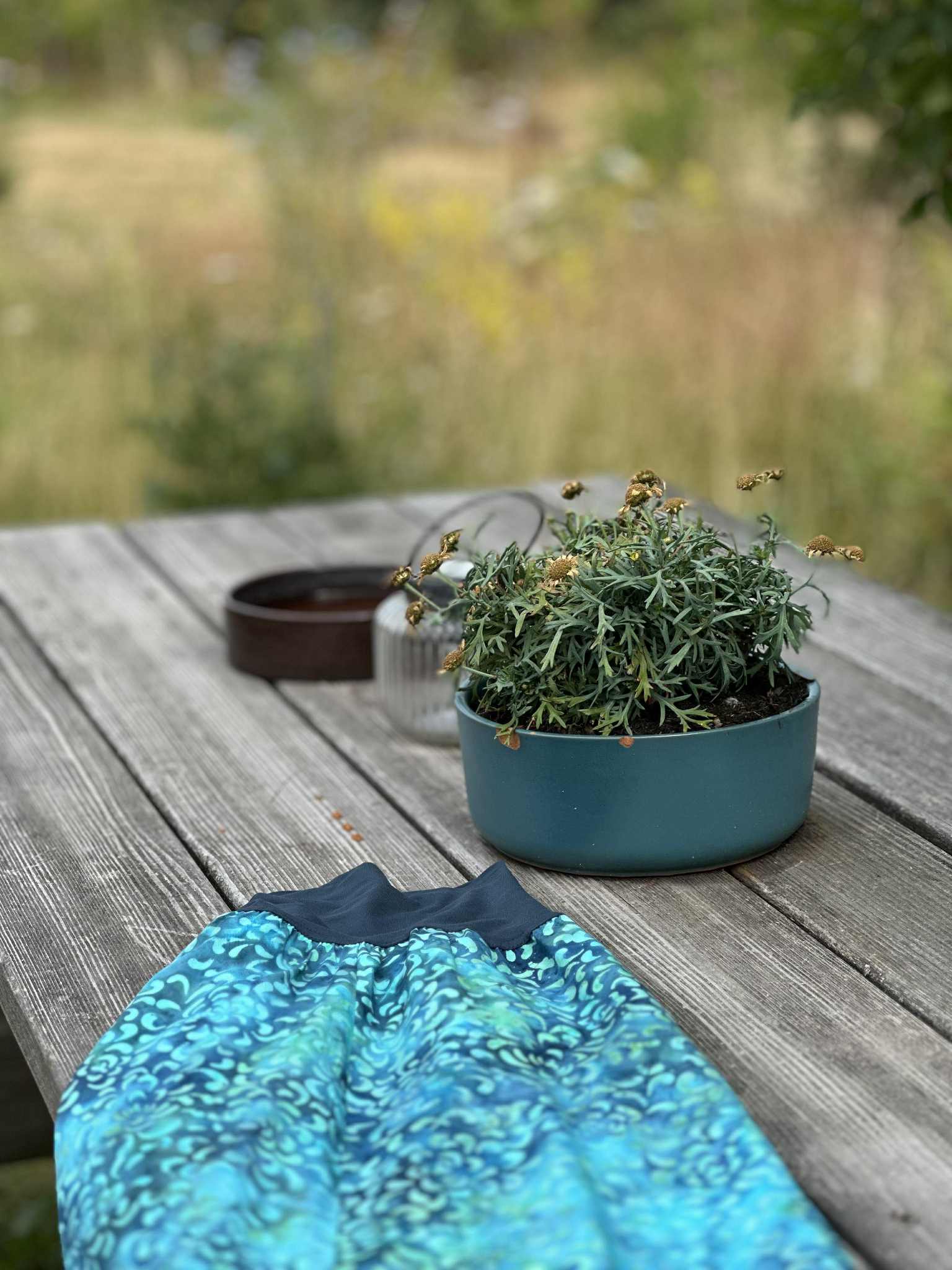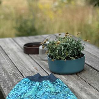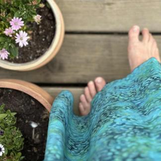 Materiál: 100 % viskóza, vosková batika. Lem: 90 % viskóza + 10% spandex.