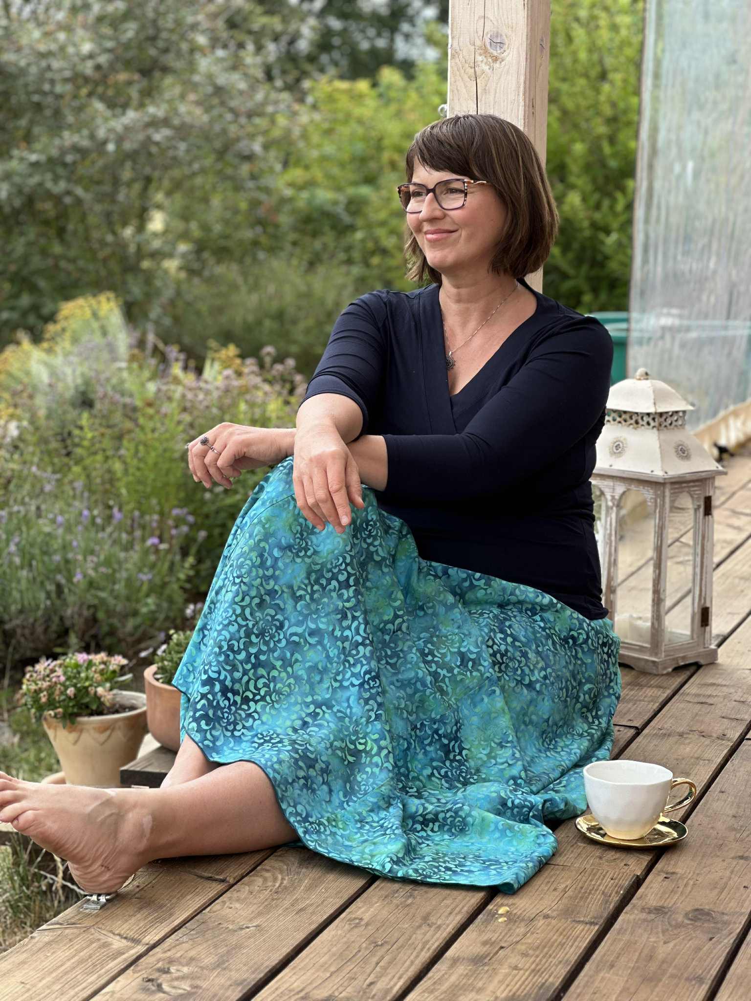Barva sukně: v zelených, petrolejových a tyrkysových odstínech.