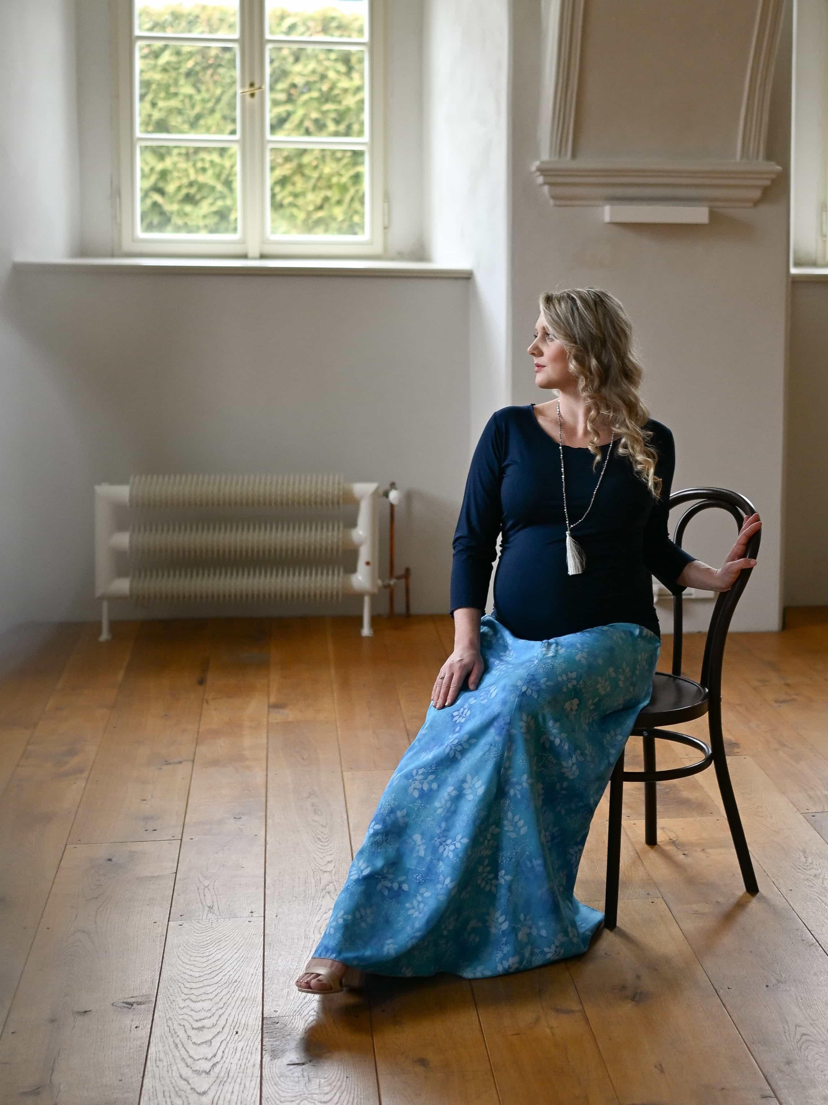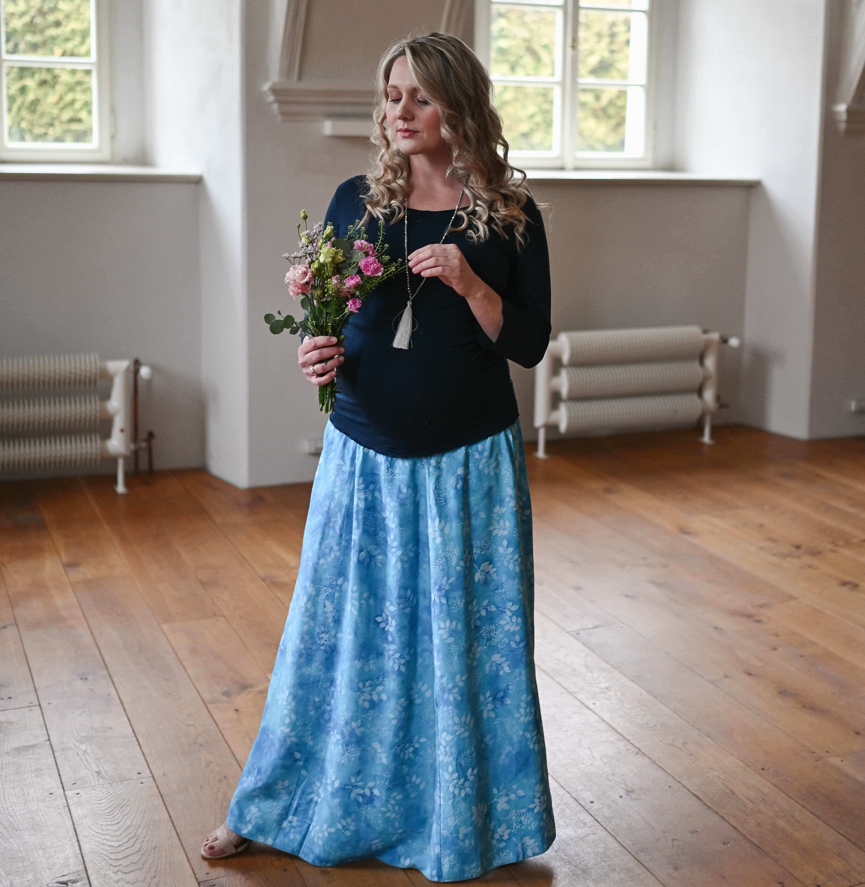 Vysoký elastický pas je nesmírně pohodlný na nošení. Sukně je vhodná i pro těhotné, pružný náplet v pase se krásně přizpůsobí bříšku a obejme ho po celém jeho obvodu. Ikonická Pacha sukně s délkou až na zem se krásně vlní při chůzi a vytváří ženskou siluetu.