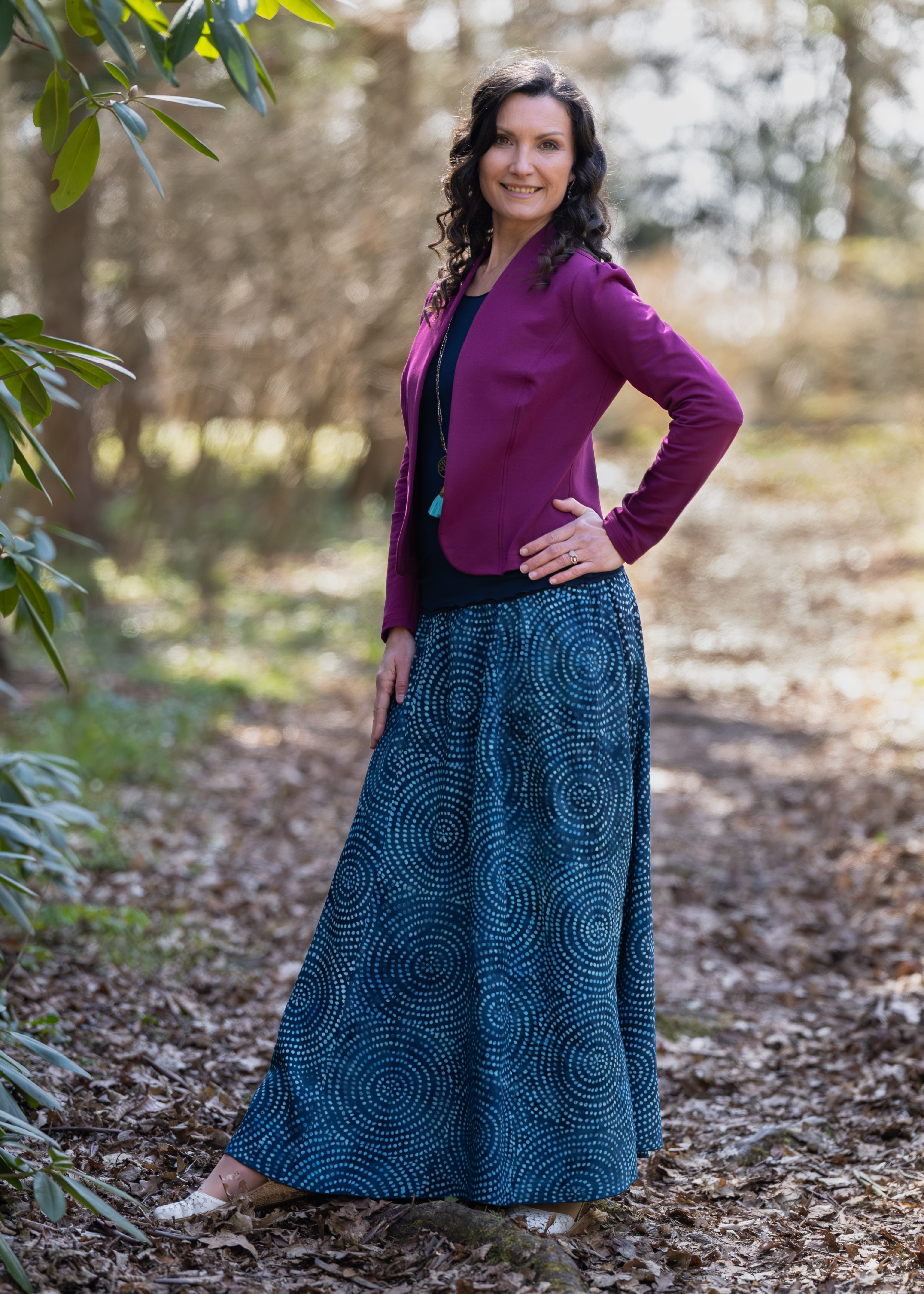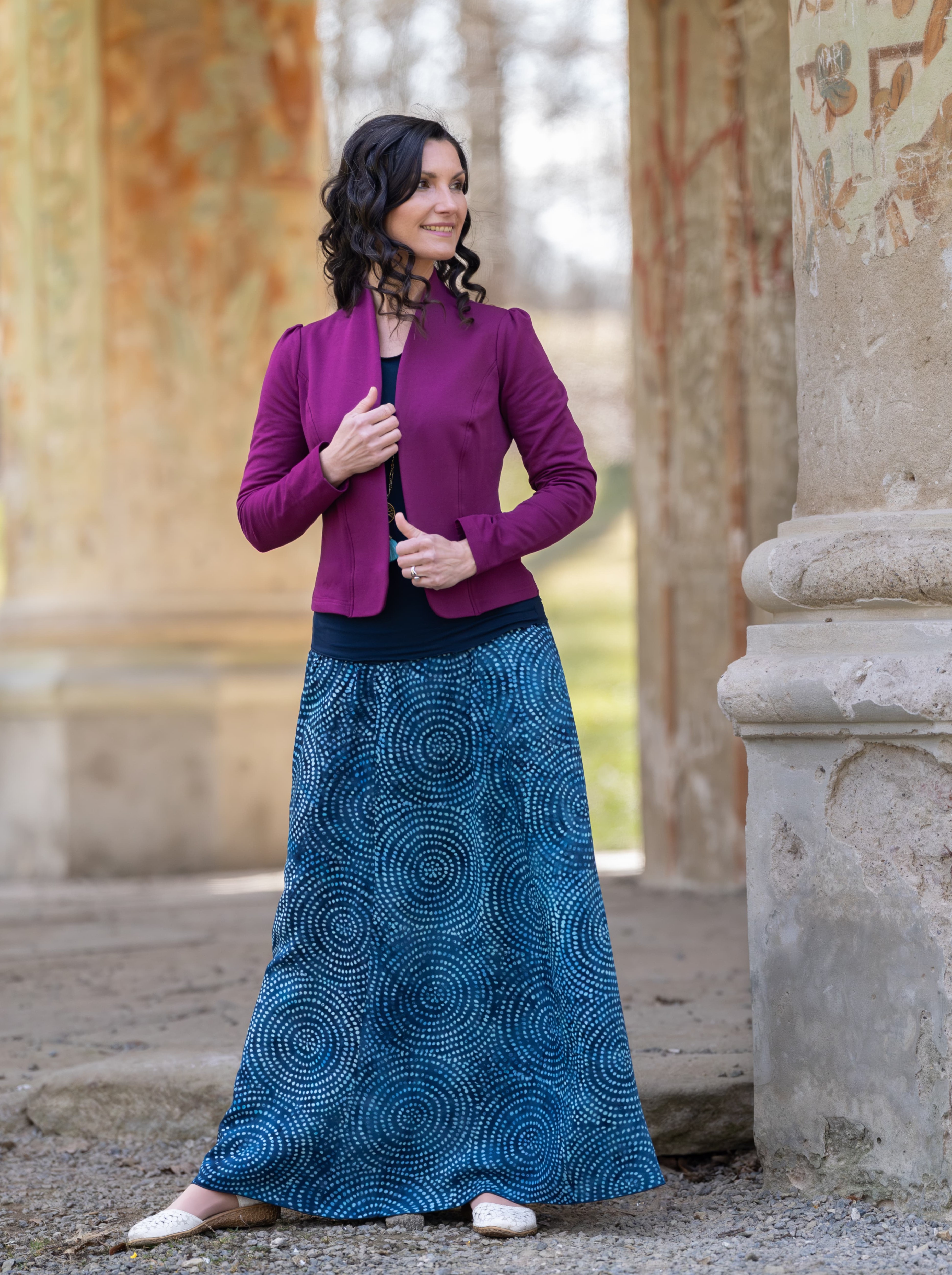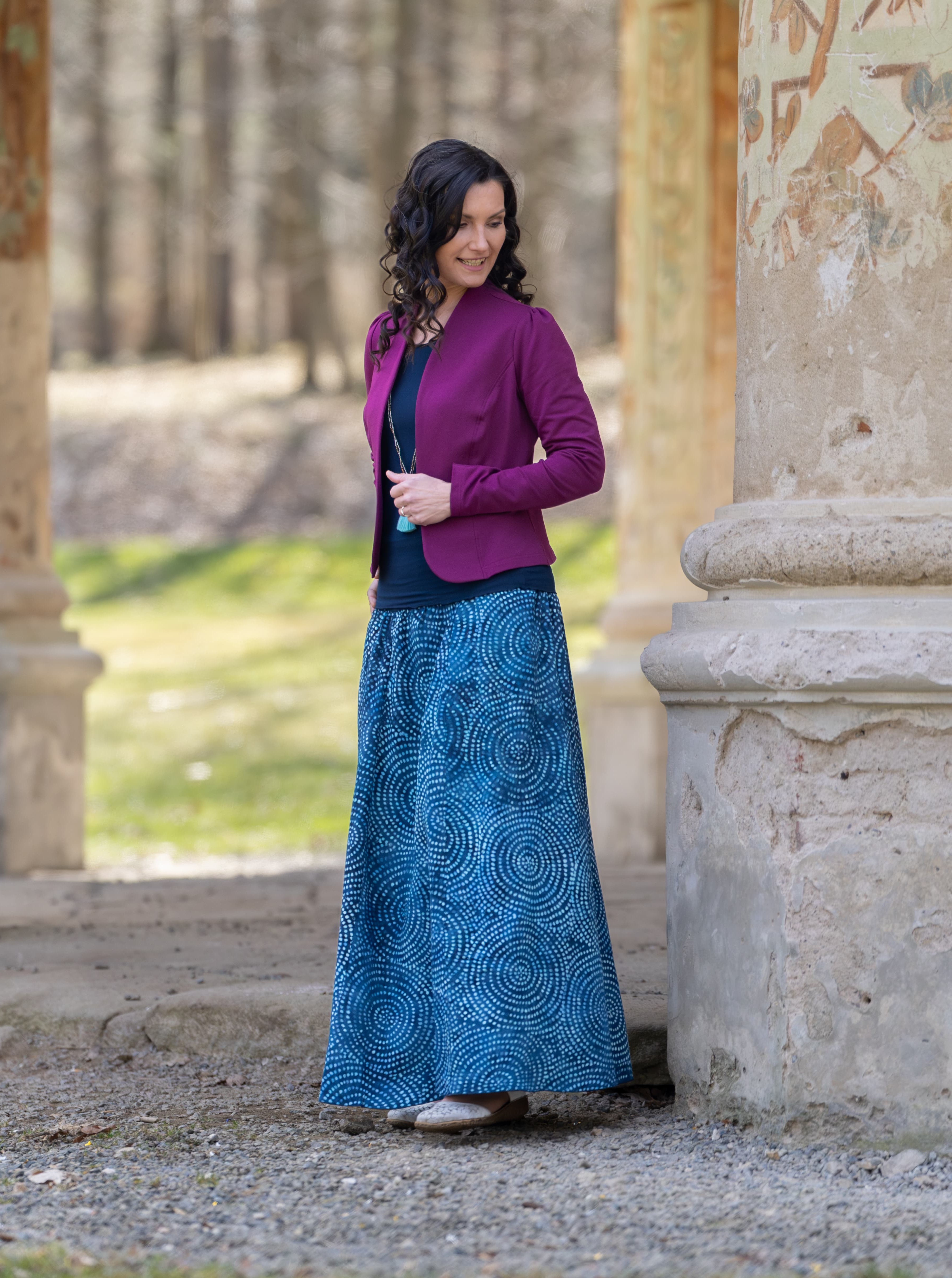 Vysoký elastický pas je nesmírně pohodlný na nošení. Sukně je vhodná i pro těhotné, pružný náplet v pase se krásně přizpůsobí bříšku a obejme ho po celém jeho obvodu. Ikonická Pacha sukně s délkou až na zem se krásně vlní při chůzi a vytváří ženskou siluetu.
