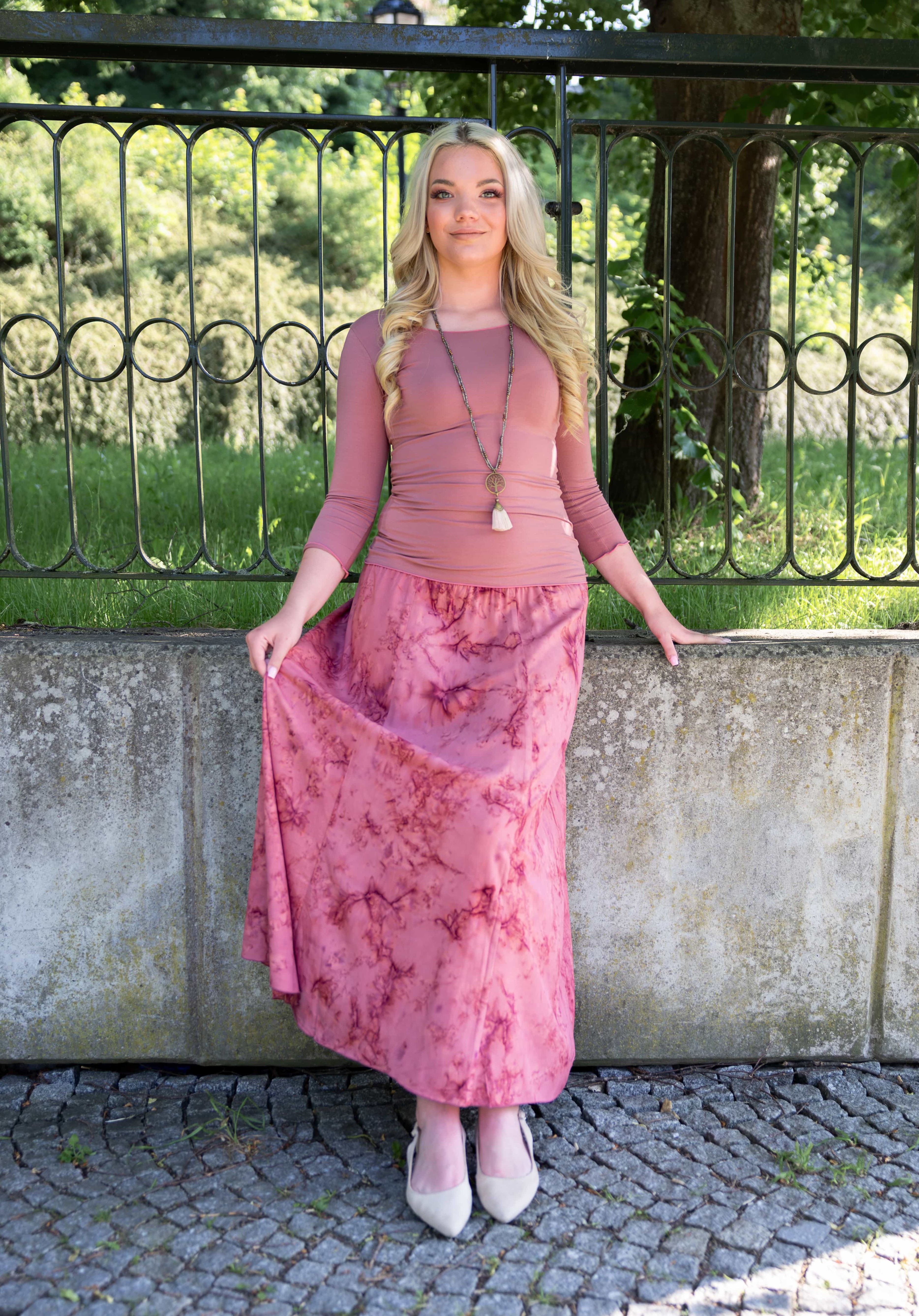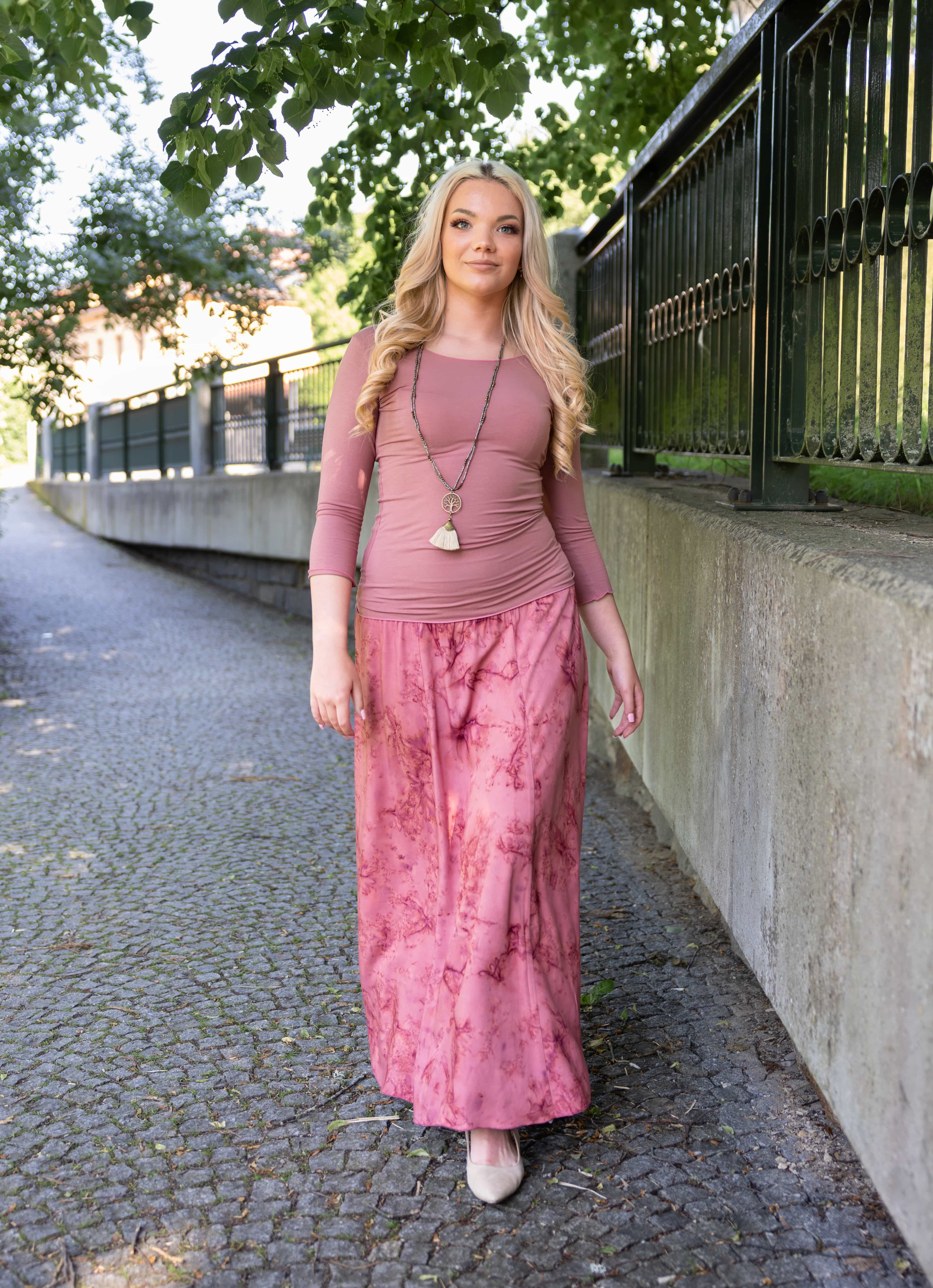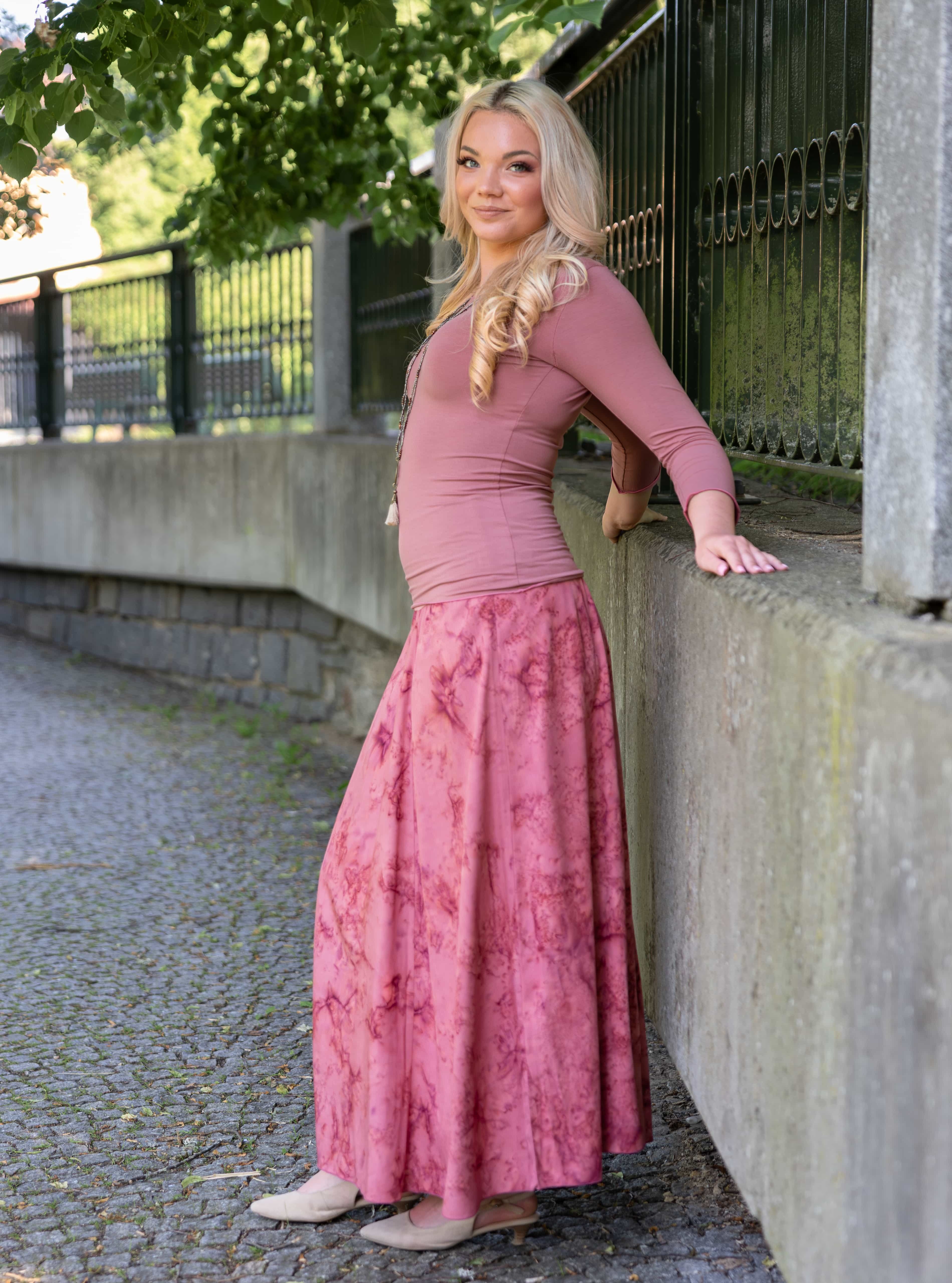 Vysoký elastický pas je nesmírně pohodlný na nošení. Sukně je vhodná i pro těhotné, pružný náplet v pase se krásně přizpůsobí bříšku a obejme ho po celém jeho obvodu. Ikonická Pacha sukně s délkou až na zem se krásně vlní při chůzi a vytváří ženskou siluetu.