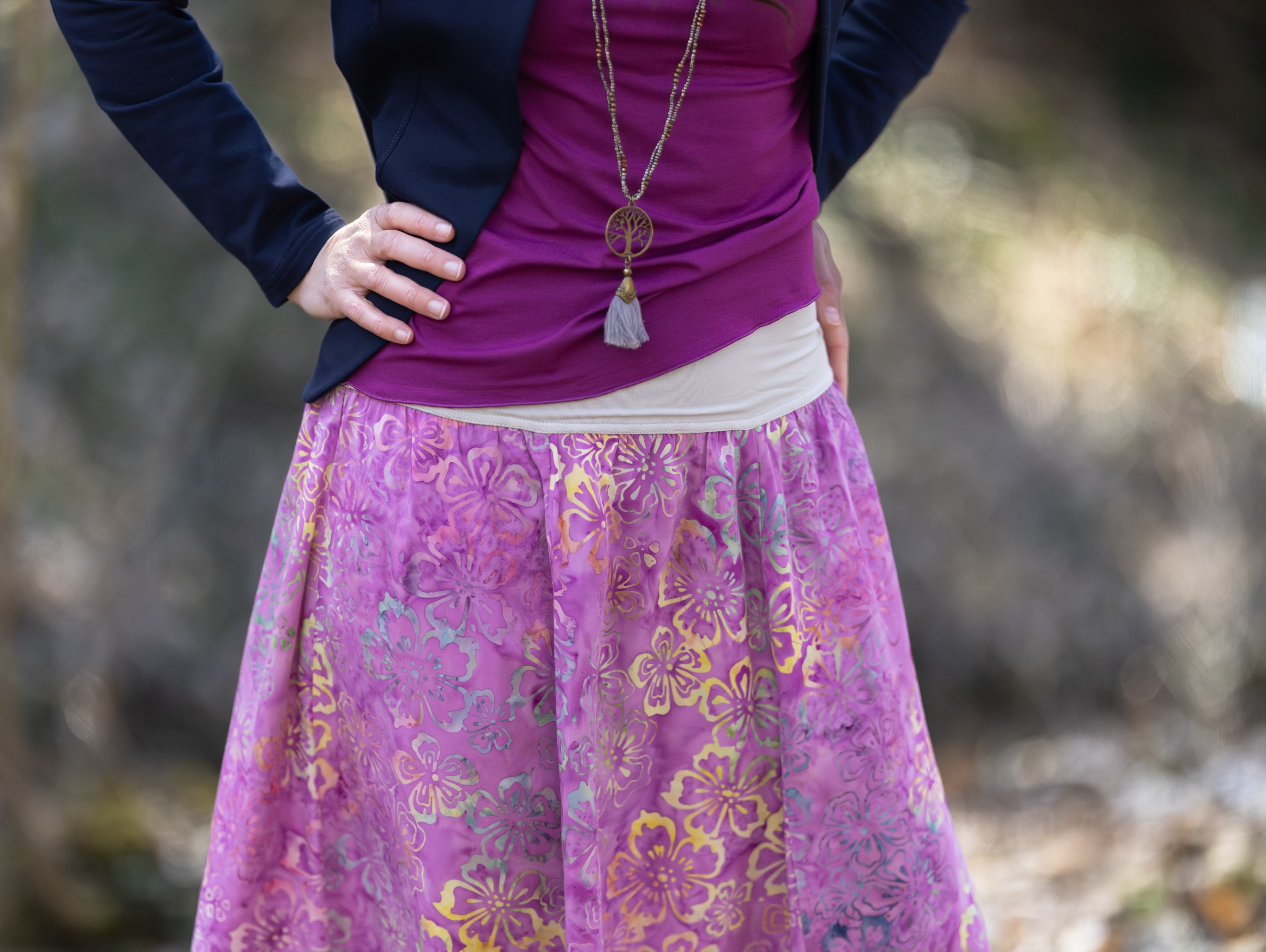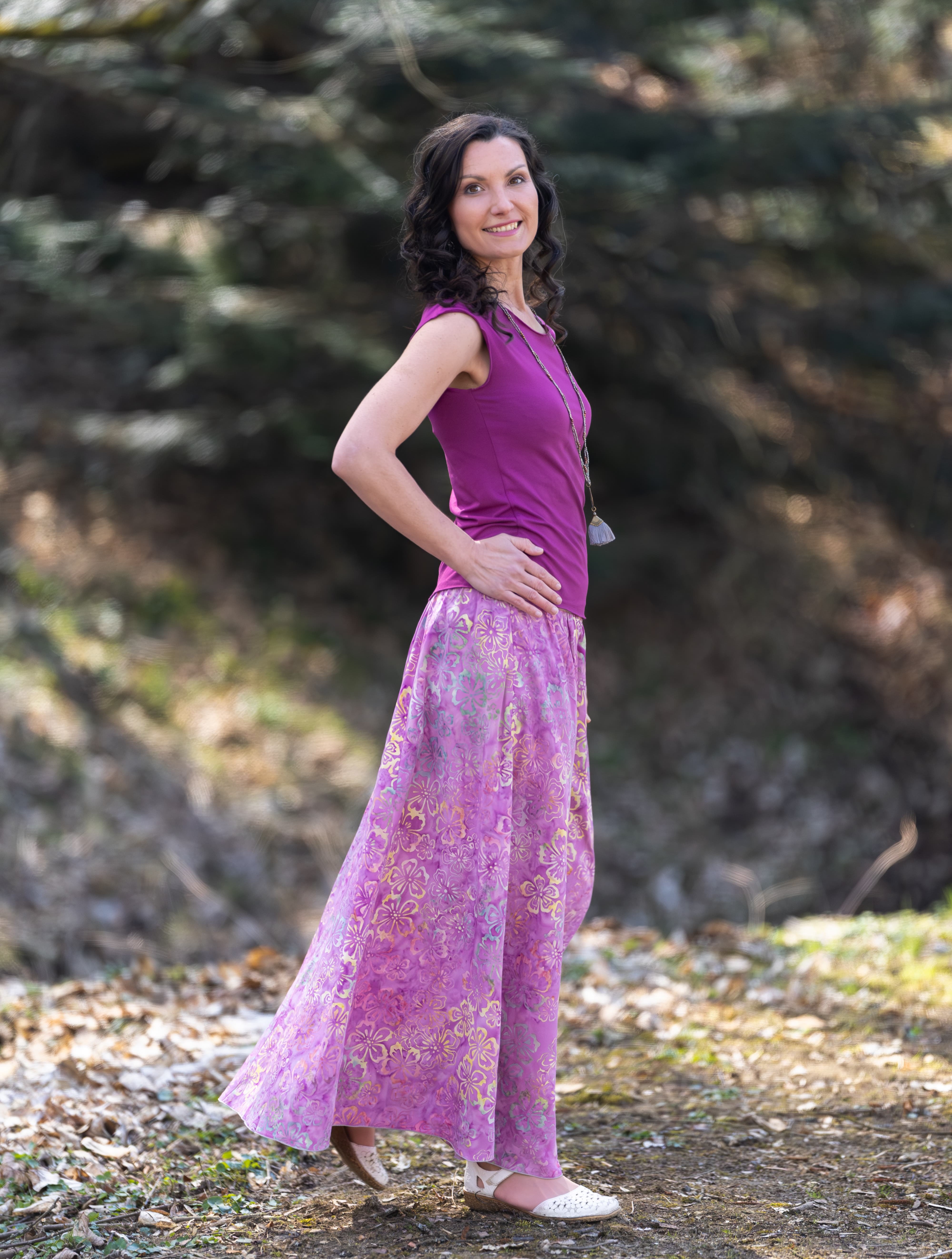 Vysoký elastický pas je nesmírně pohodlný na nošení. Sukně je vhodná i pro těhotné, pružný náplet v pase se krásně přizpůsobí bříšku a obejme ho po celém jeho obvodu. Ikonická Pacha sukně s délkou až na zem se krásně vlní při chůzi a vytváří ženskou siluetu.