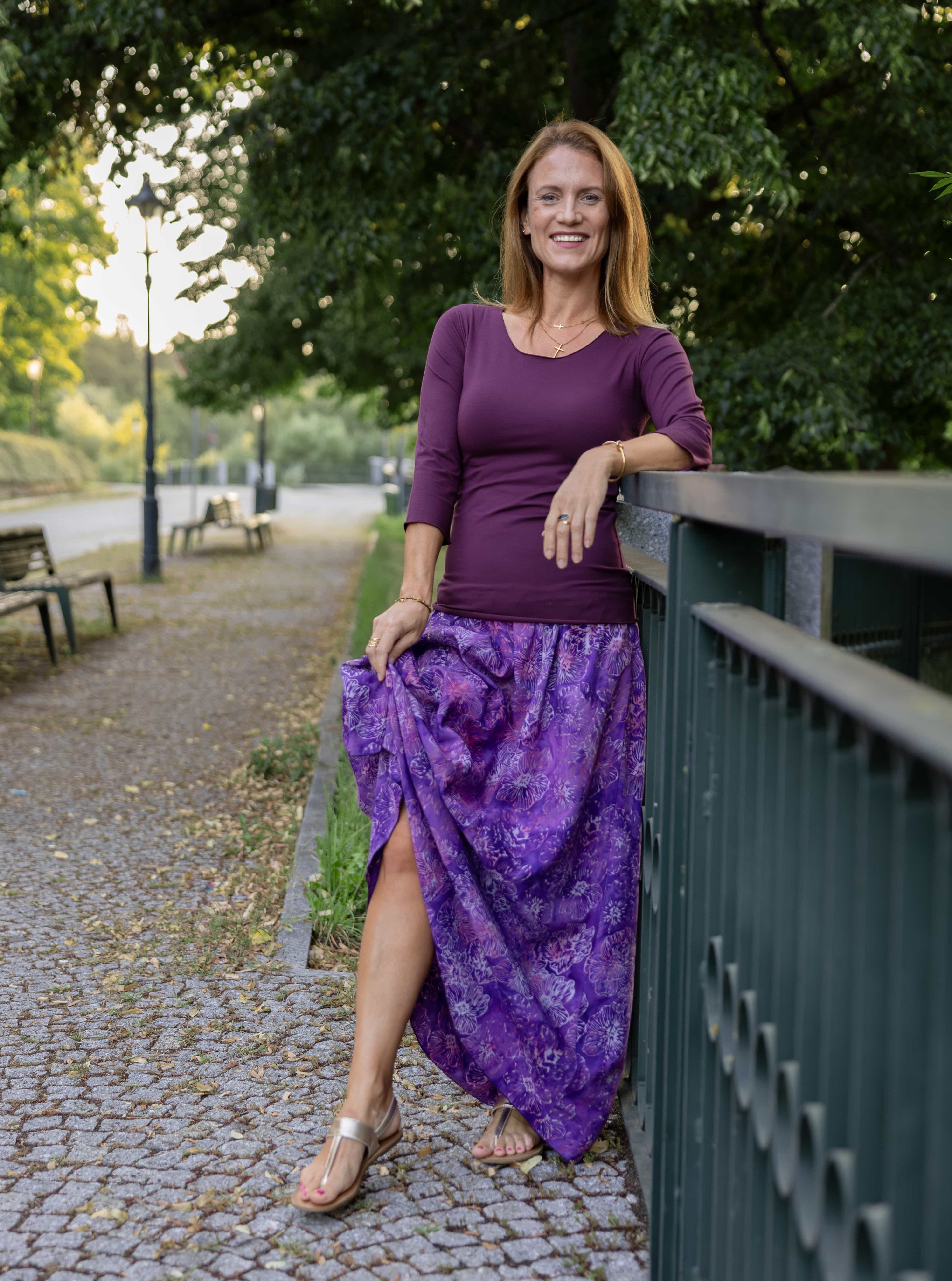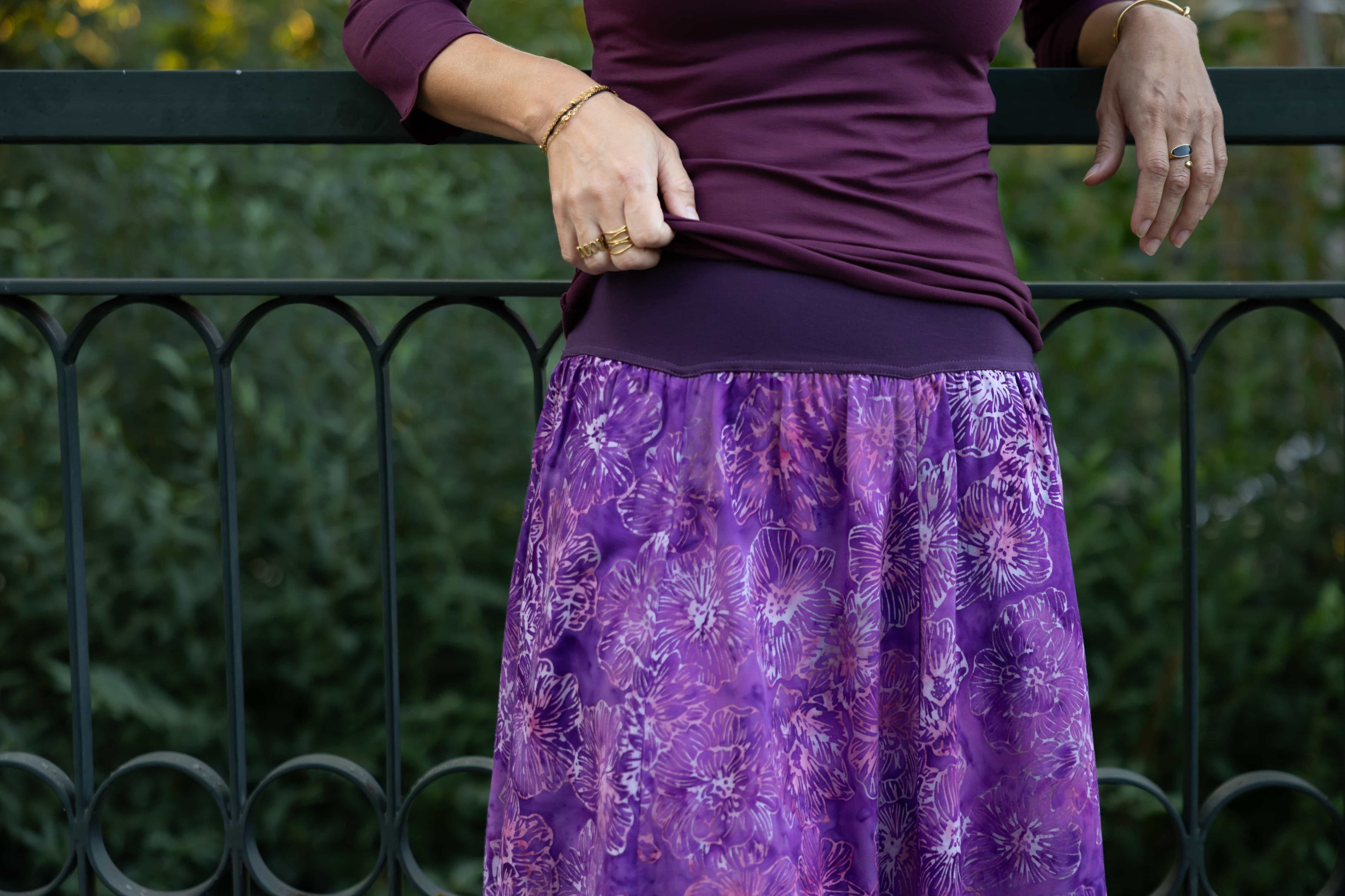Vysoký elastický pas je nesmírně pohodlný na nošení. Sukně je vhodná i pro těhotné, pružný náplet v pase se krásně přizpůsobí bříšku a obejme ho po celém jeho obvodu. Ikonická Pacha sukně s délkou až na zem se krásně vlní při chůzi a vytváří ženskou siluetu.