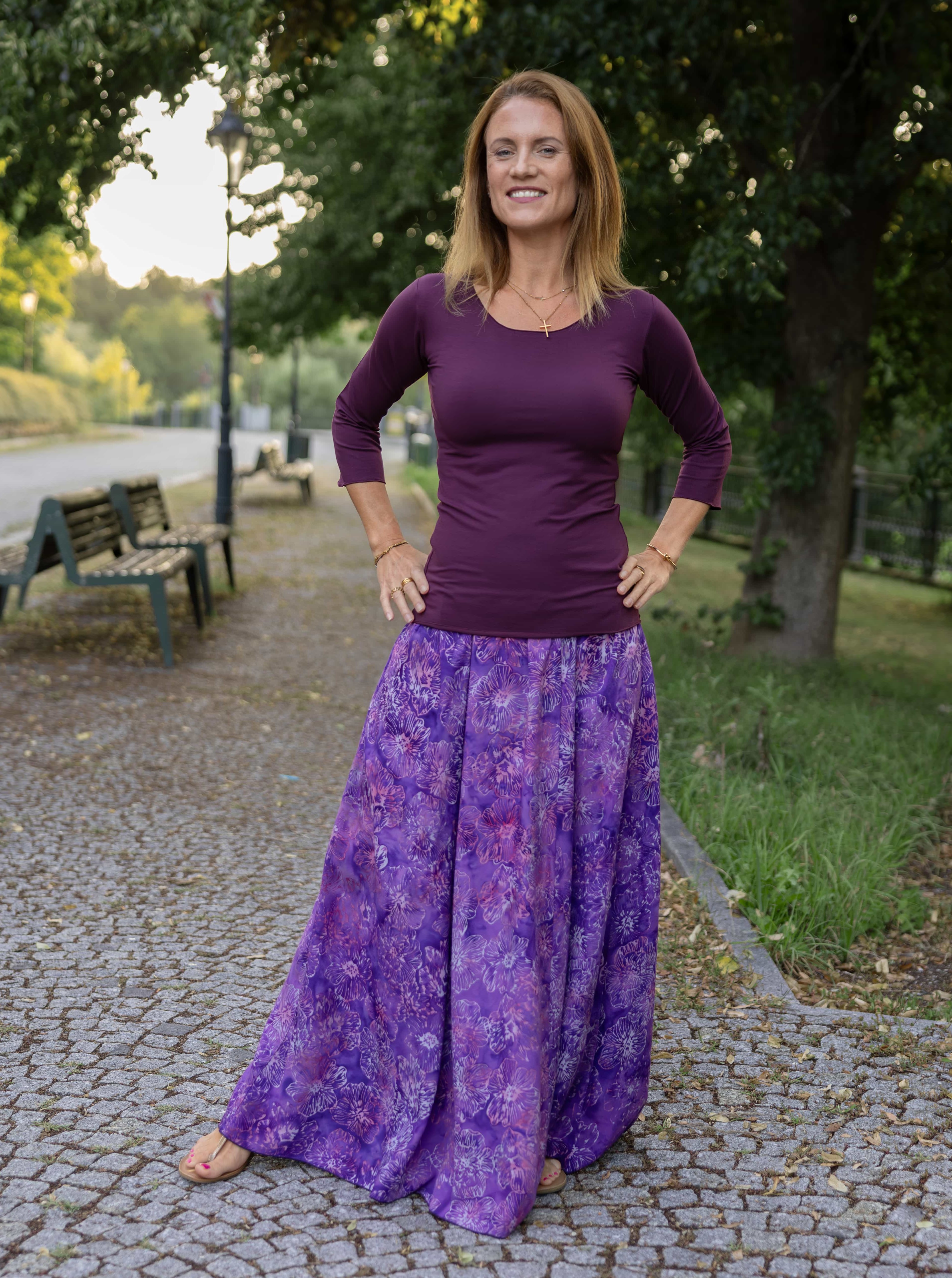 Maxi sukně Purple Poppy je skvělým kouskem do jakéhokoli šatníku. Elegantní vzhled vykouzlíte s podpatky a výrazným šperkem, nebo zvolte ležérní styl se sandály či balerínami a jednoduchým topem. V obou případech se budete cítit a vypadat božsky.
