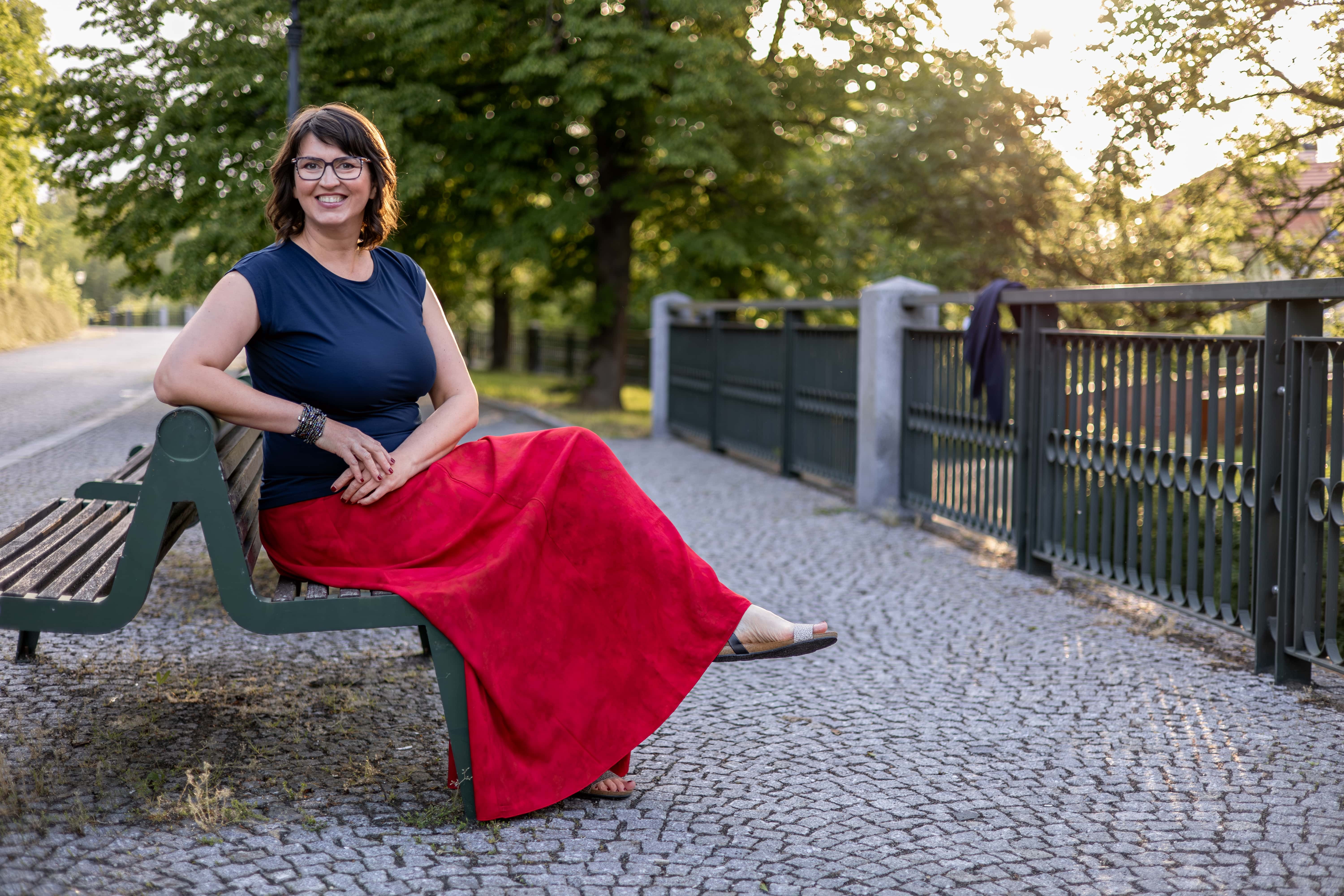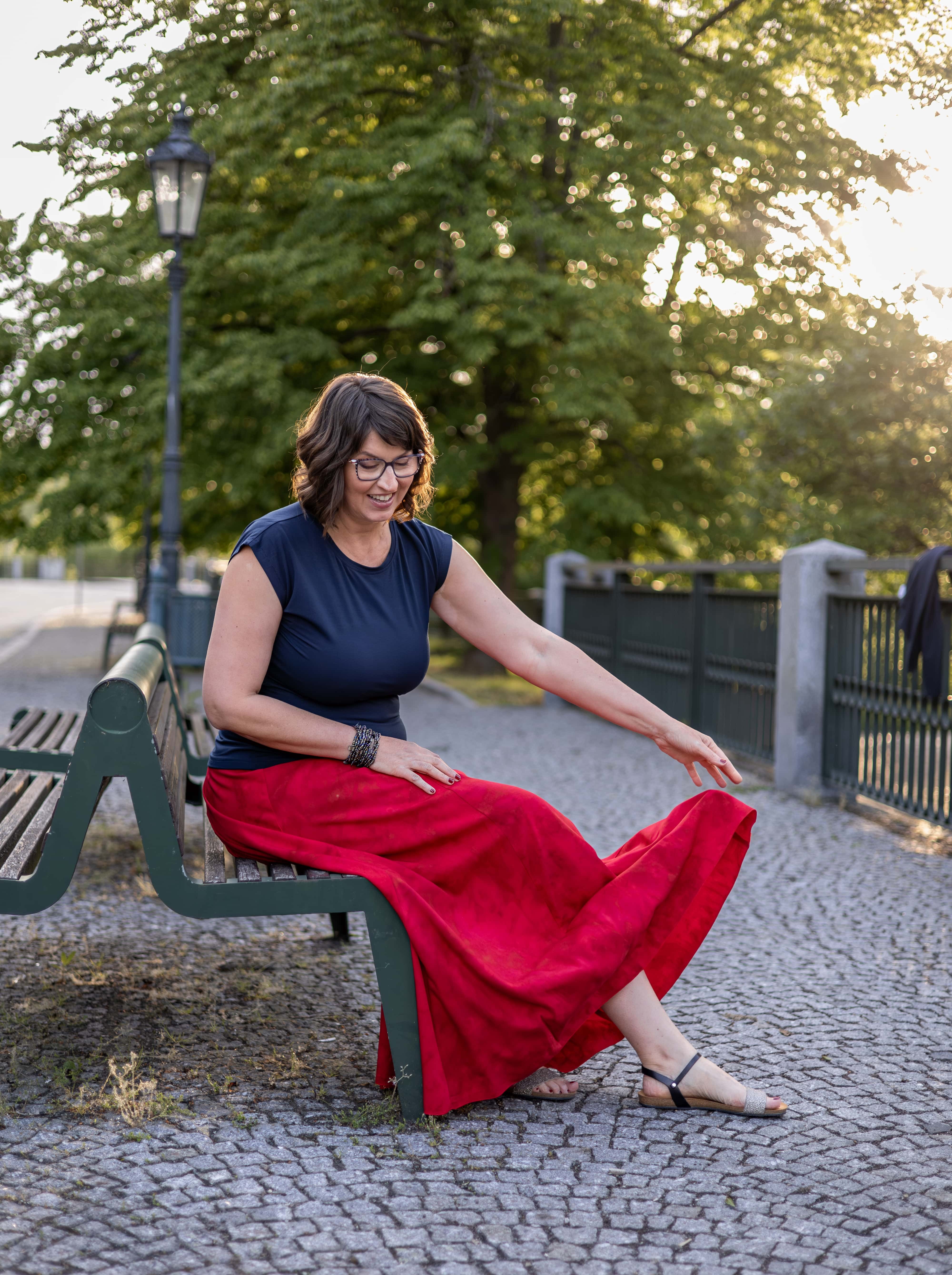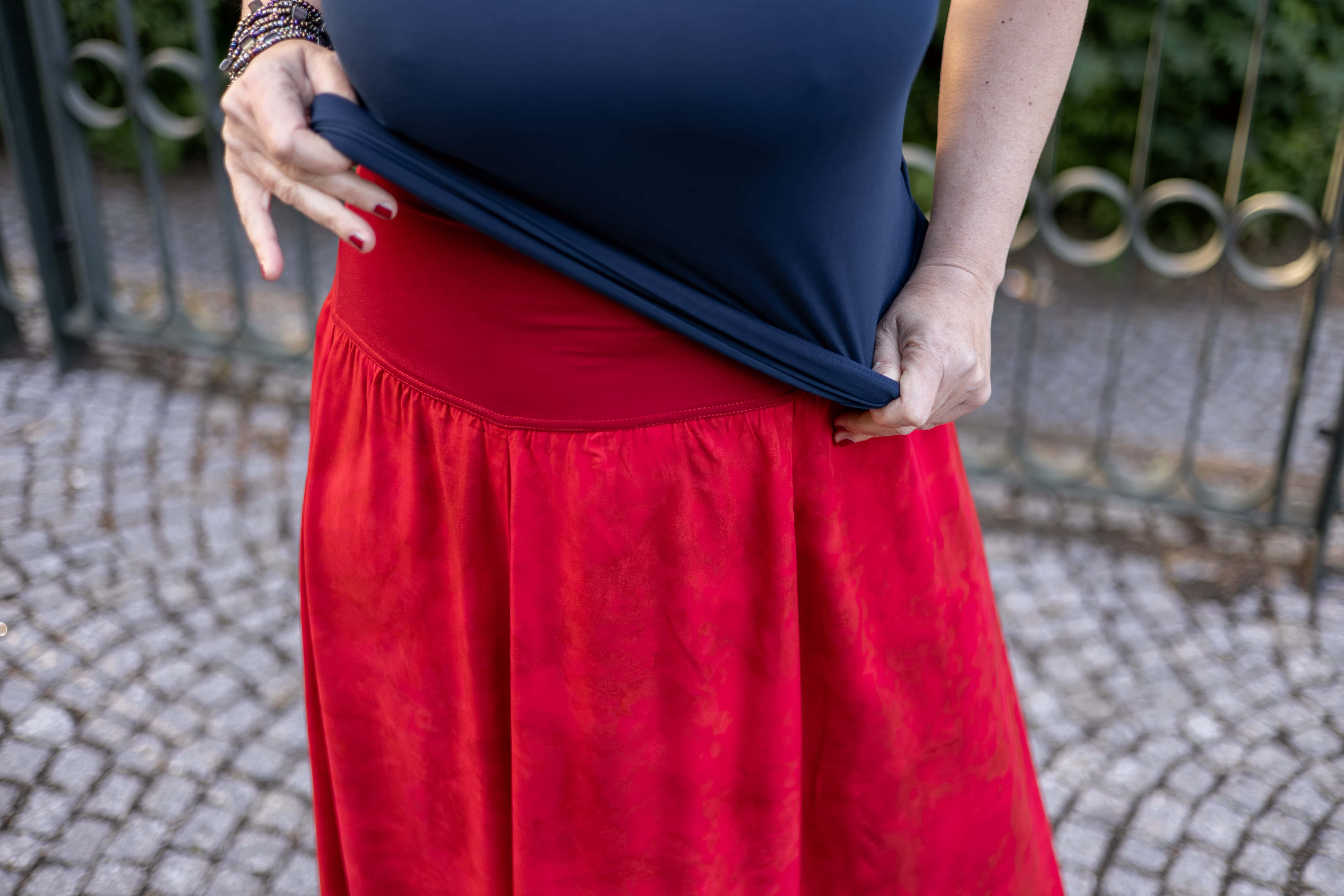 Barva sukně: zářivá červená