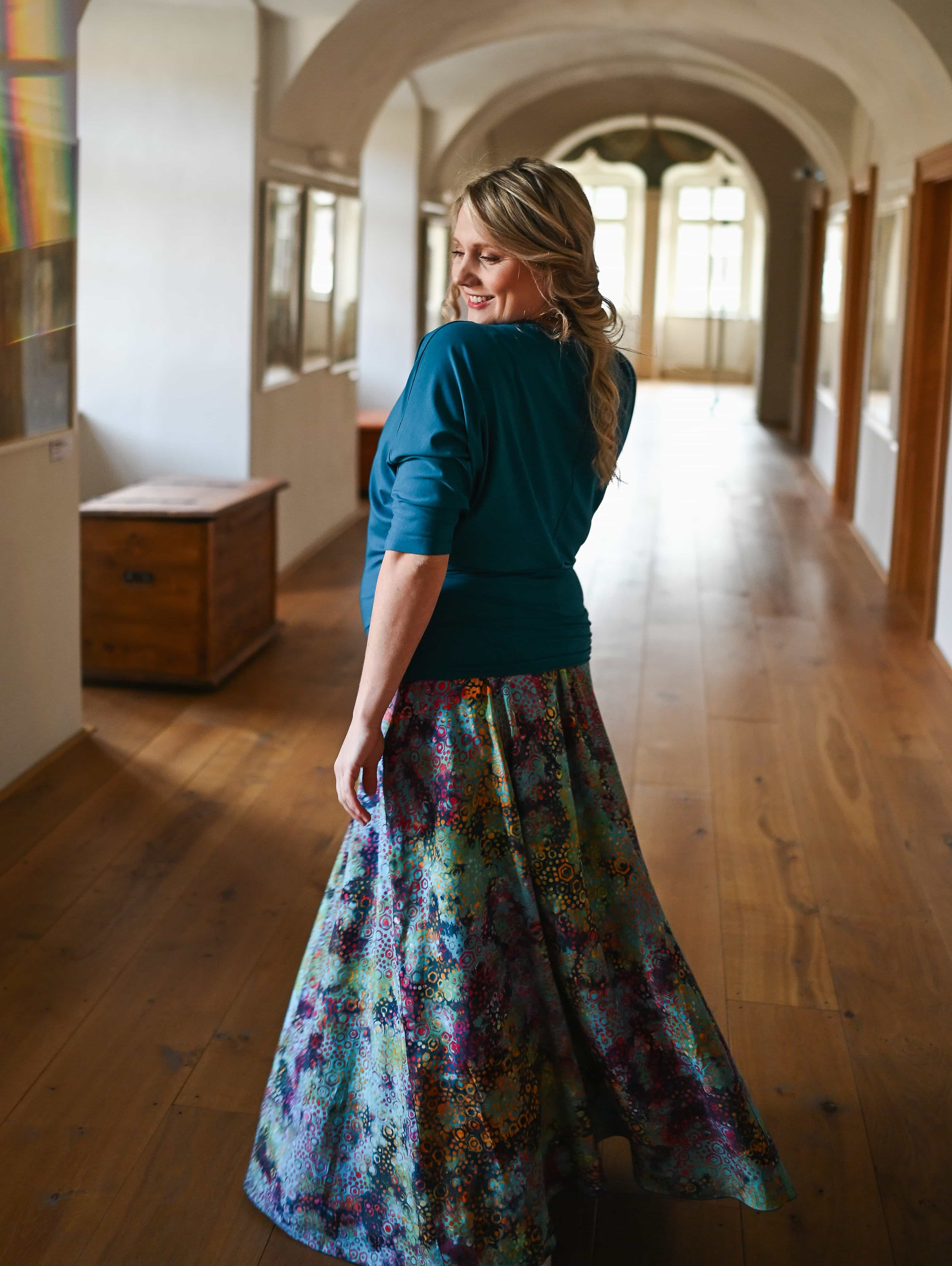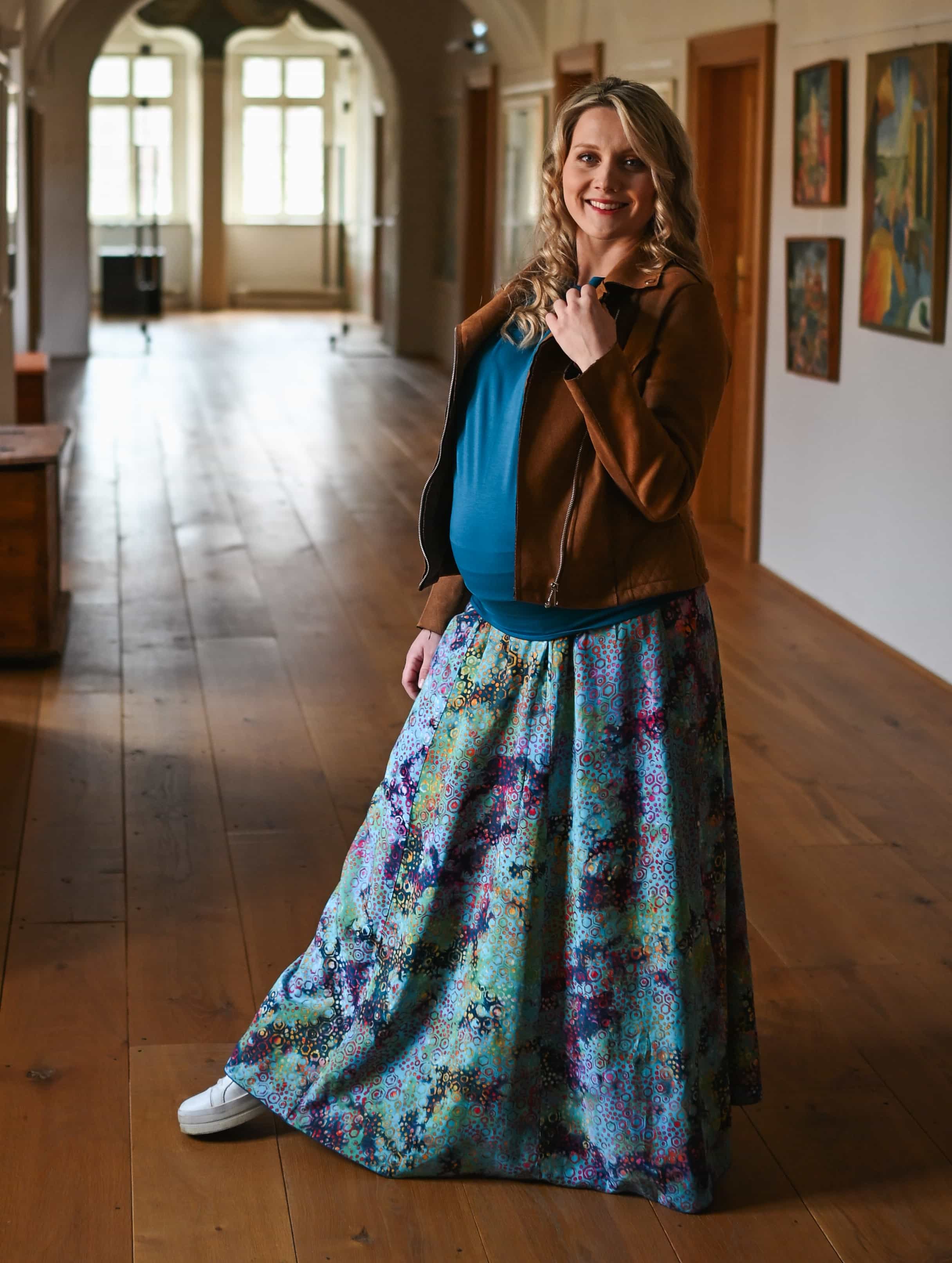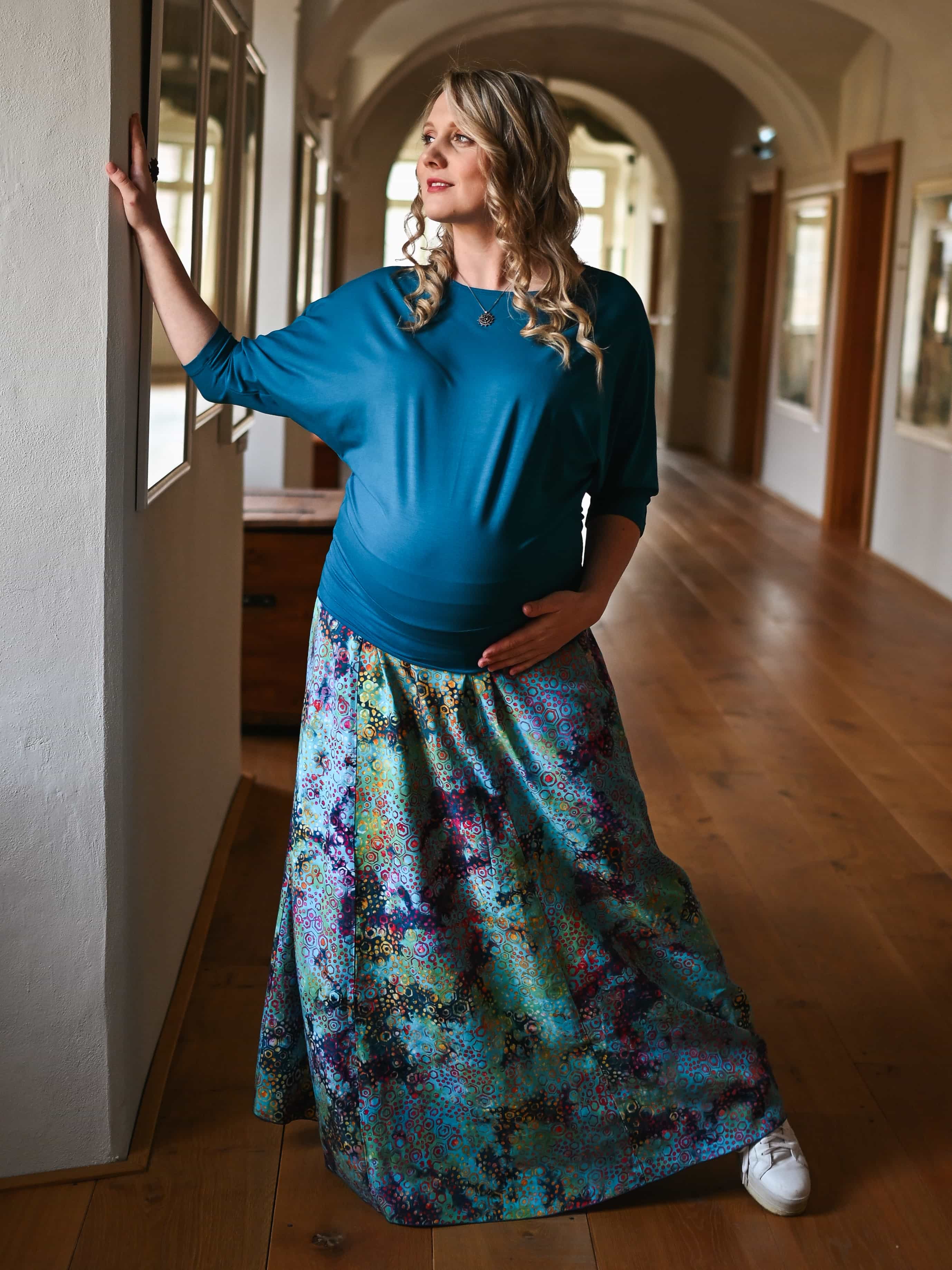 Vysoký elastický pas je nesmírně pohodlný na nošení. Sukně je vhodná i pro těhotné, pružný náplet v pase se krásně přizpůsobí bříšku a obejme ho po celém jeho obvodu. Ikonická Pacha sukně s délkou až na zem se krásně vlní při chůzi a vytváří ženskou siluetu.