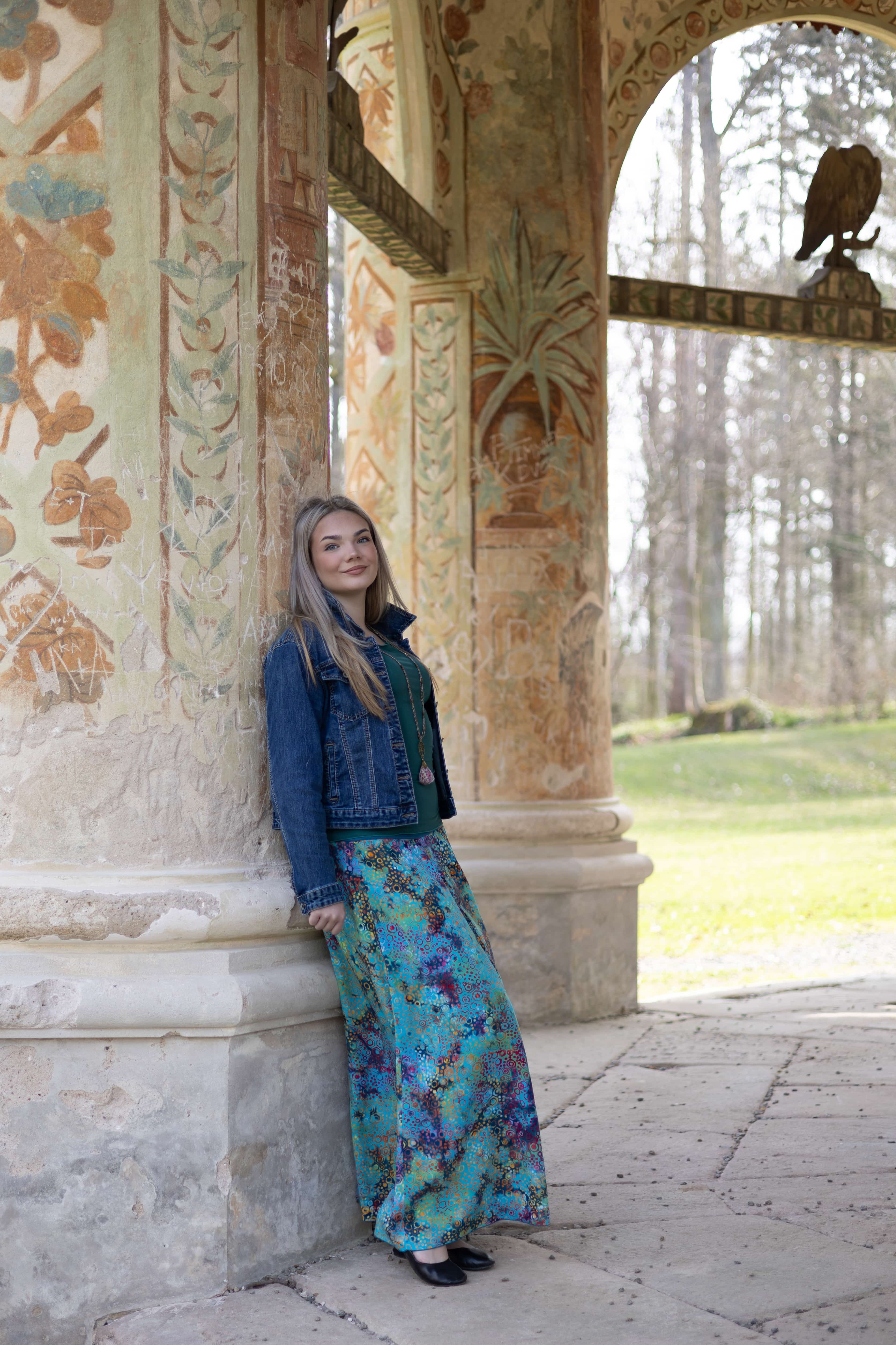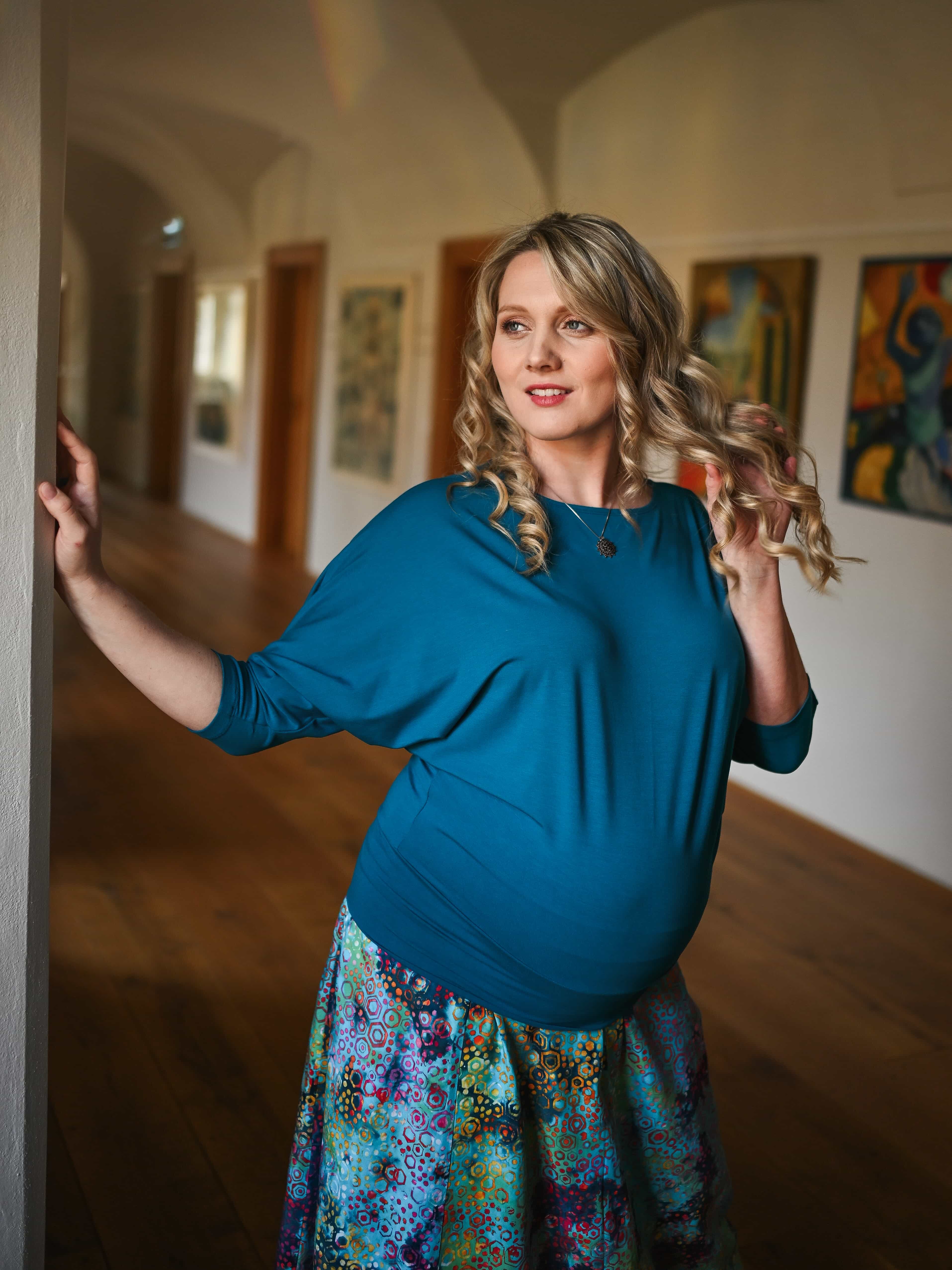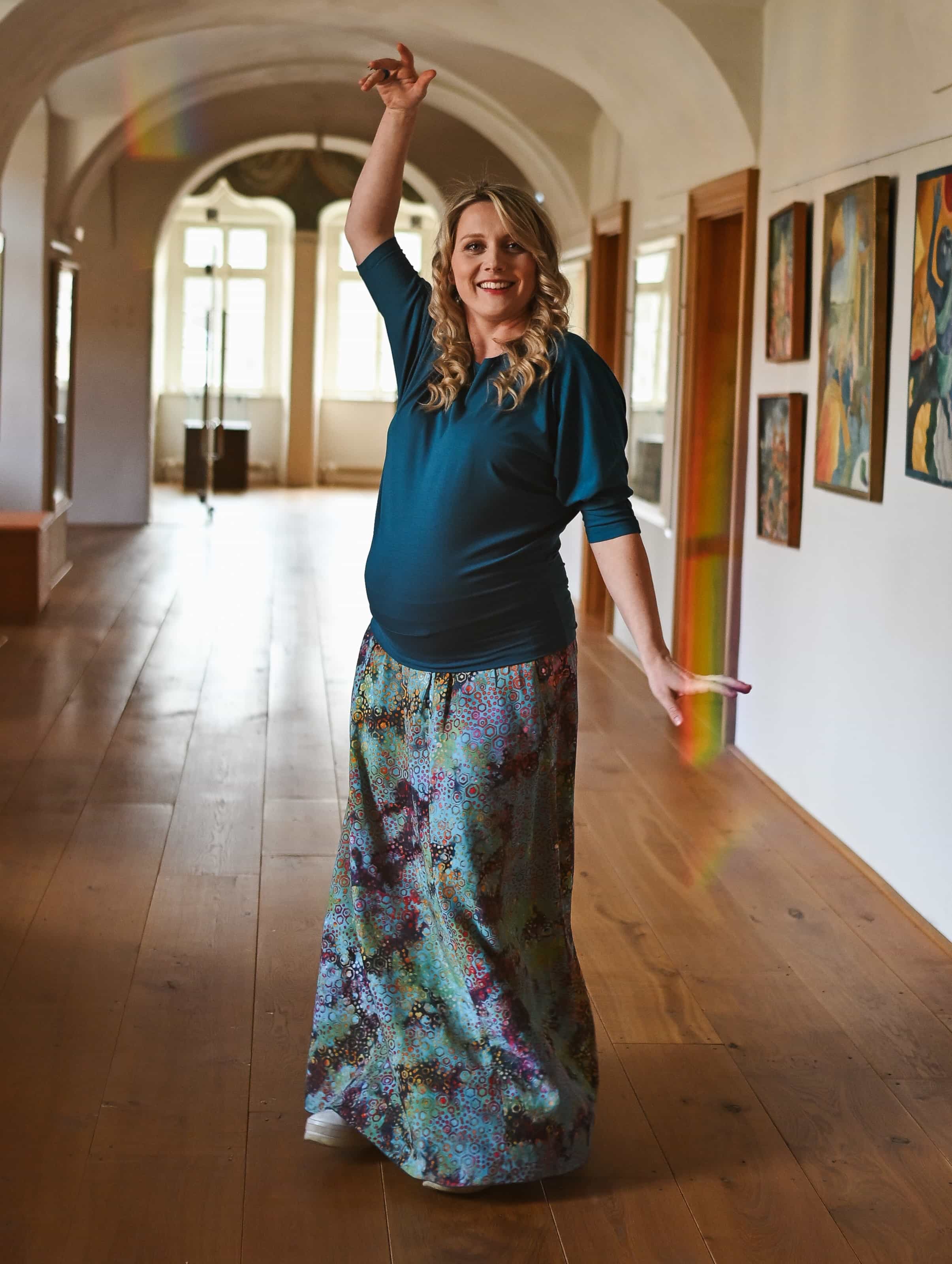 Vysoký elastický pas je nesmírně pohodlný na nošení. Sukně je vhodná i pro těhotné, pružný náplet v pase se krásně přizpůsobí bříšku a obejme ho po celém jeho obvodu. Ikonická Pacha sukně s délkou až na zem se krásně vlní při chůzi a vytváří ženskou siluetu.