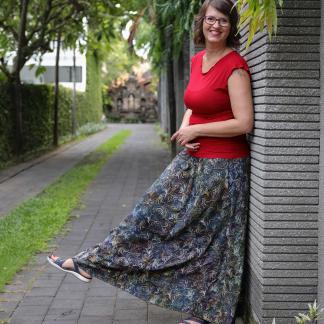 Vysoký elastický pas je nesmírně pohodlný na nošení. Sukně je vhodná i pro těhotné, pružný náplet v pase se krásně přizpůsobí bříšku a obejme ho po celém jeho obvodu. Ikonická Pacha sukně s délkou až na zem se krásně vlní při chůzi a vytváří ženskou siluetu.