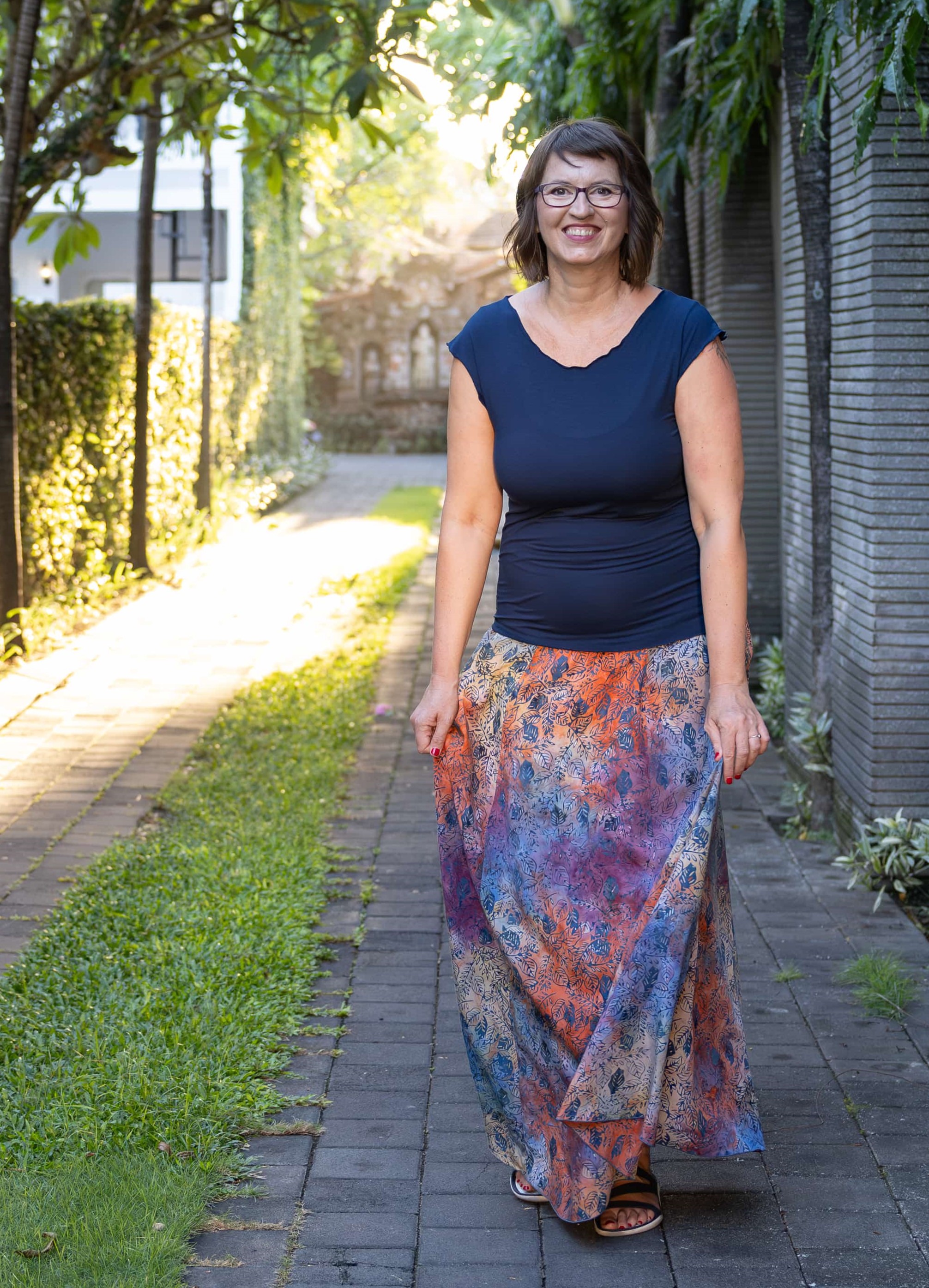 Vysoký elastický pas je nesmírně pohodlný na nošení. Sukně je vhodná i pro těhotné, pružný náplet v pase se krásně přizpůsobí bříšku a obejme ho po celém jeho obvodu. Ikonická Pacha sukně s délkou až na zem se krásně vlní při chůzi a vytváří ženskou siluetu.