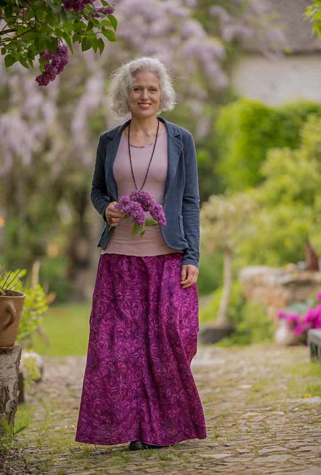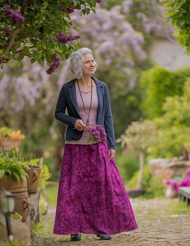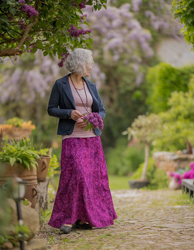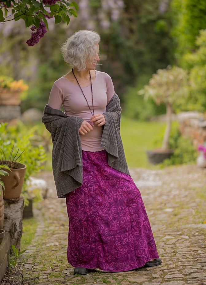 Vysoký elastický pas je nesmírně pohodlný na nošení. Sukně je vhodná i pro těhotné, pružný náplet v pase se krásně přizpůsobí bříšku a obejme ho po celém jeho obvodu. Ikonická Pacha sukně s délkou až na zem se krásně vlní při chůzi a vytváří ženskou siluetu.