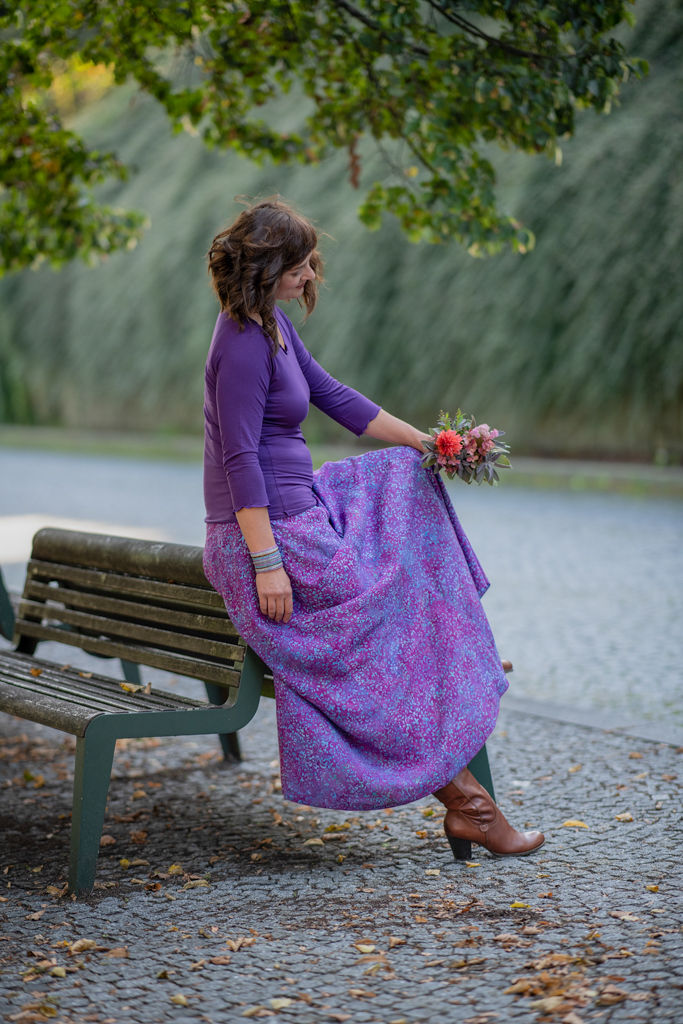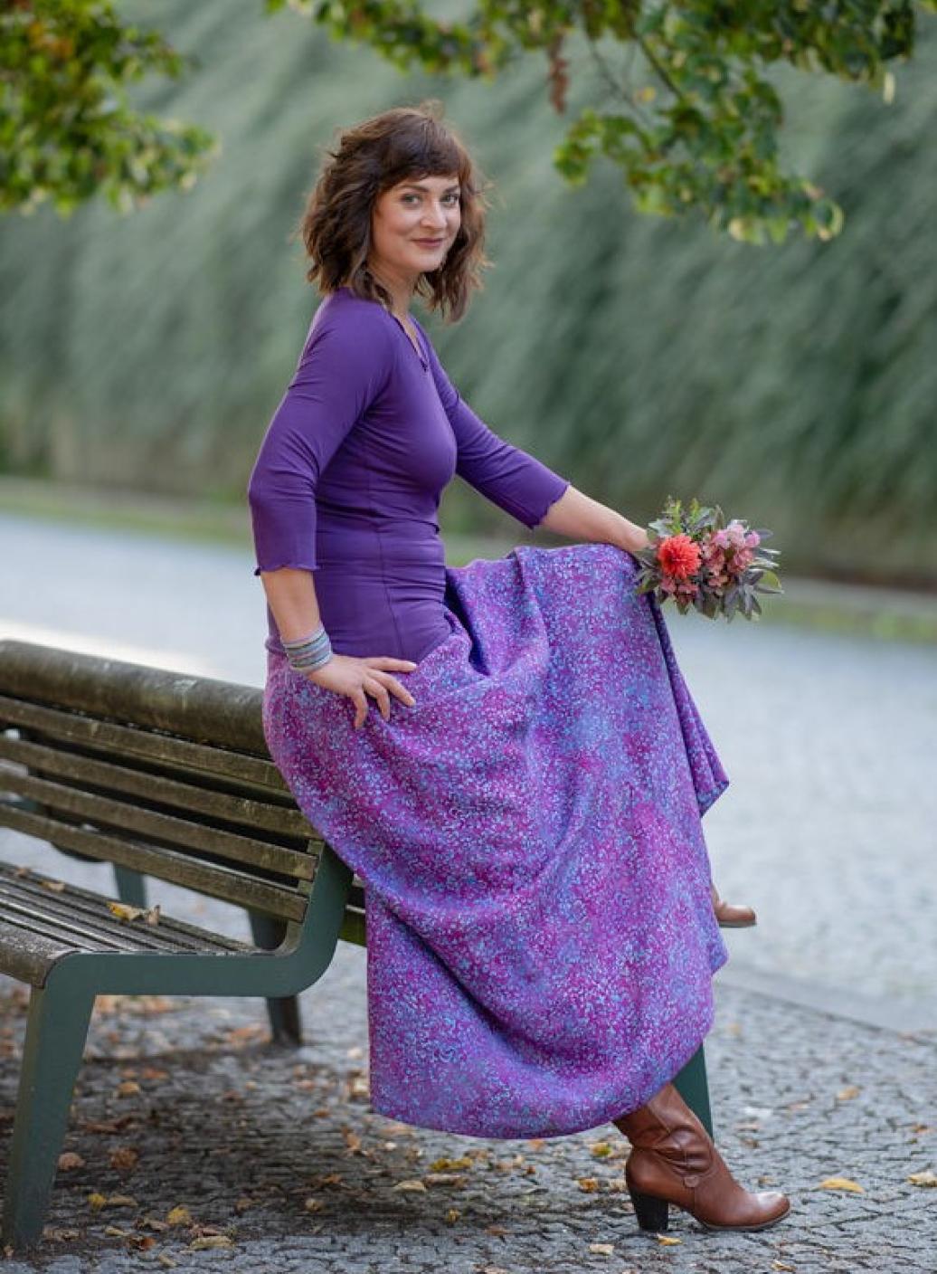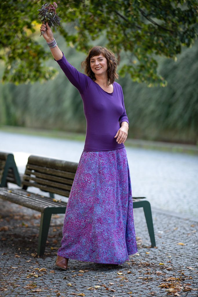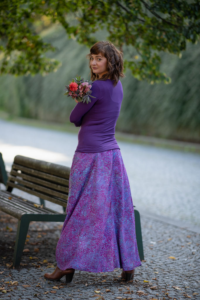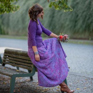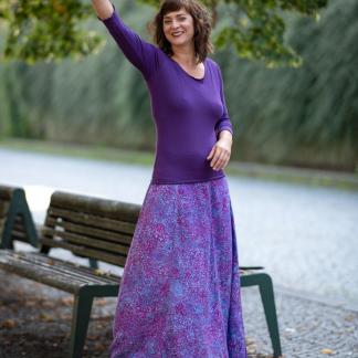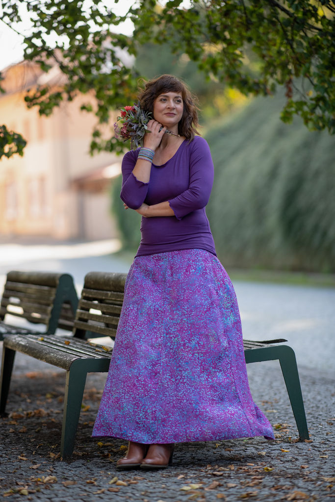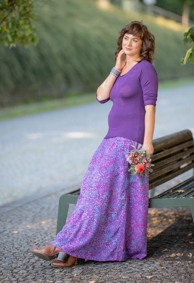 Vysoký elastický pas je nesmírně pohodlný na nošení. Sukně je vhodná i pro těhotné, pružný náplet v pase se krásně přizpůsobí bříšku a obejme ho po celém jeho obvodu. Ikonická Pacha sukně s délkou až na zem se krásně vlní při chůzi a vytváří ženskou siluetu.