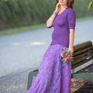 Barva sukně: fialková se světle modrým jemným vzorkem.