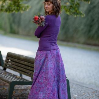 Připravte se na to, že touto úchvatnou, dlouhou sukní přitáhnete pozornost! Sukně je ušitá z lehké viskózové látky a pyšní se nádherným batikovým vzorem.