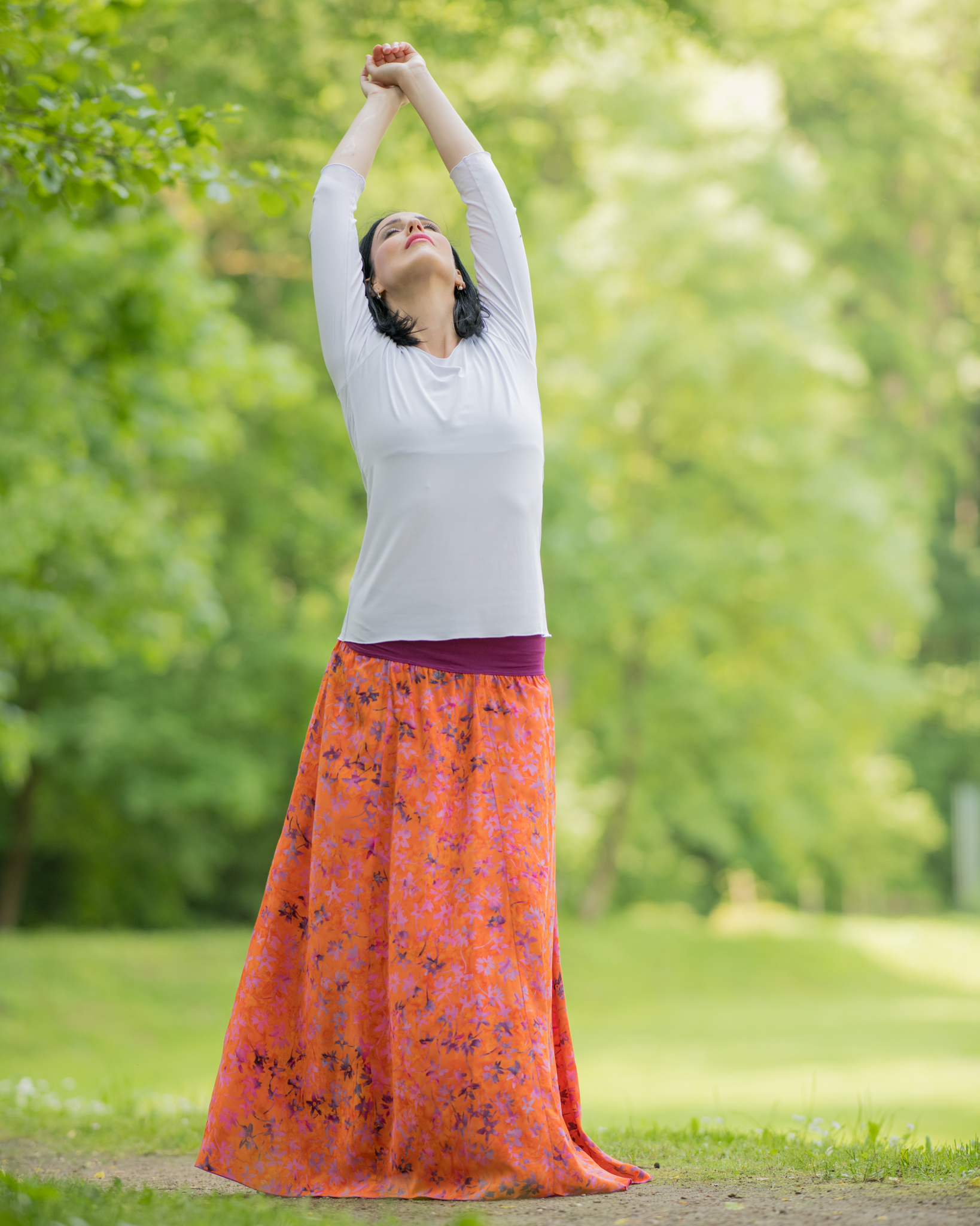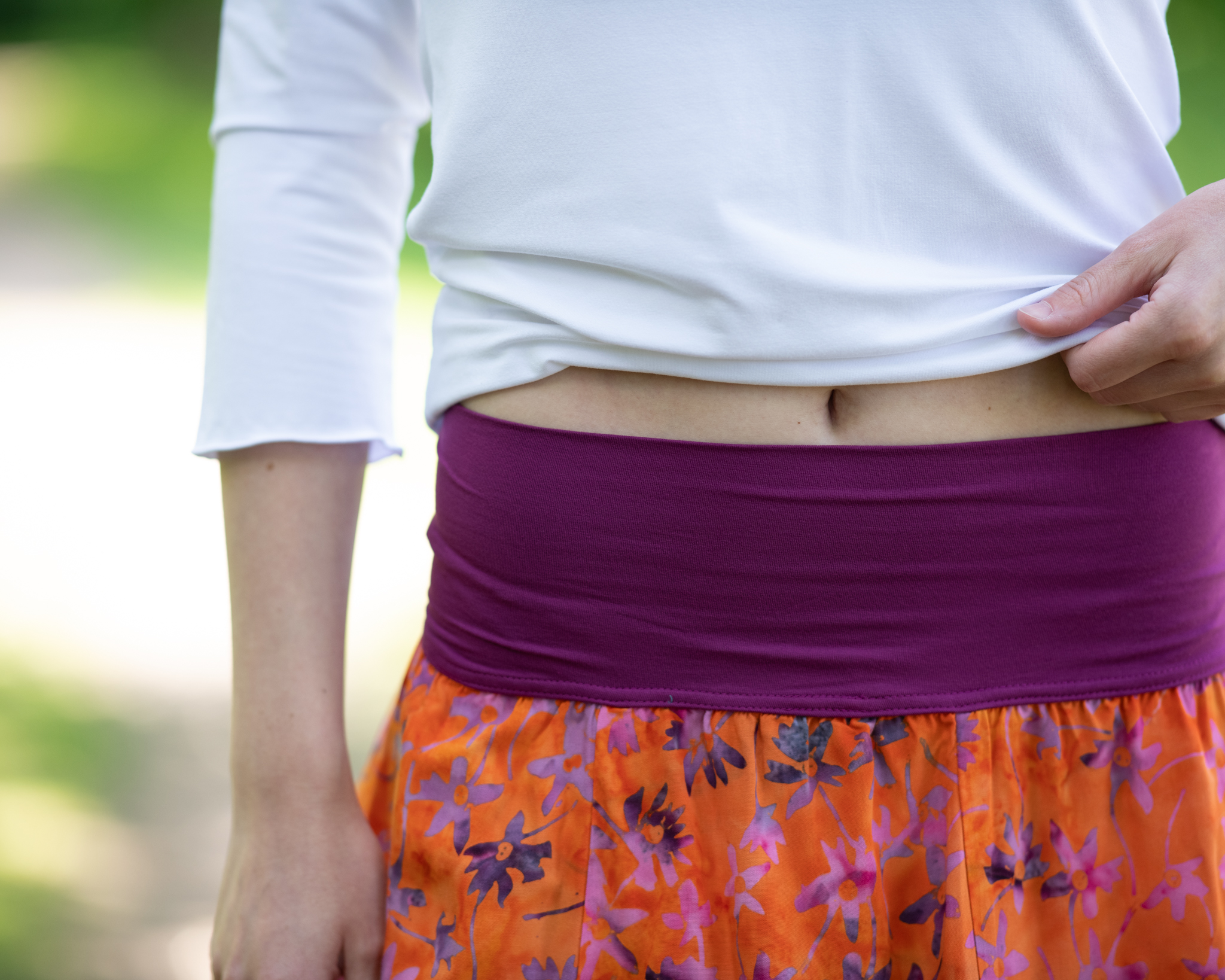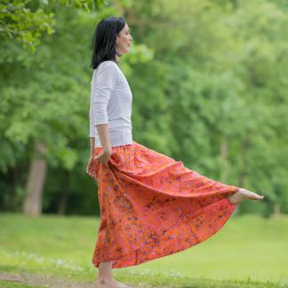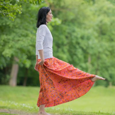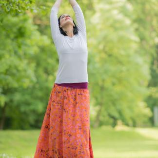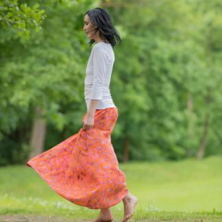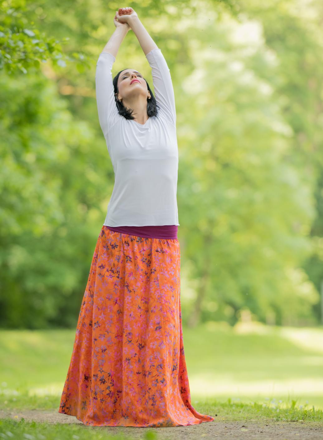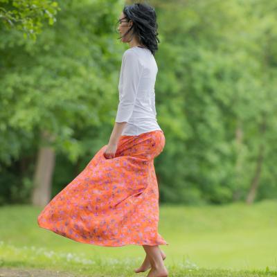 Vysoký elastický pas je nesmírně pohodlný na nošení. Sukně je vhodná i pro těhotné, pružný náplet v pase se krásně přizpůsobí bříšku a obejme ho po celém jeho obvodu. Ikonická Pacha sukně s délkou až na zem se krásně vlní při chůzi a vytváří ženskou siluetu.