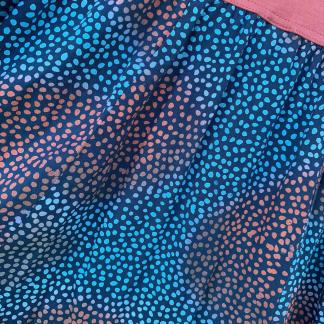 Materiál: 100 % viskóza, vosková batika. Lem: 90 % viskóza + 10% spandex.