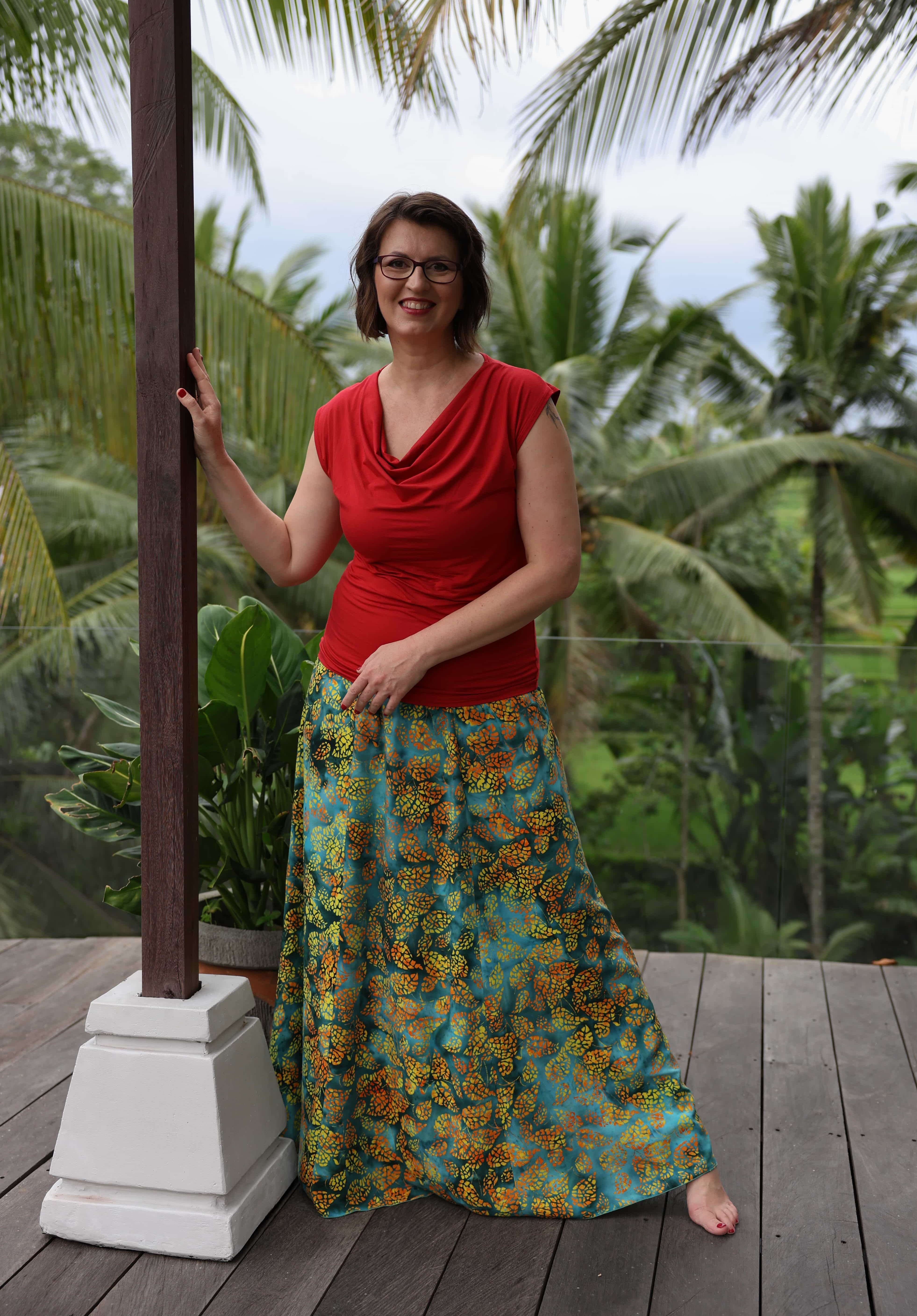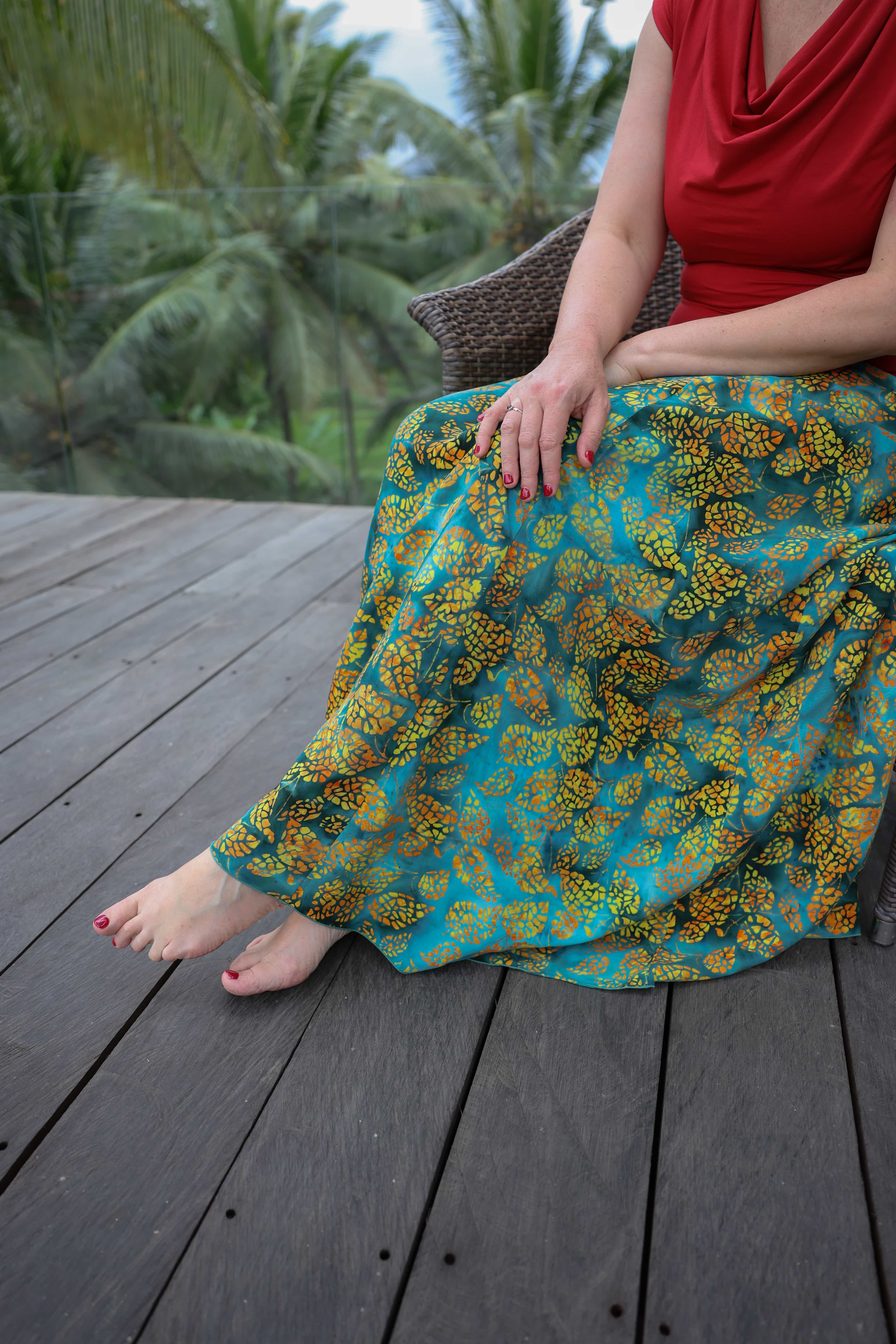 Vysoký elastický pas je nesmírně pohodlný na nošení. Sukně je vhodná i pro těhotné, pružný náplet v pase se krásně přizpůsobí bříšku a obejme ho po celém jeho obvodu. Ikonická Pacha sukně s délkou až na zem se krásně vlní při chůzi, vytvářejíc ženskou siluetu, která je pohodlná a stylová zároveň.