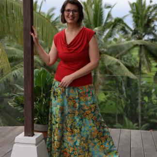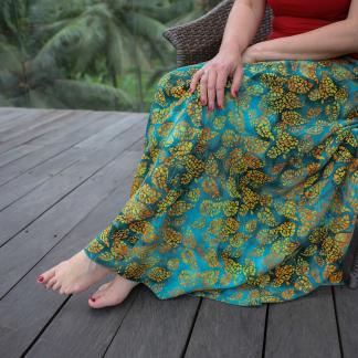 Připravte se na to, že touto úchvatnou, dlouhou sukní přitáhnete pozornost! Sukně je ušitá z lehké viskózové látky a pyšní se nádherným batikovým vzorem.